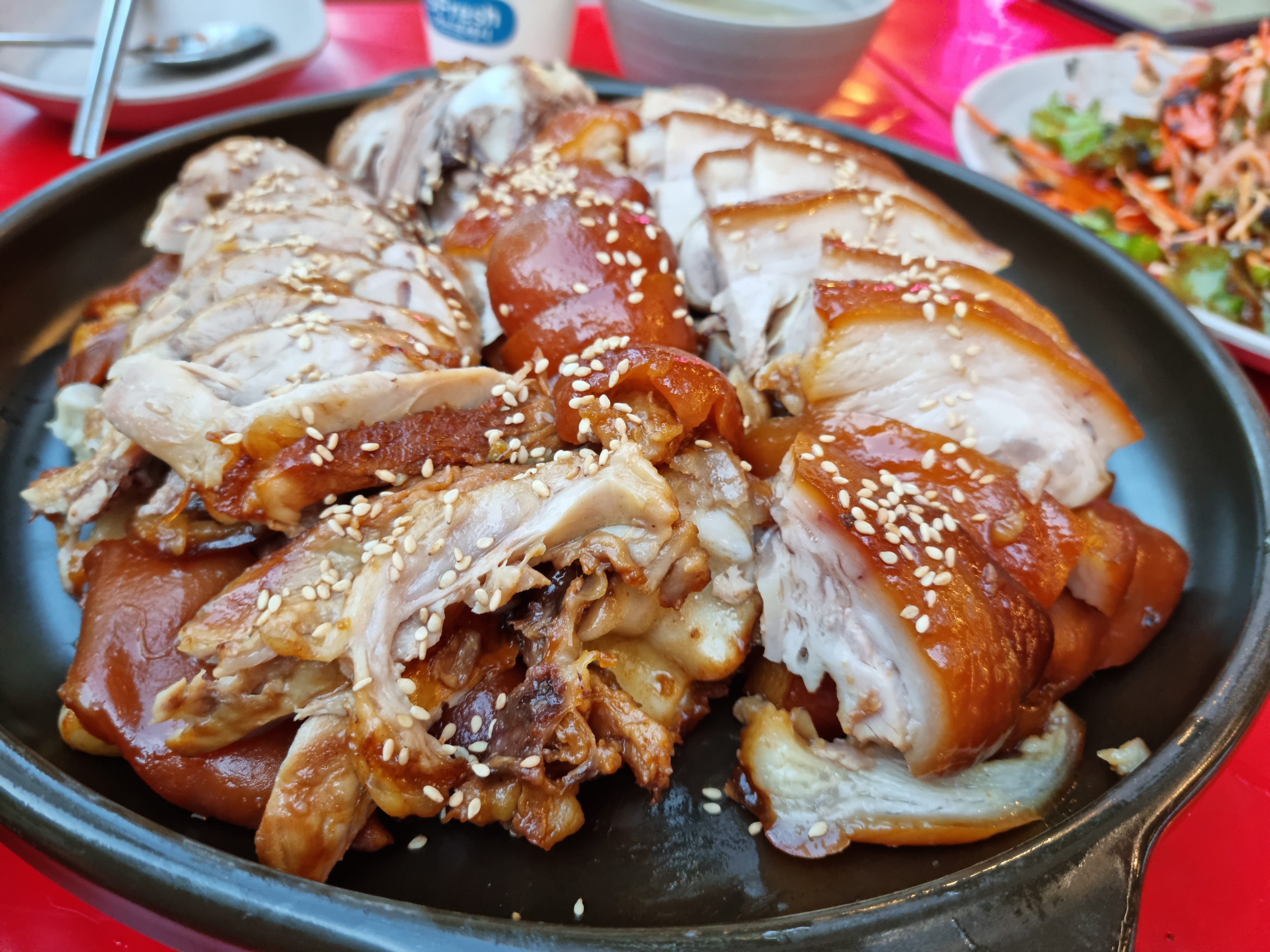 요즘 날도 선선하고, 밖에서 사람들이 잘 먹는 분위기라 우리 셋 모두 잘 먹을 수 있는 족발을 골라서 밖에서 먹음.