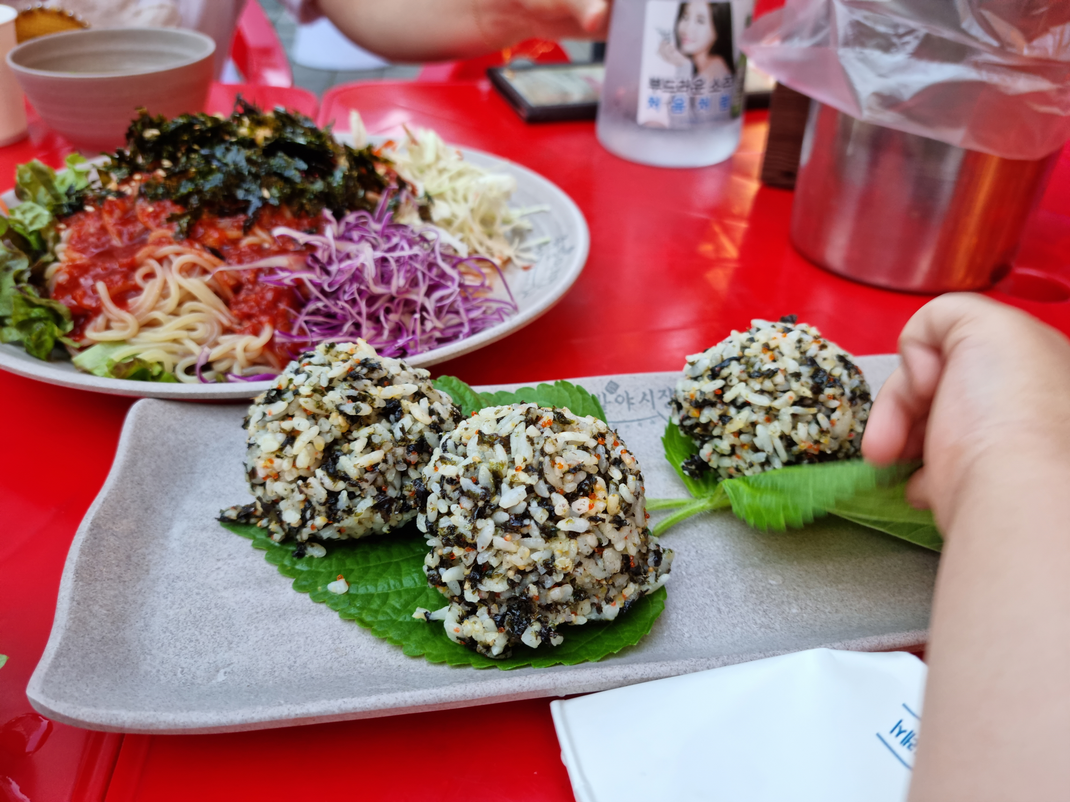 밥이 나오자 마자 카메라보다 빠른 딸의 손..
