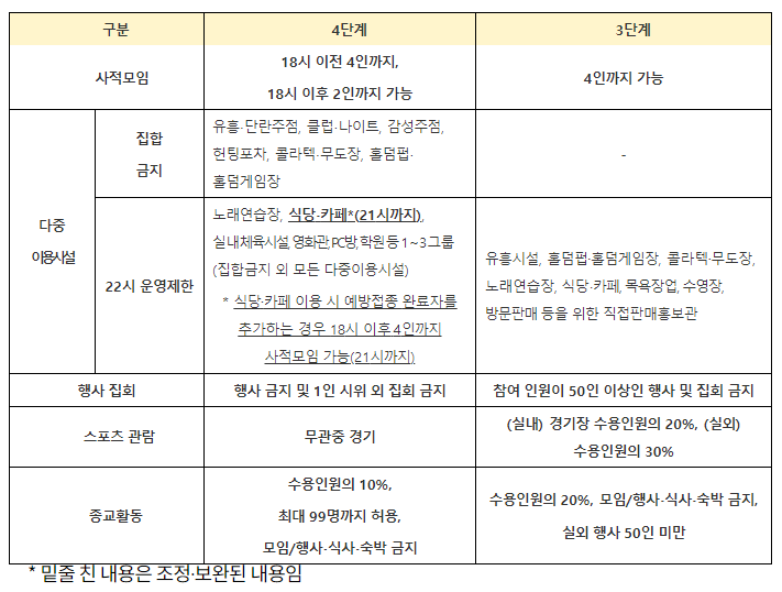 * 미접종자는 종전처럼 2인까지만 제한하되, 예방접종 완료자가 추가되는 경우 4인까지 사적모임 허용