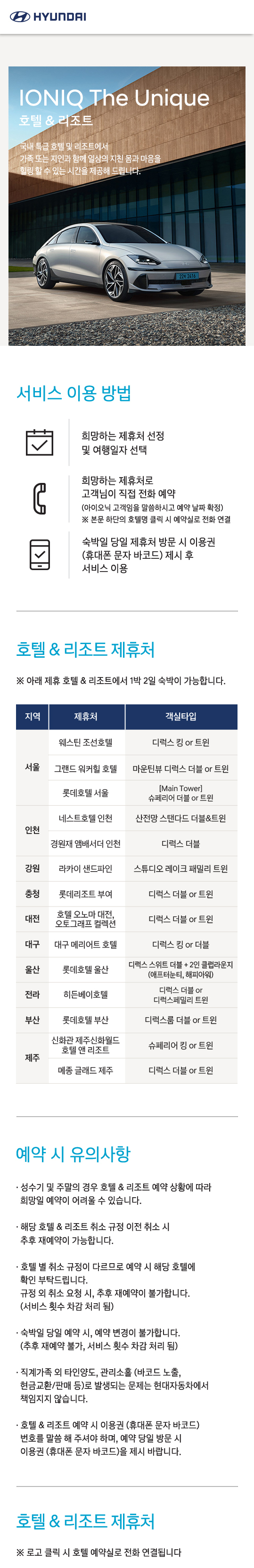 IONIQ The Unique에서 호텔 & 리조트 이용을 선택을 하여,