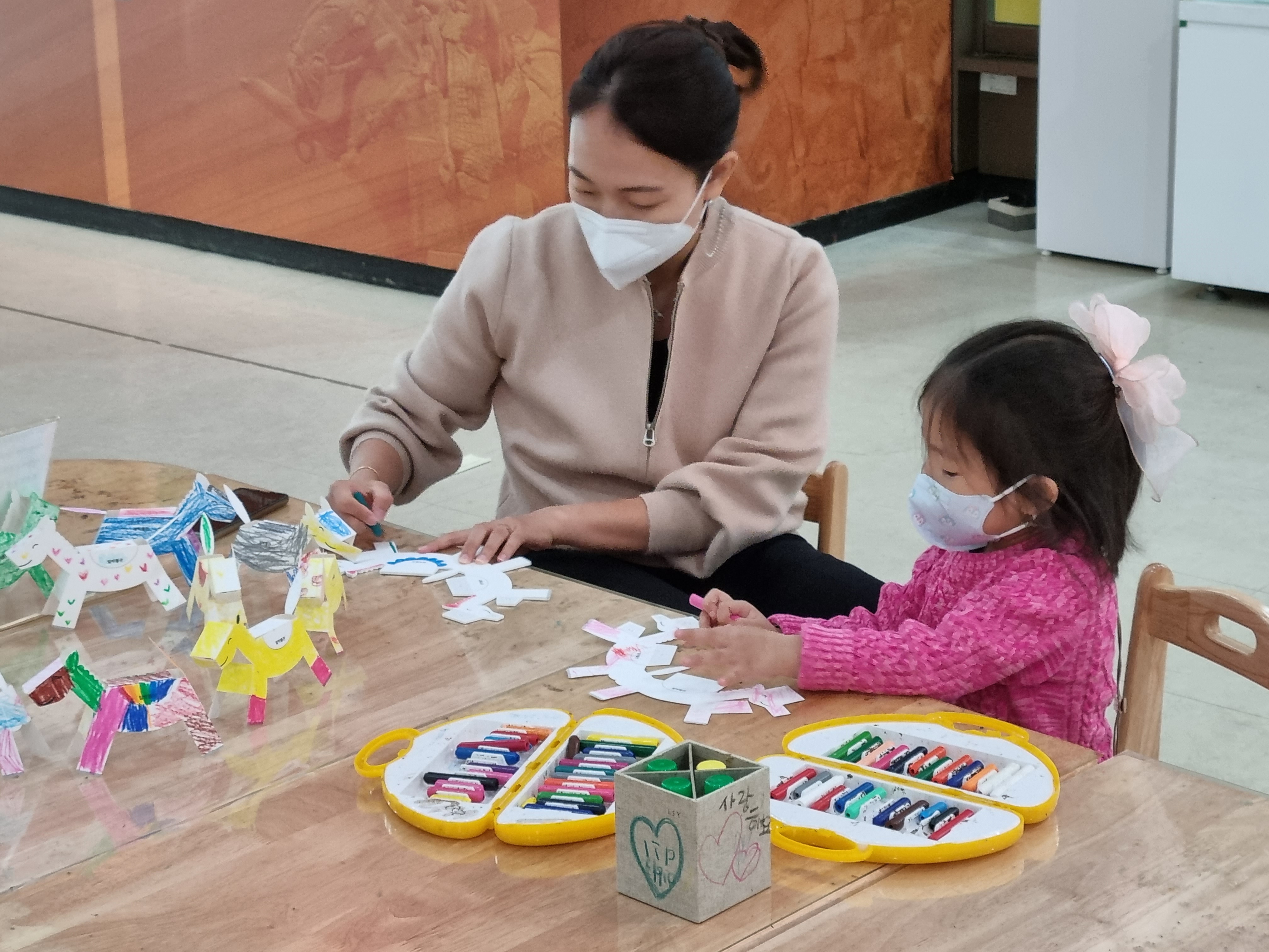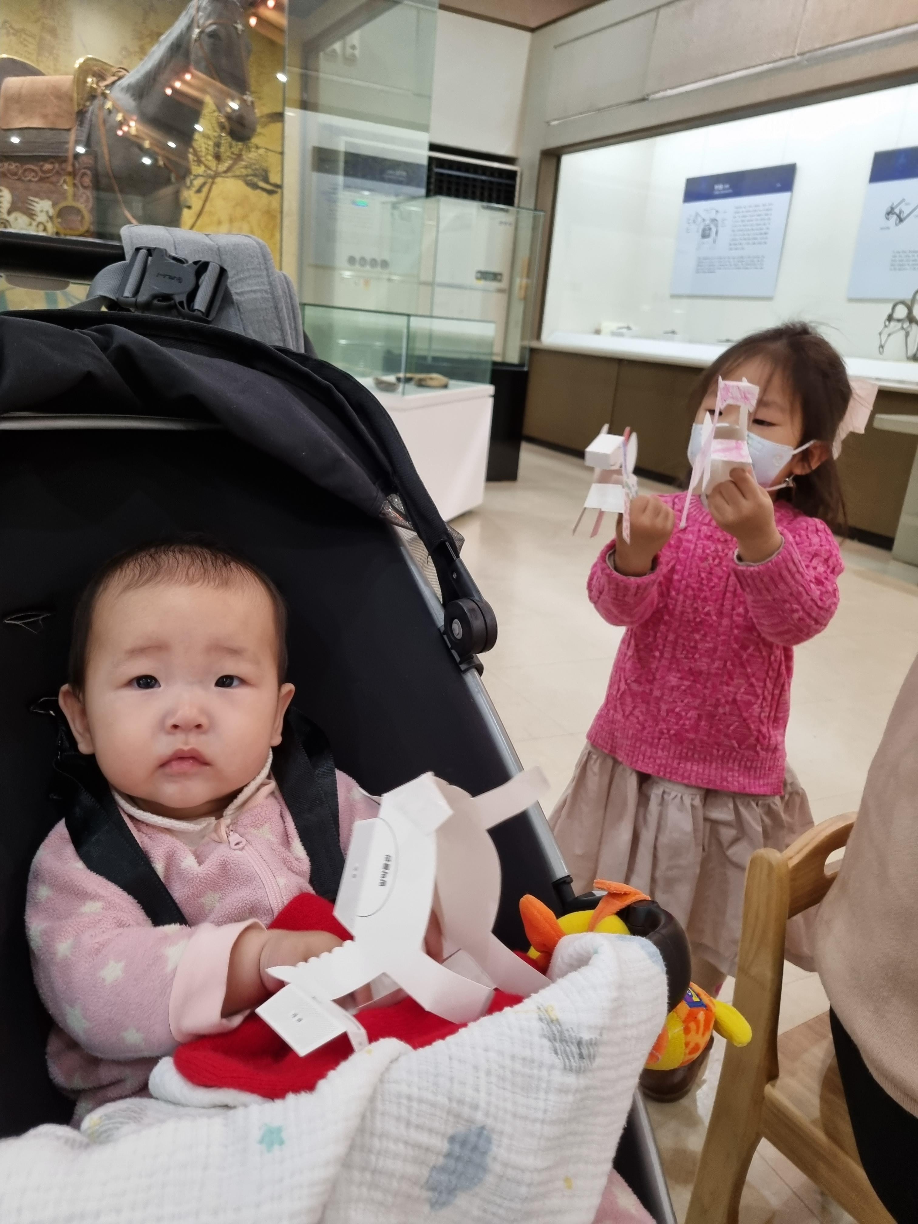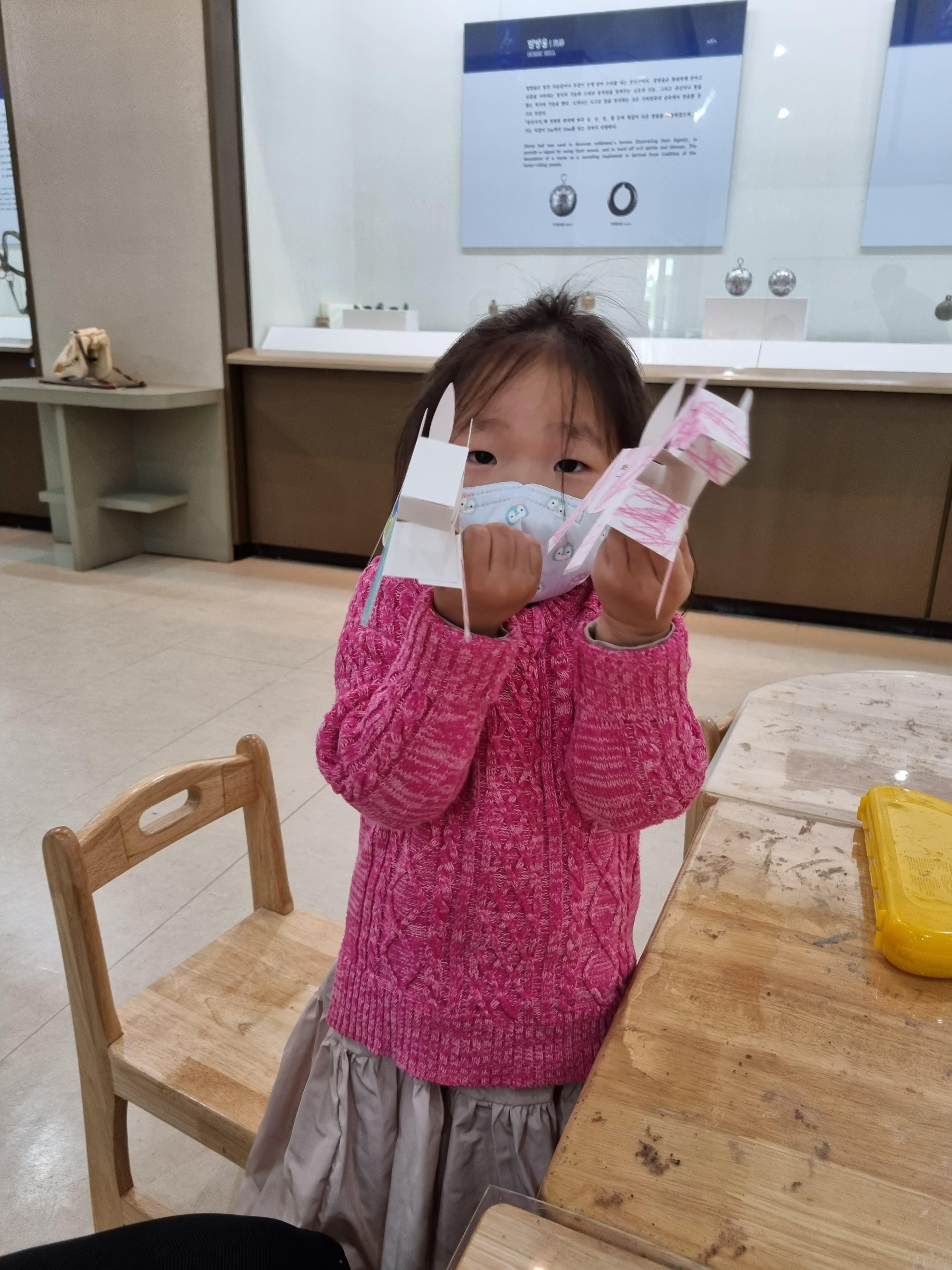한참을 구경을 하다 말박물관에도 들어가서 구경을 하려했는데, 들어가서 그림 좀 보다, 옆 전시실에 있는 말 색칠 체험관에 푹 빠져 한참을 놀고 있는 도연이