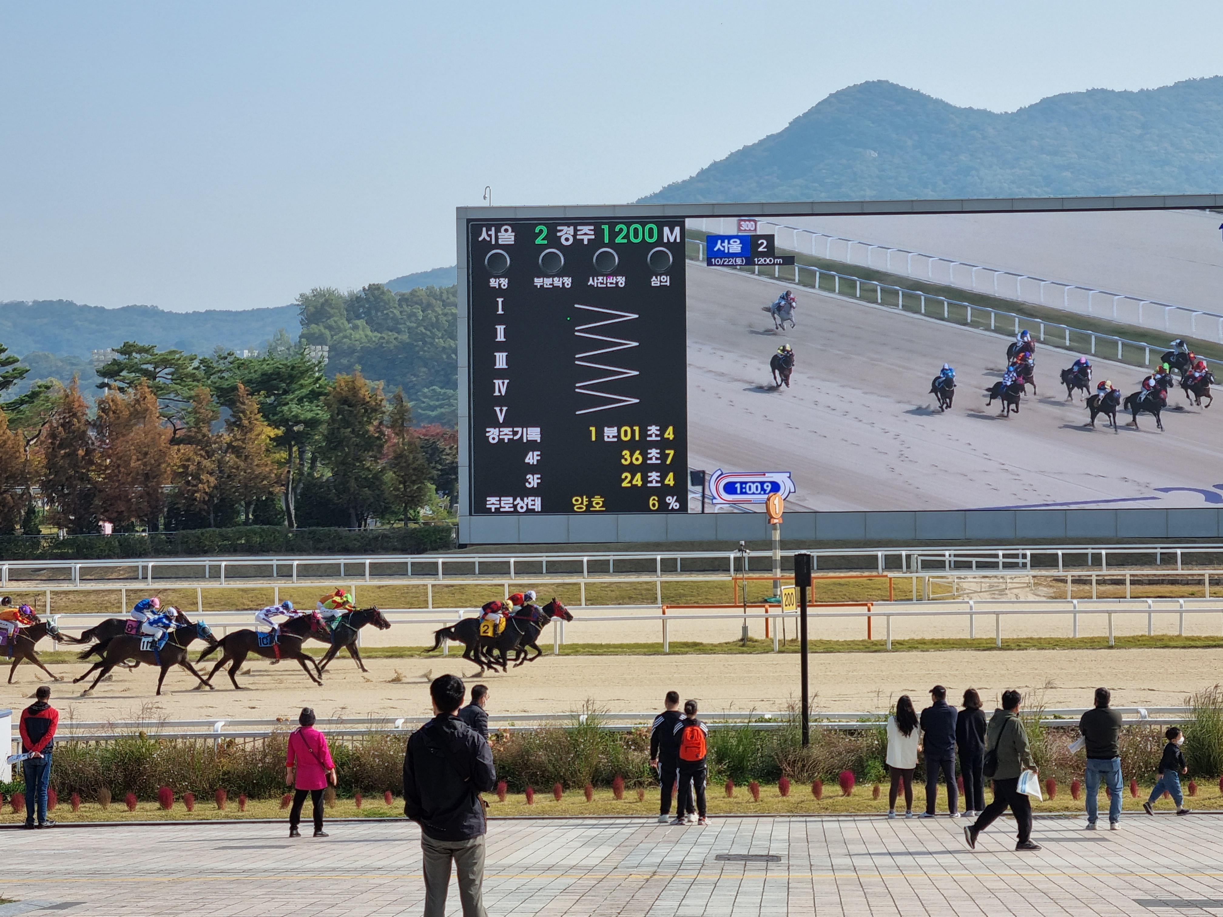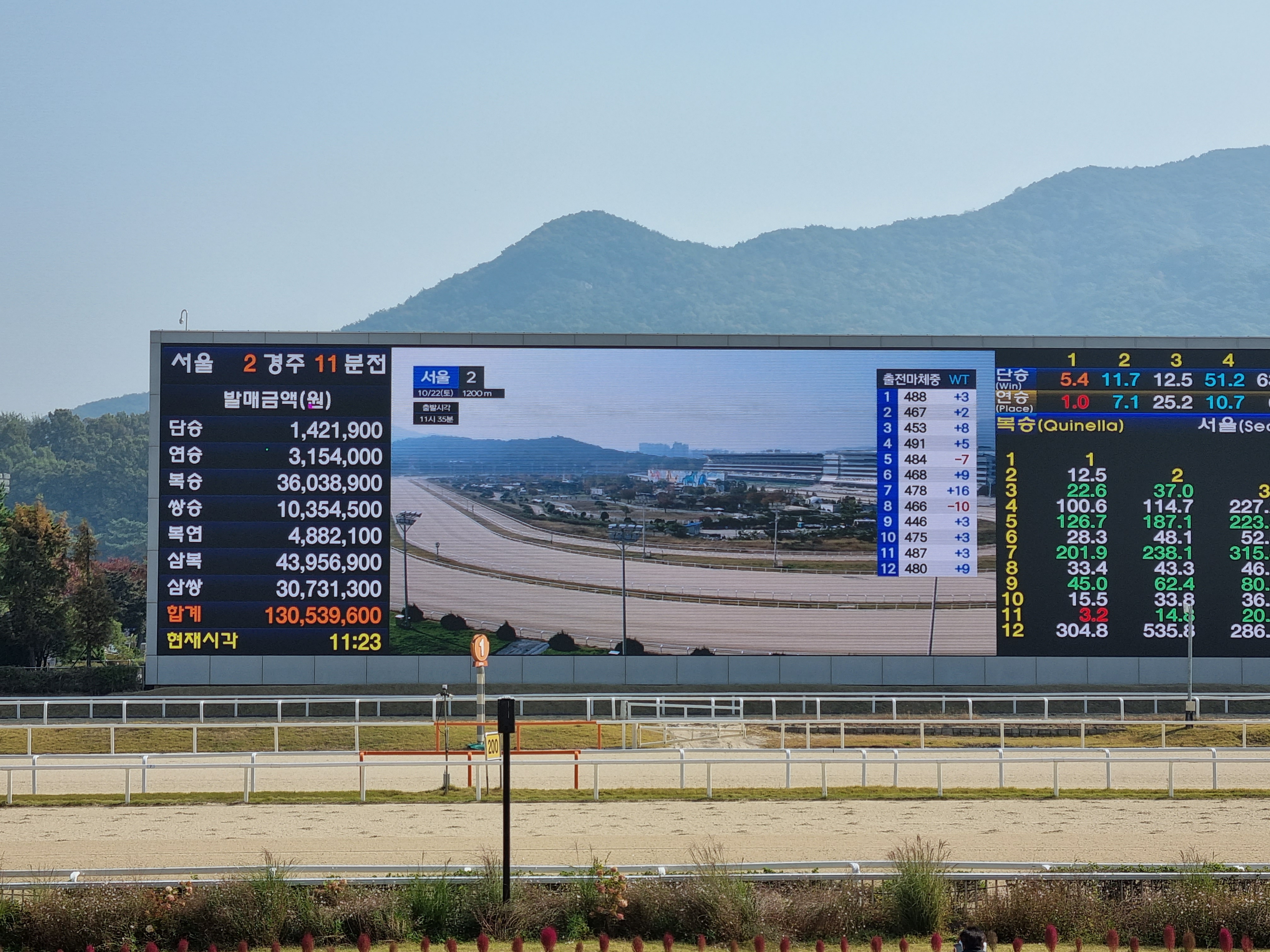 근데 경마라는게 약간 느낌이 돈넣고 돈먹는 느낌이라, 전문가 포스 뿜뿜 풍기는 분들이 많고 근처 흡연실도 있지만, 담배 냄새도 조금 났다.