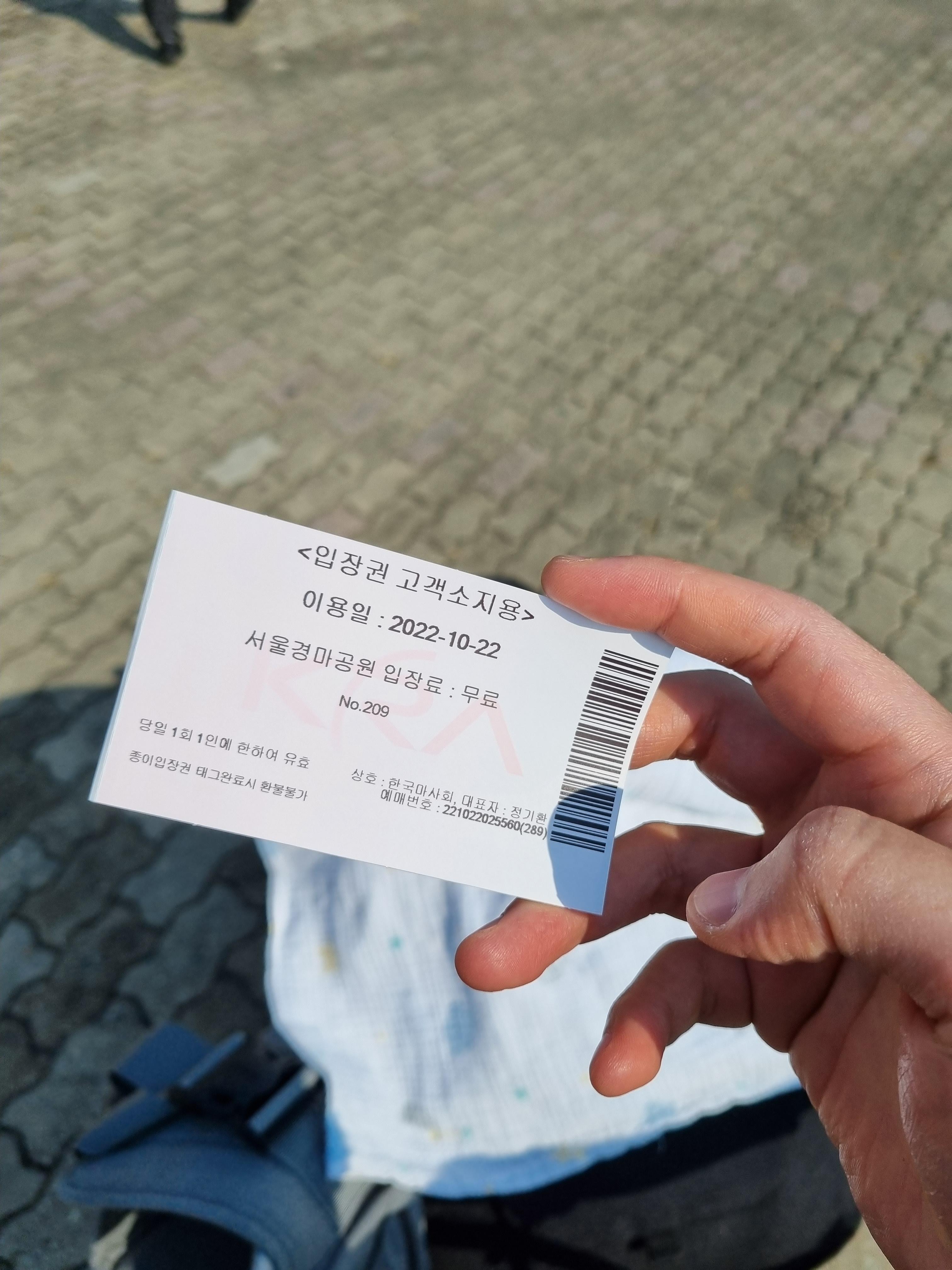 렛츠런 파크 쪽으로 걸어가서, 입장하는 곳 근처 티켓파는 곳에서 문자를 보여주며 실물티켓으로 교환을 해야됩