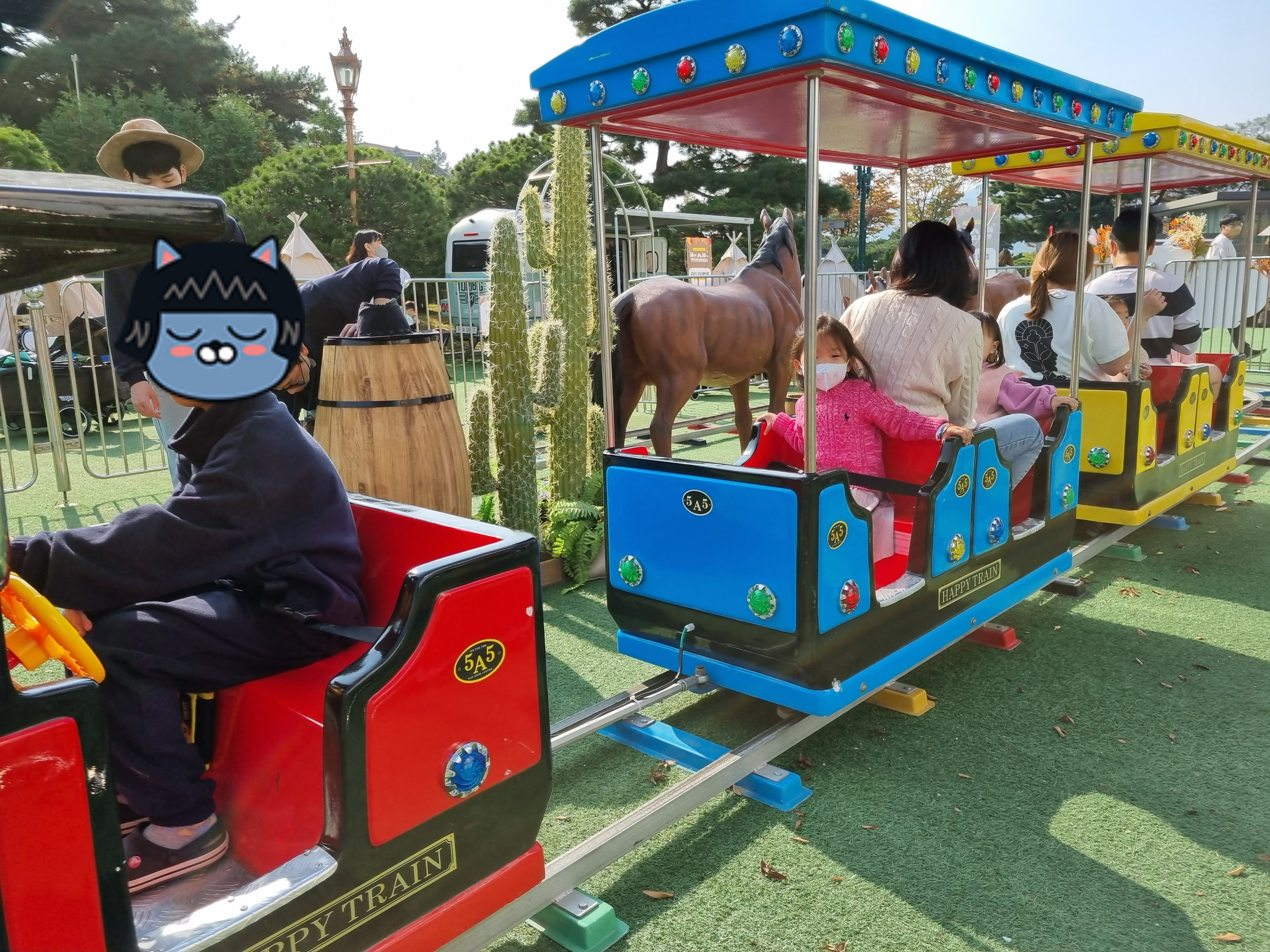 기차 타는 곳 옆에 글램핑처럼 꾸며 놓은 곳이 몇개 있는데, 자리가 나면 앉아서 놀수 있어 좋았다.
