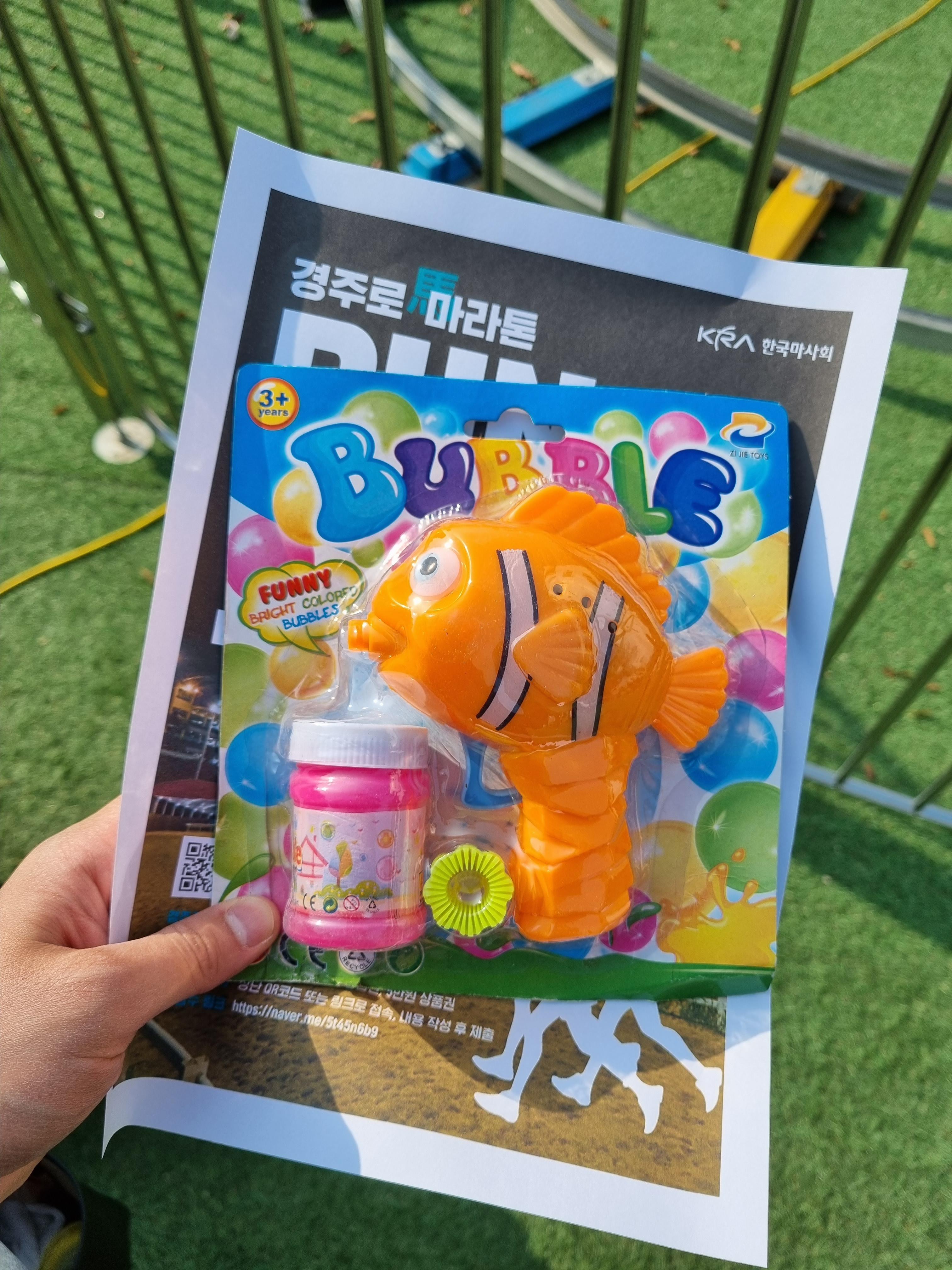 하지만 룰렛게임하고 받은 비누방울 놀이 키트 보여줌