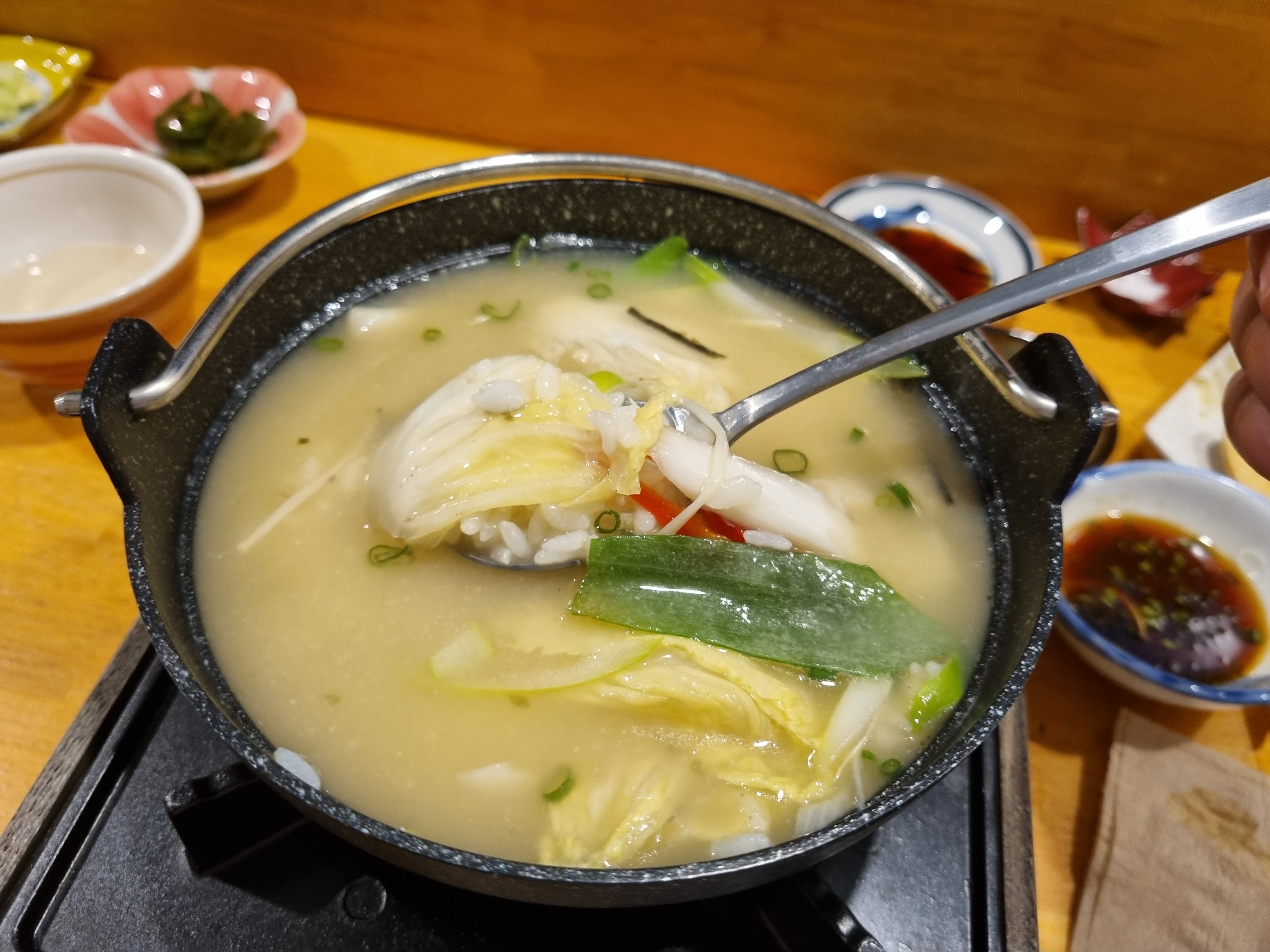 마지막 죽을 먹을 때는..배가 엄청 불렀지만 맛있어서 야채까지 다 먹은..(평소 야채 잘 안먹...)