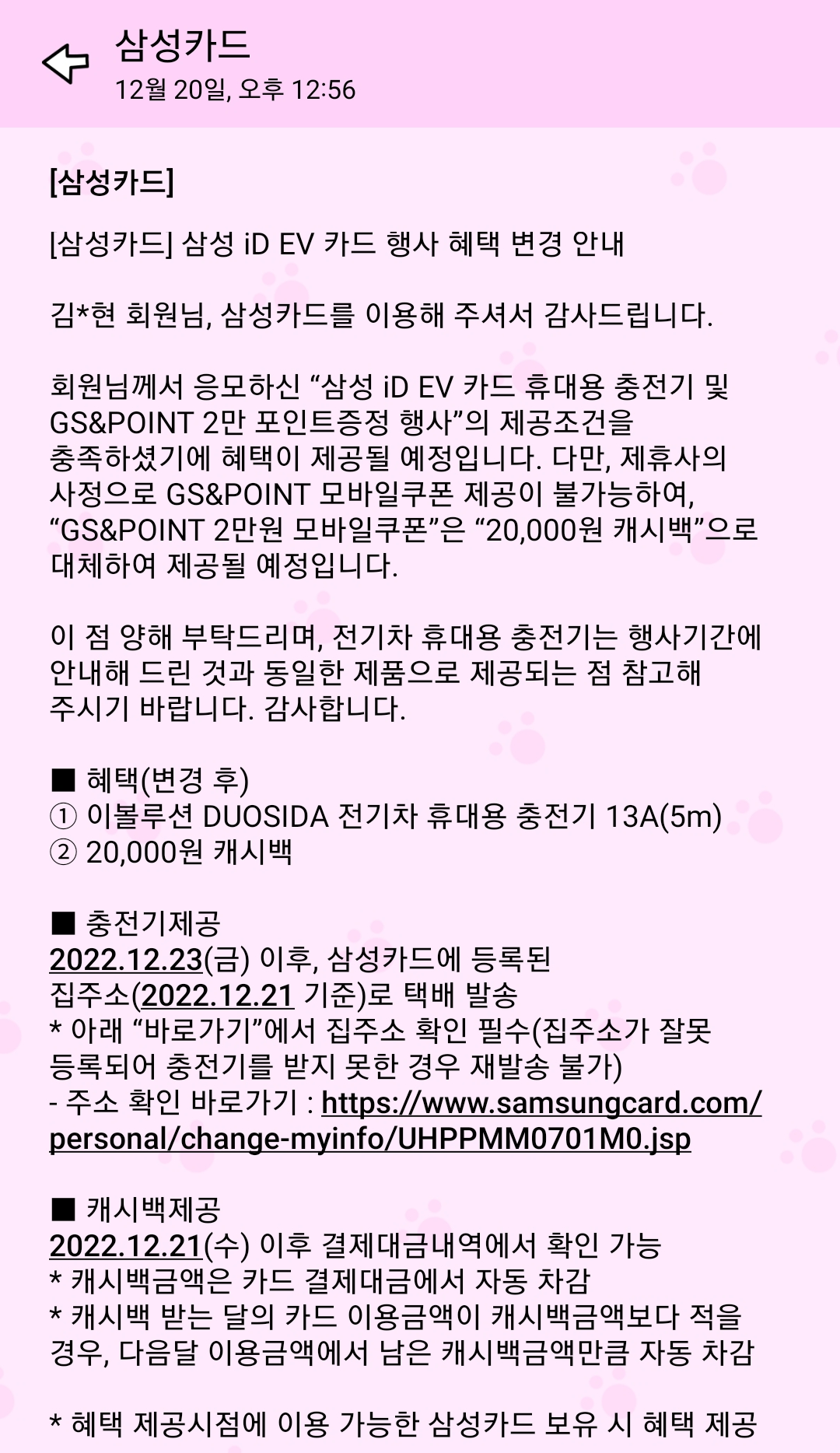 그리고 GS 2만포인트 대신 삼성카드 결제액 2만원 할인도...!