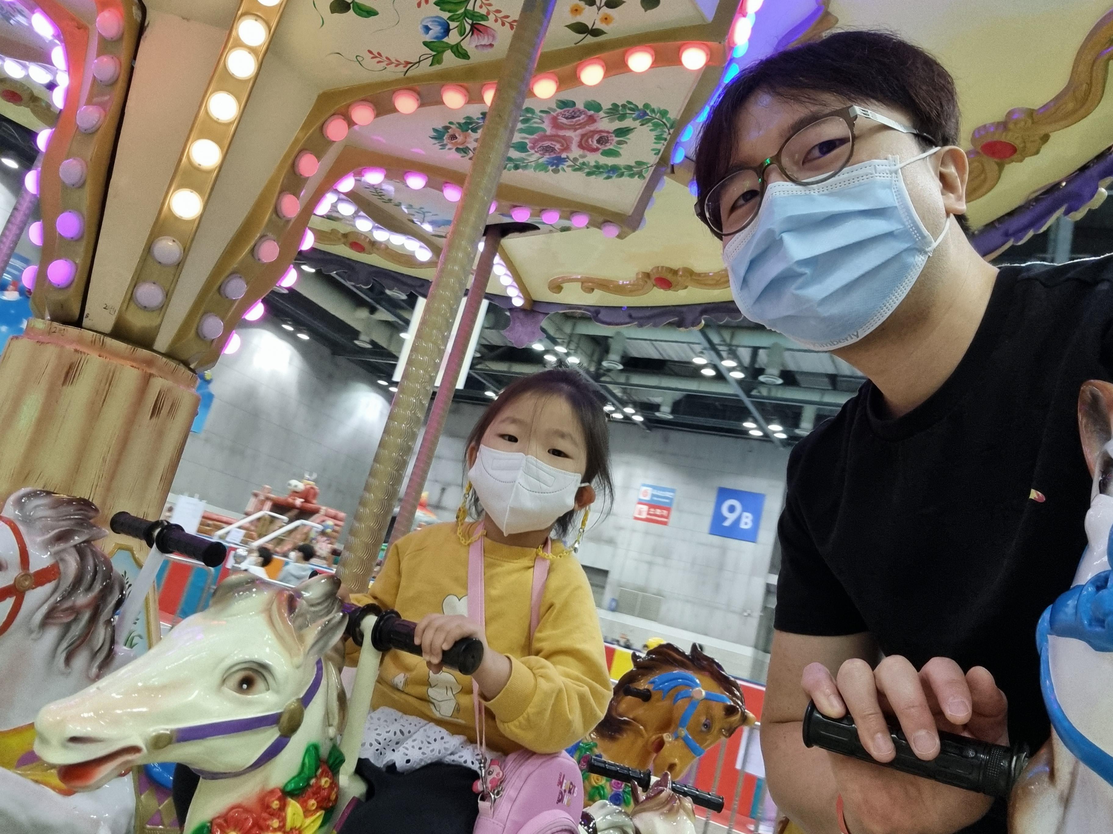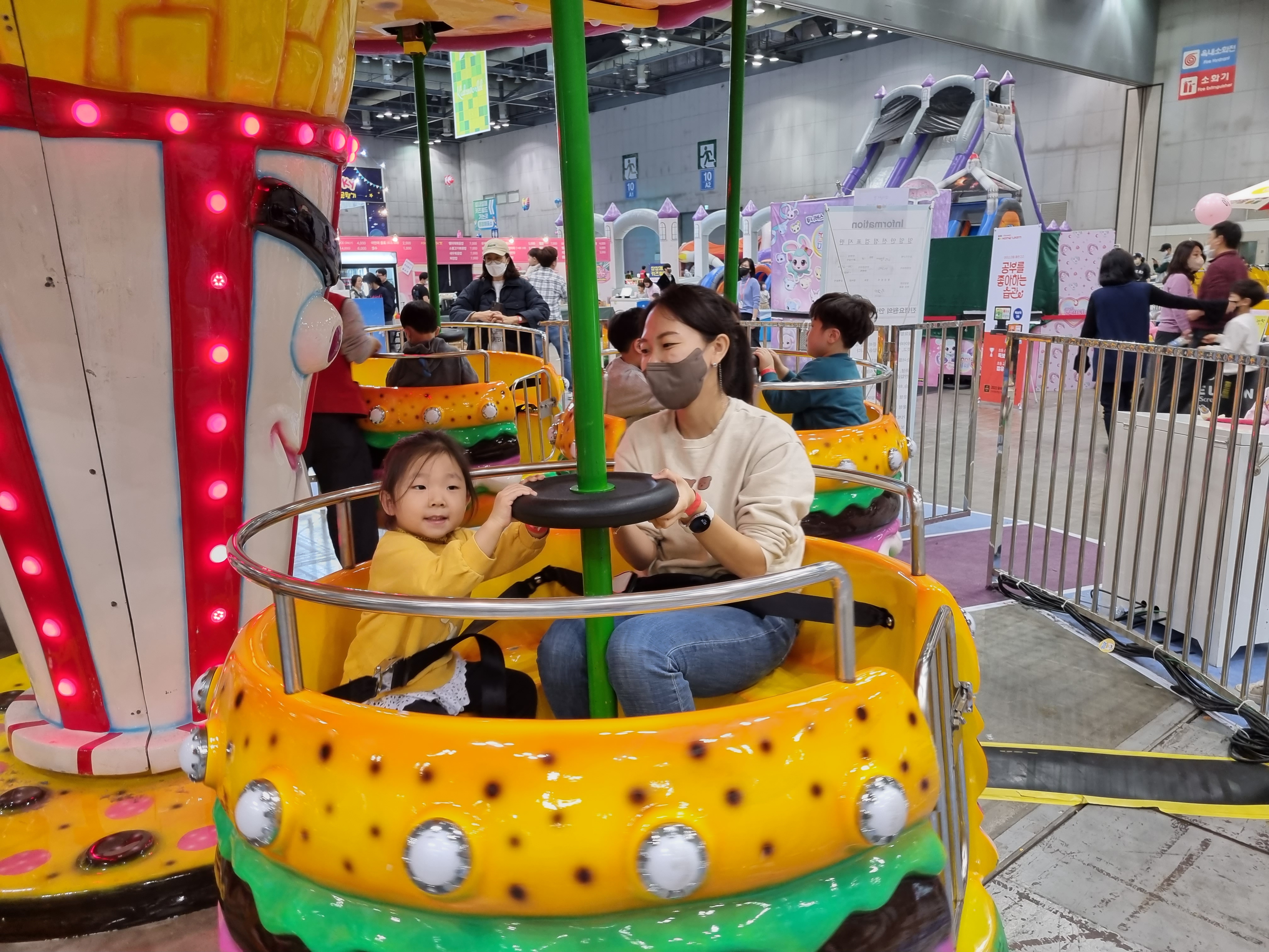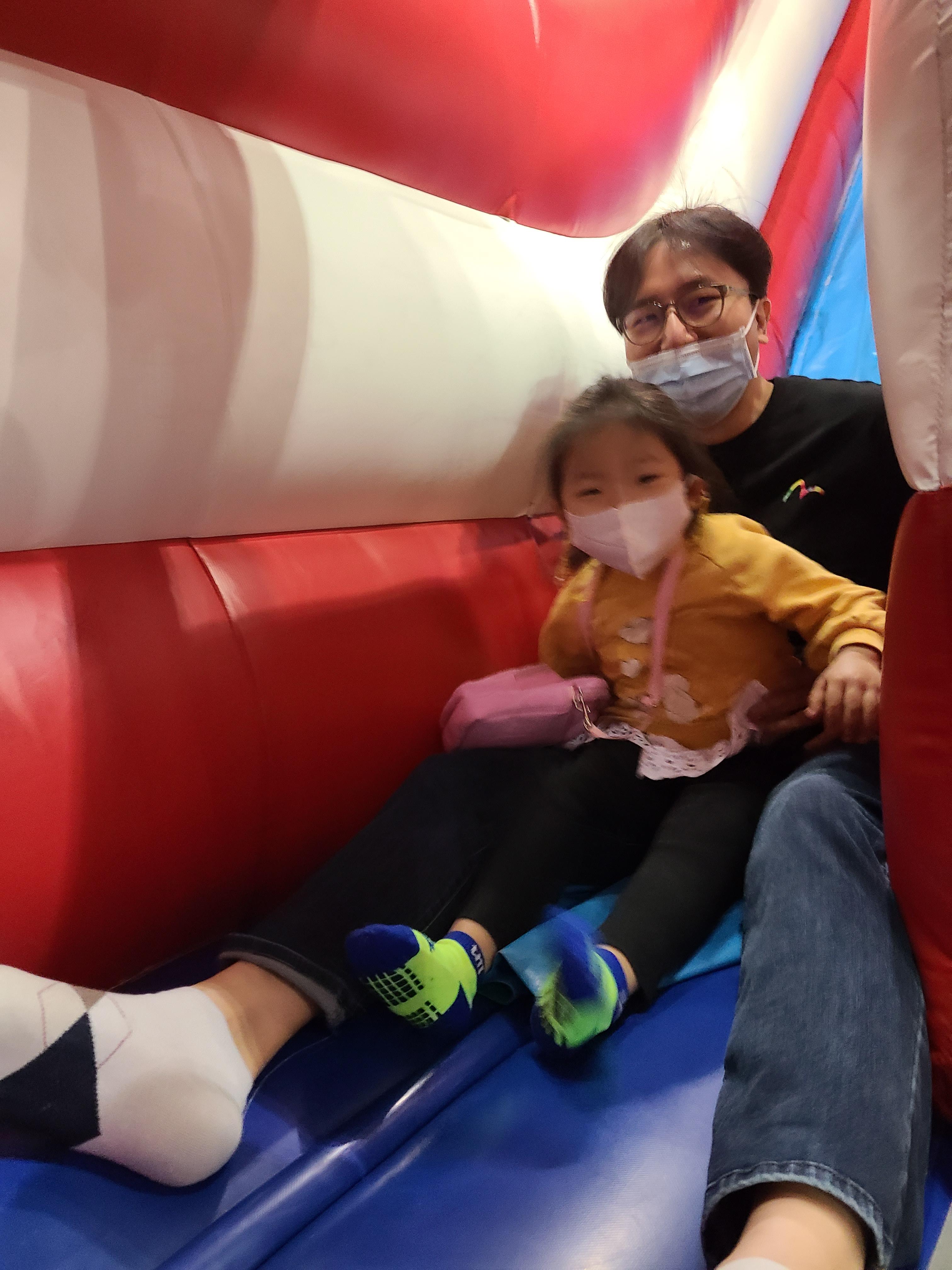 높은 것은 도연이가 무서워해서 같이 올라가서 탔고, 키 제한이 120cm인 것들도 몇개 있었다.