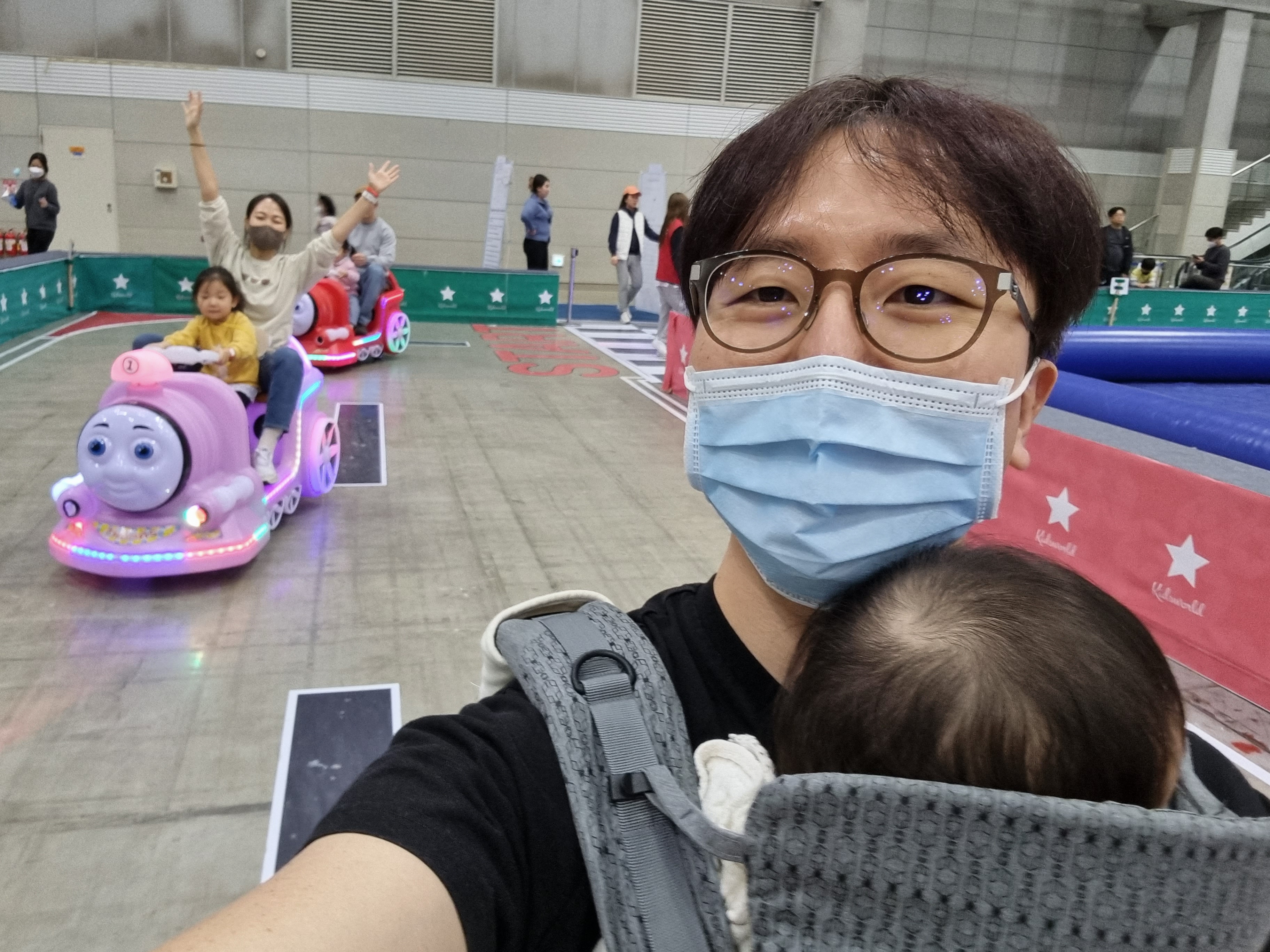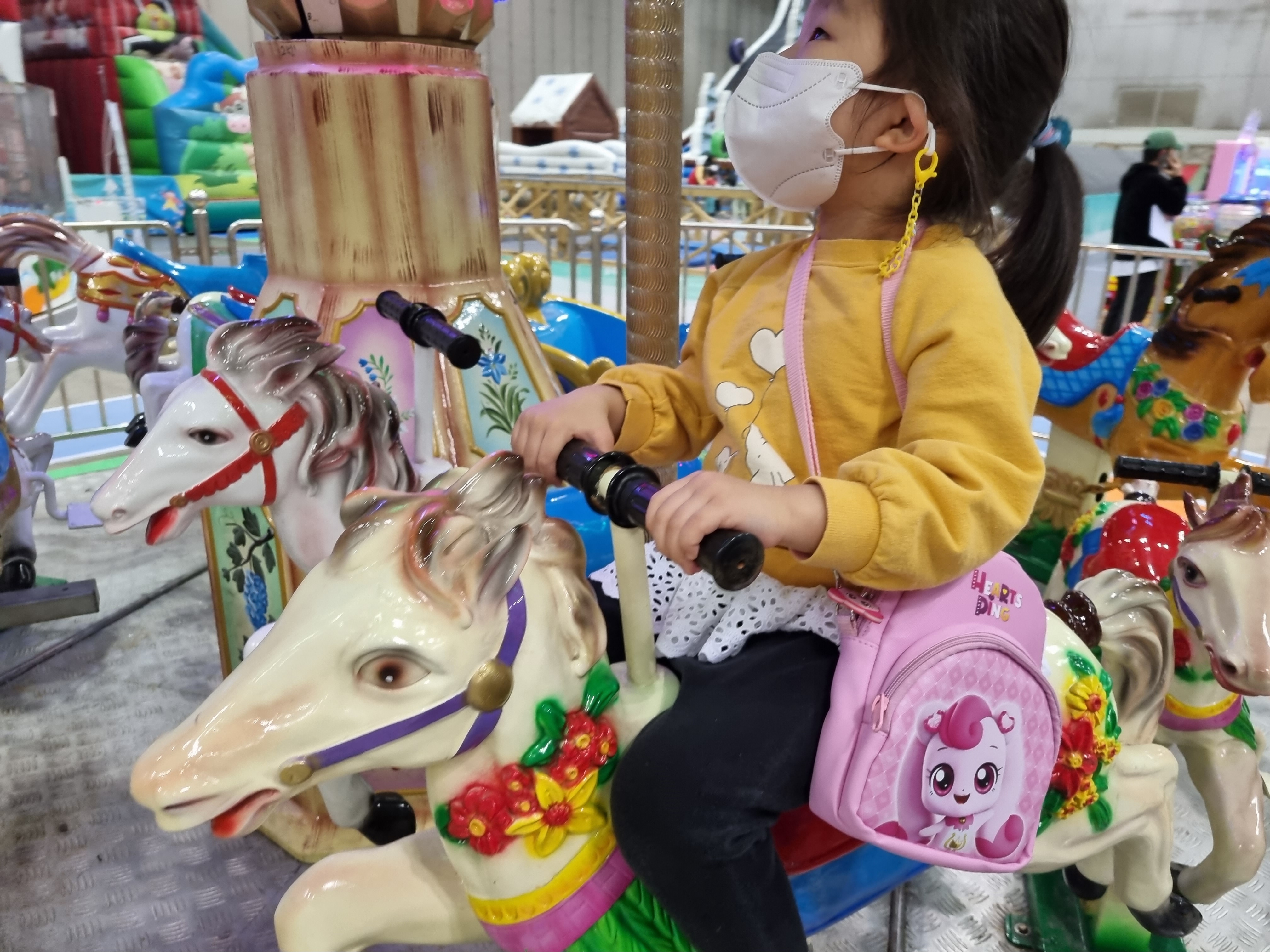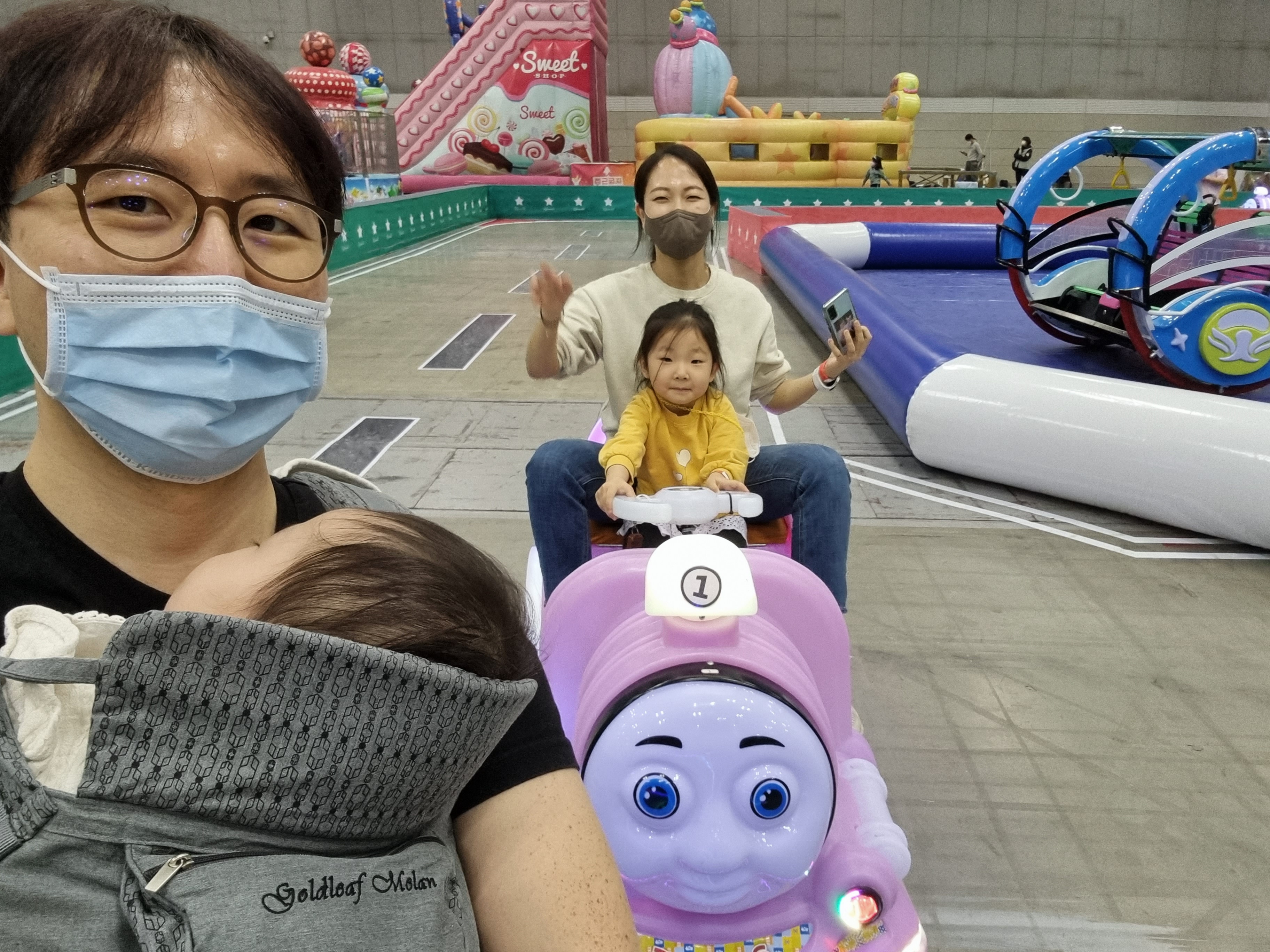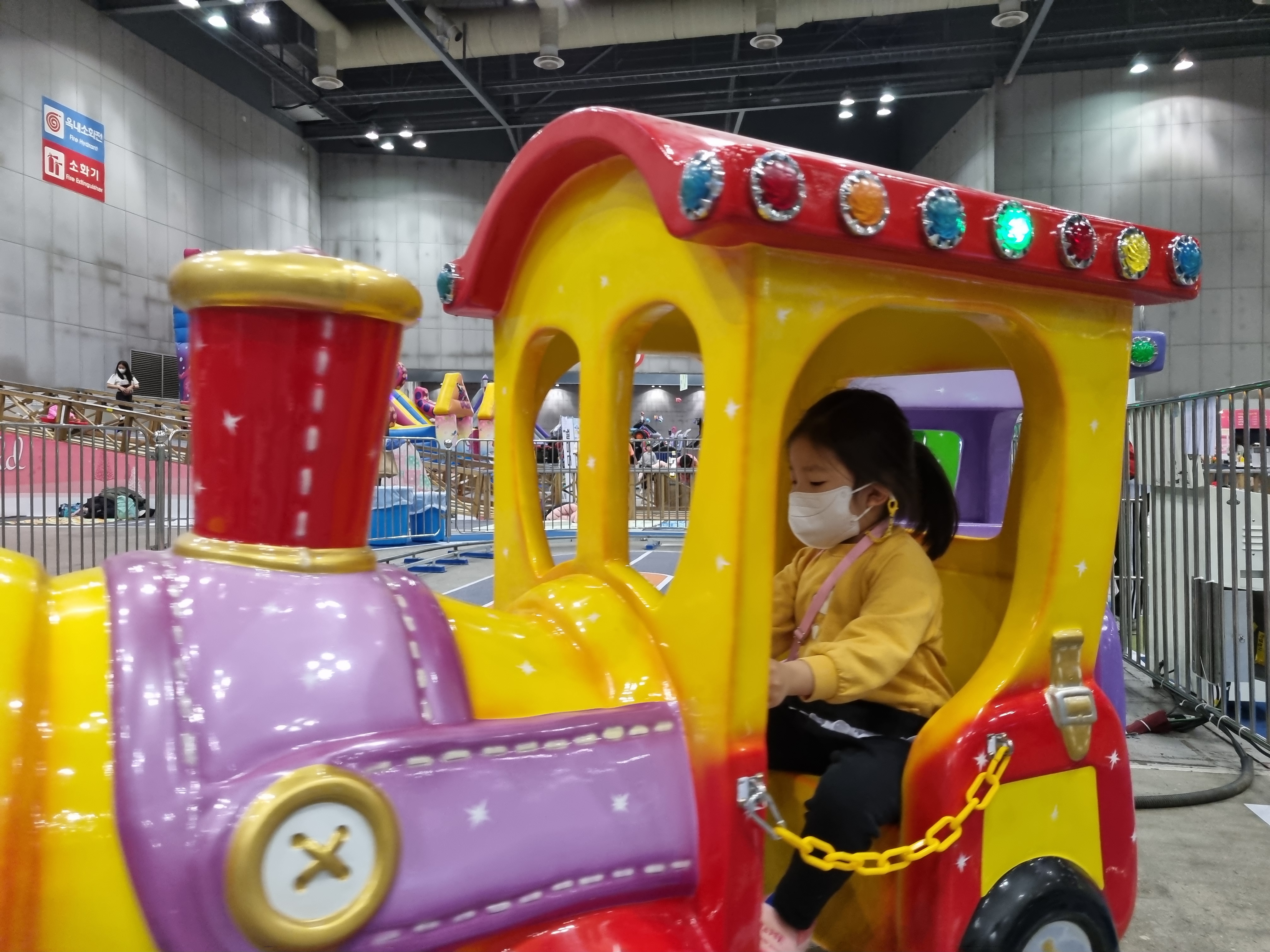 높은 것은 도연이가 무서워해서 같이 올라가서 탔고, 키 제한이 120cm인 것들도 몇개 있었다.