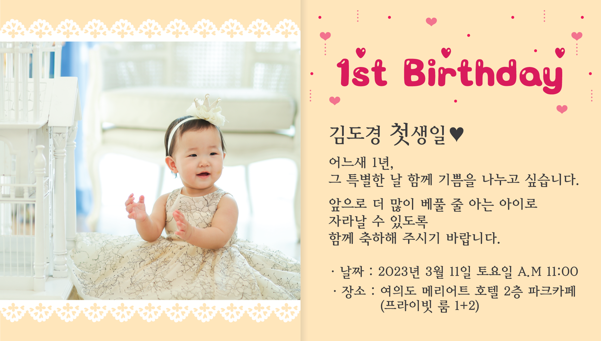 능력자분이 만들어주신 둘째 딸 돌잔치 초대장~