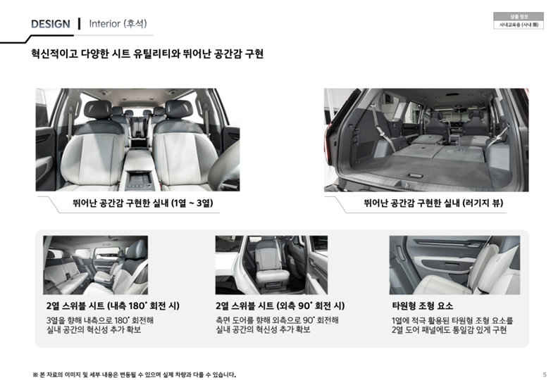 - 차종 4WD/2WD GTL/어스/에어 트림 6인승/7인승 운영
