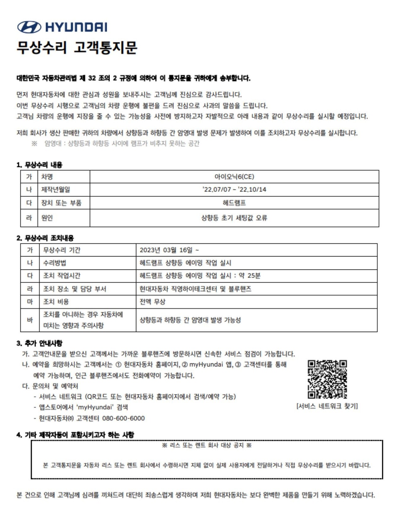 아직 무상 수리 통지문은 도착하지 않았으나, 이렇게 올 예정이라고 함