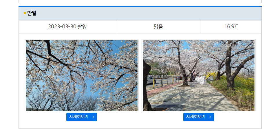 기상청 테마날씨 - 계절관측 - 봄꽃개화현황보면 최근 촬영된 사진을 볼 수 있다.