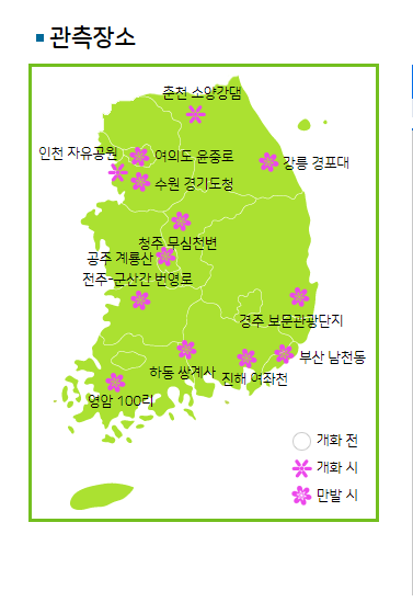 봄꽃개화현황 - 벚꽃 - 기상청 날씨누리