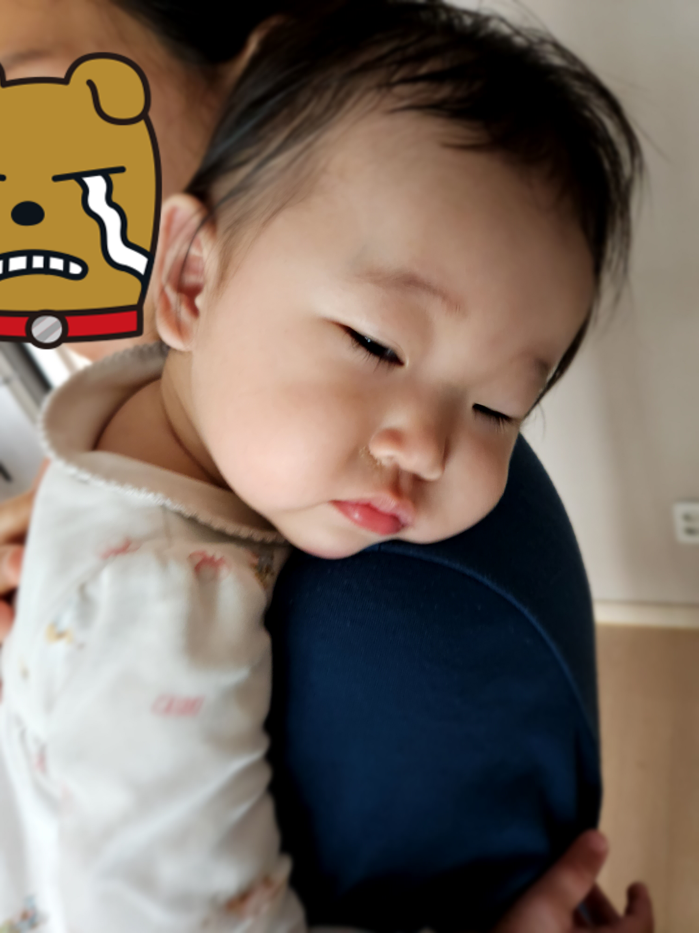 졸리고 힘들어서 엄마품에 쏙..