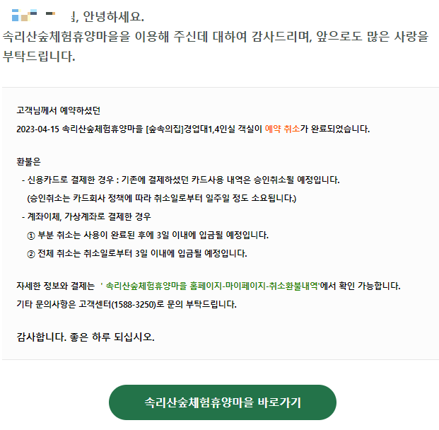 4월 중순에 신청한 속리산 숲체험 휴양마을은 ..