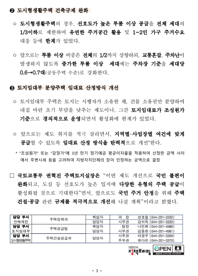 수도권 최대 10년 → 3년, 비수도권 최대 4년 → 1년으로 단축, 도시형 생활주택 투룸형 공급규제