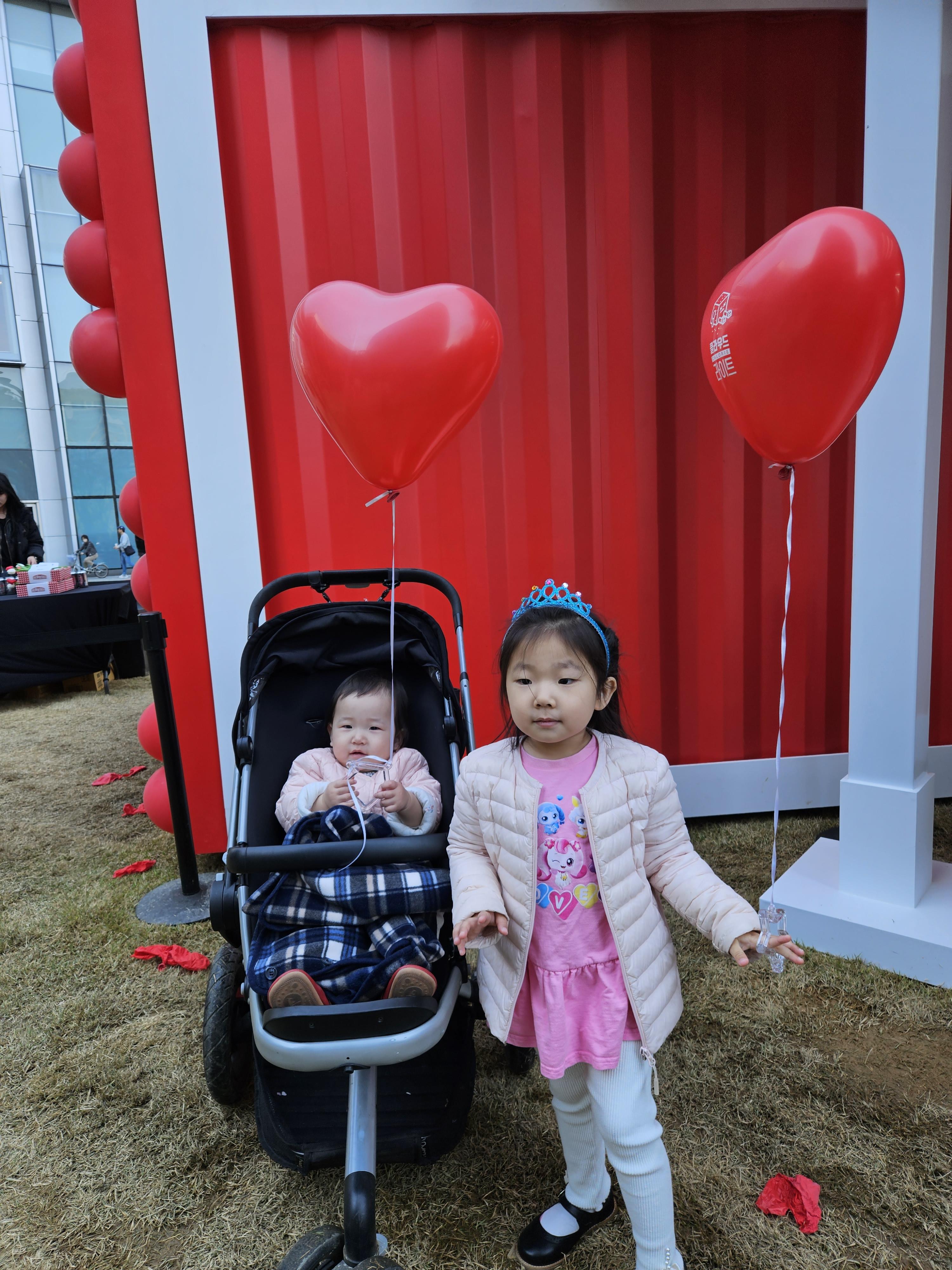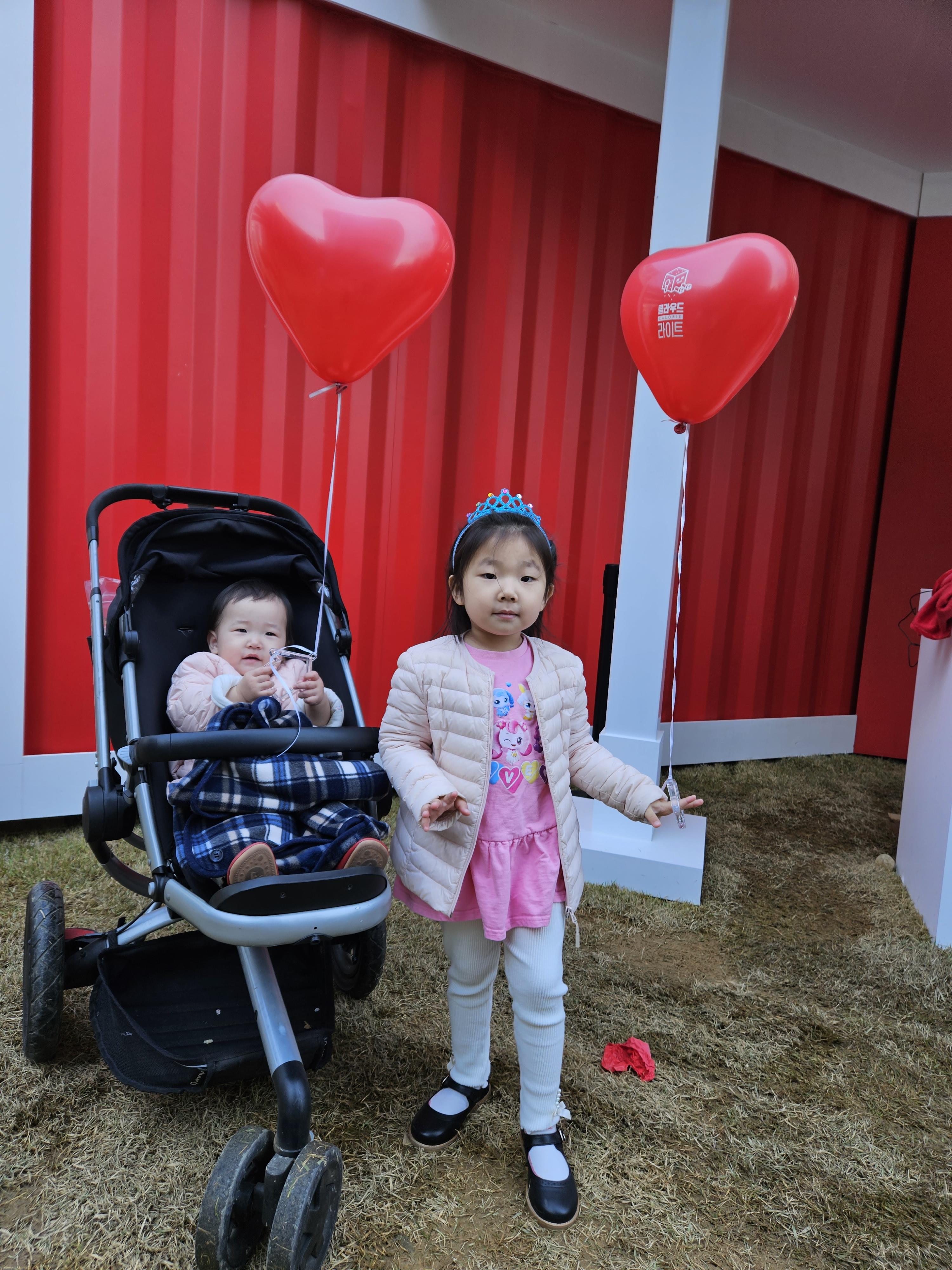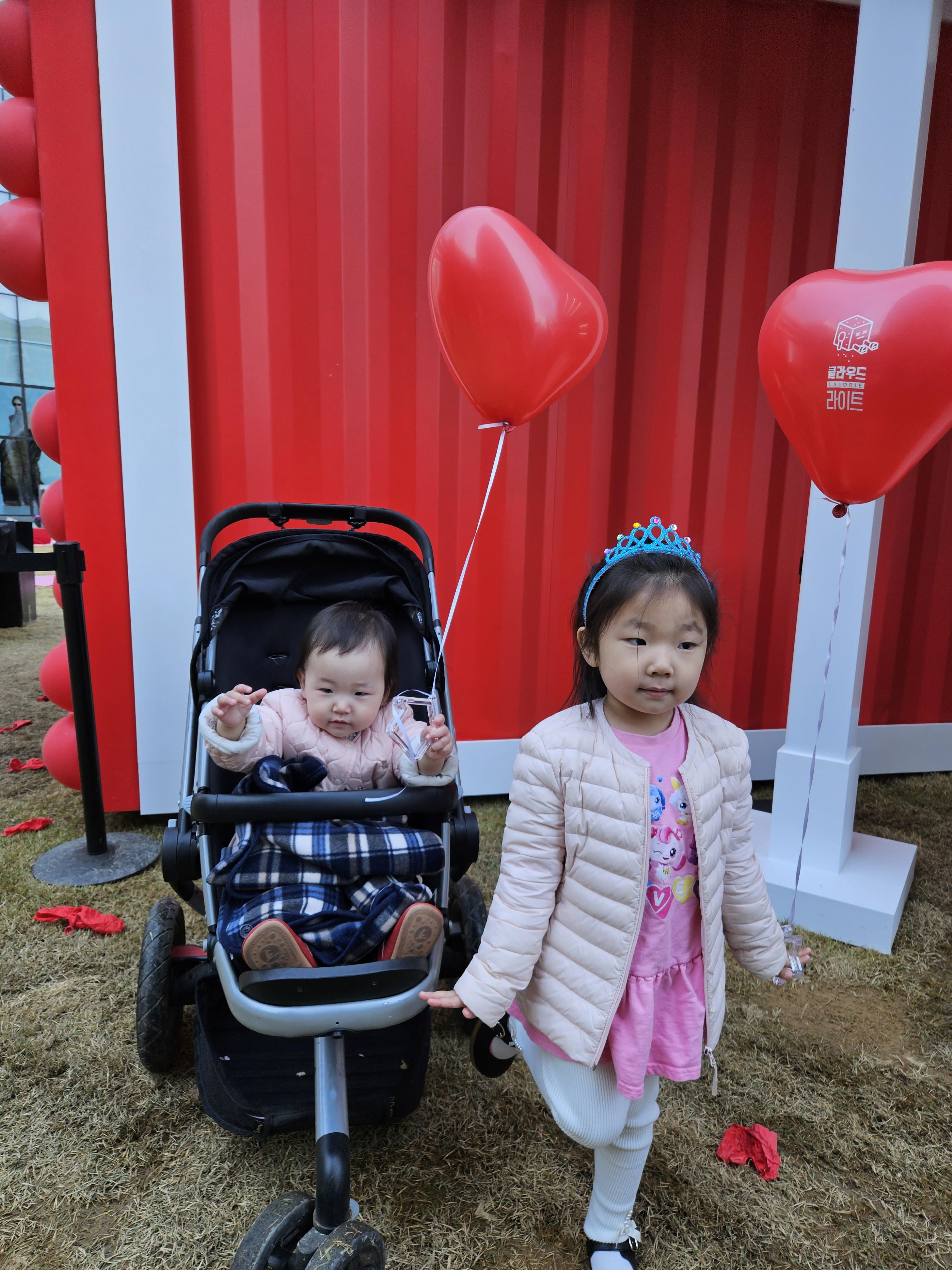 풍선을 받고 좋아하는 딸 둘..