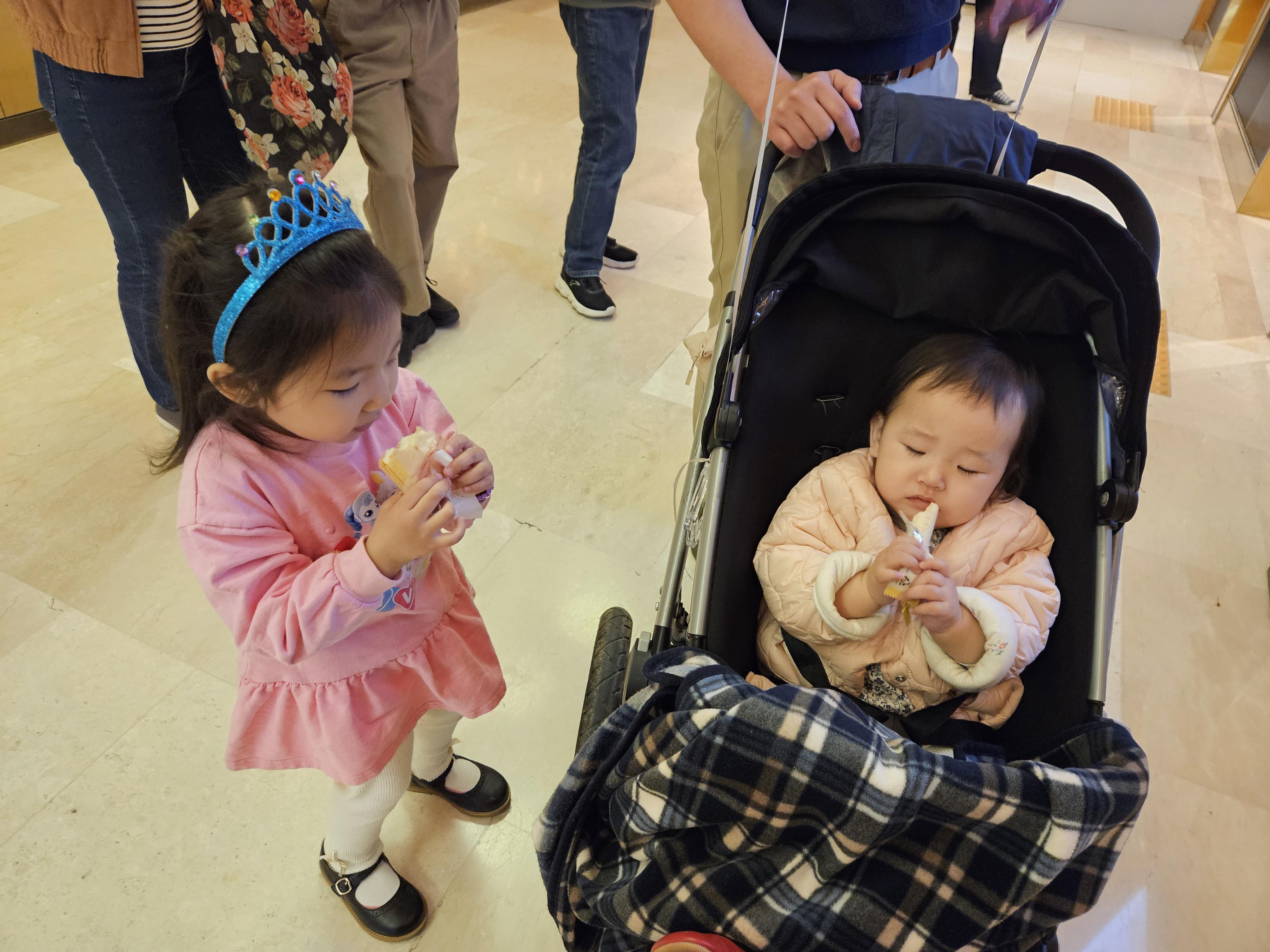 도연이는 감기 나아서 아이스크림을 먹고..도경이는 과자 먹고..