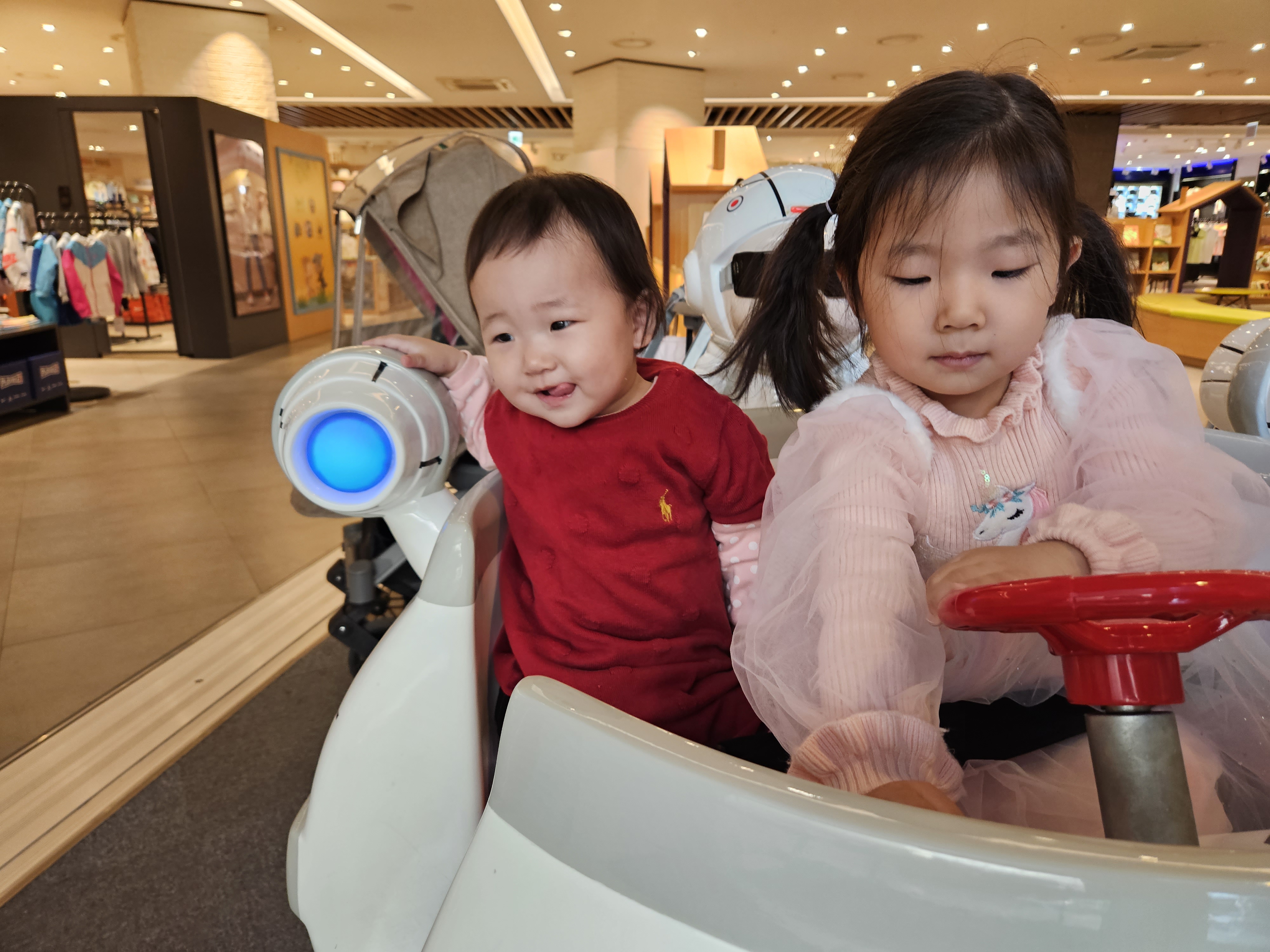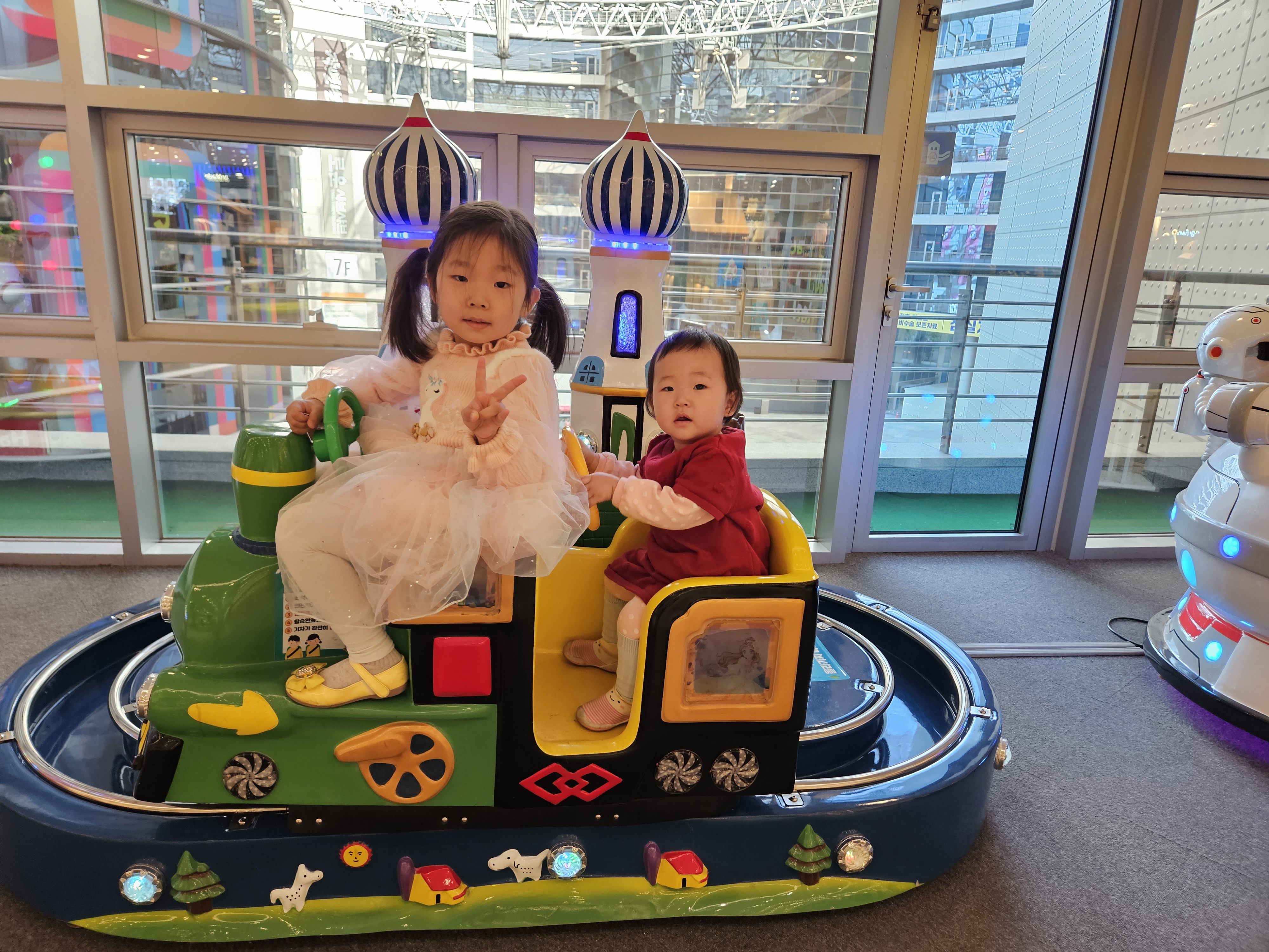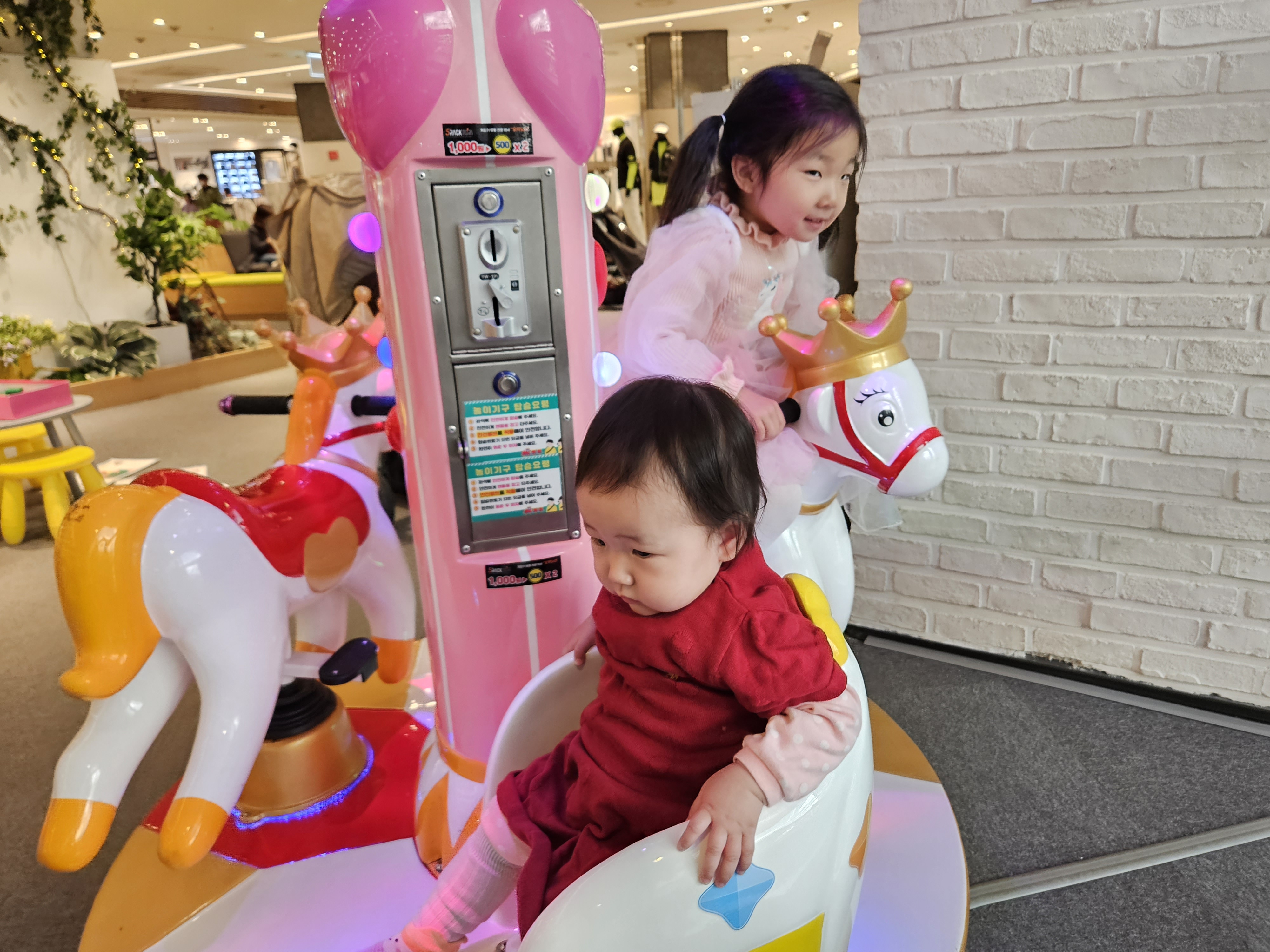확실히 둘째가, 첫째가 하는 것을 보고 따라하기에 놀이기구 타는 것도 빨랐다.