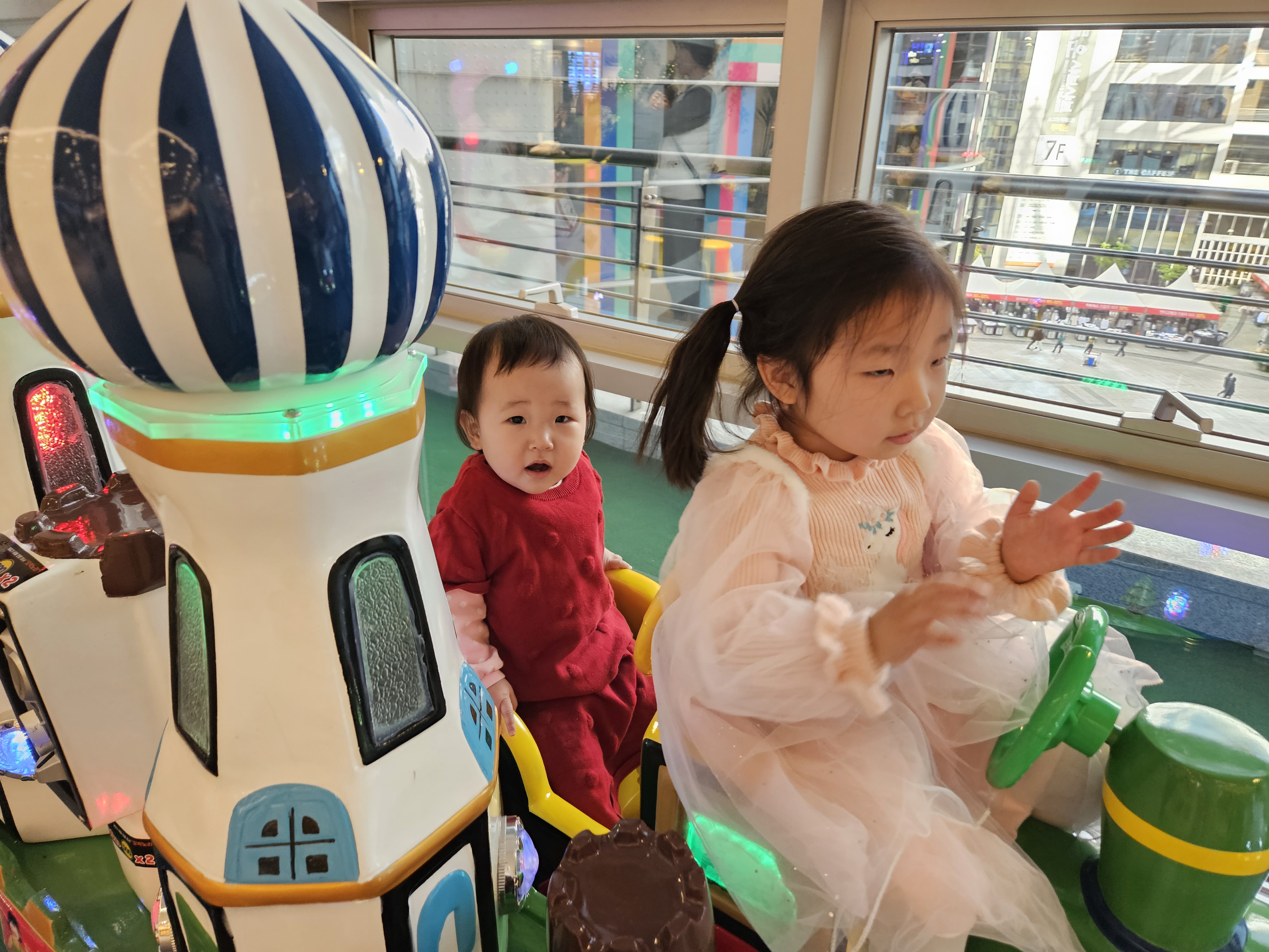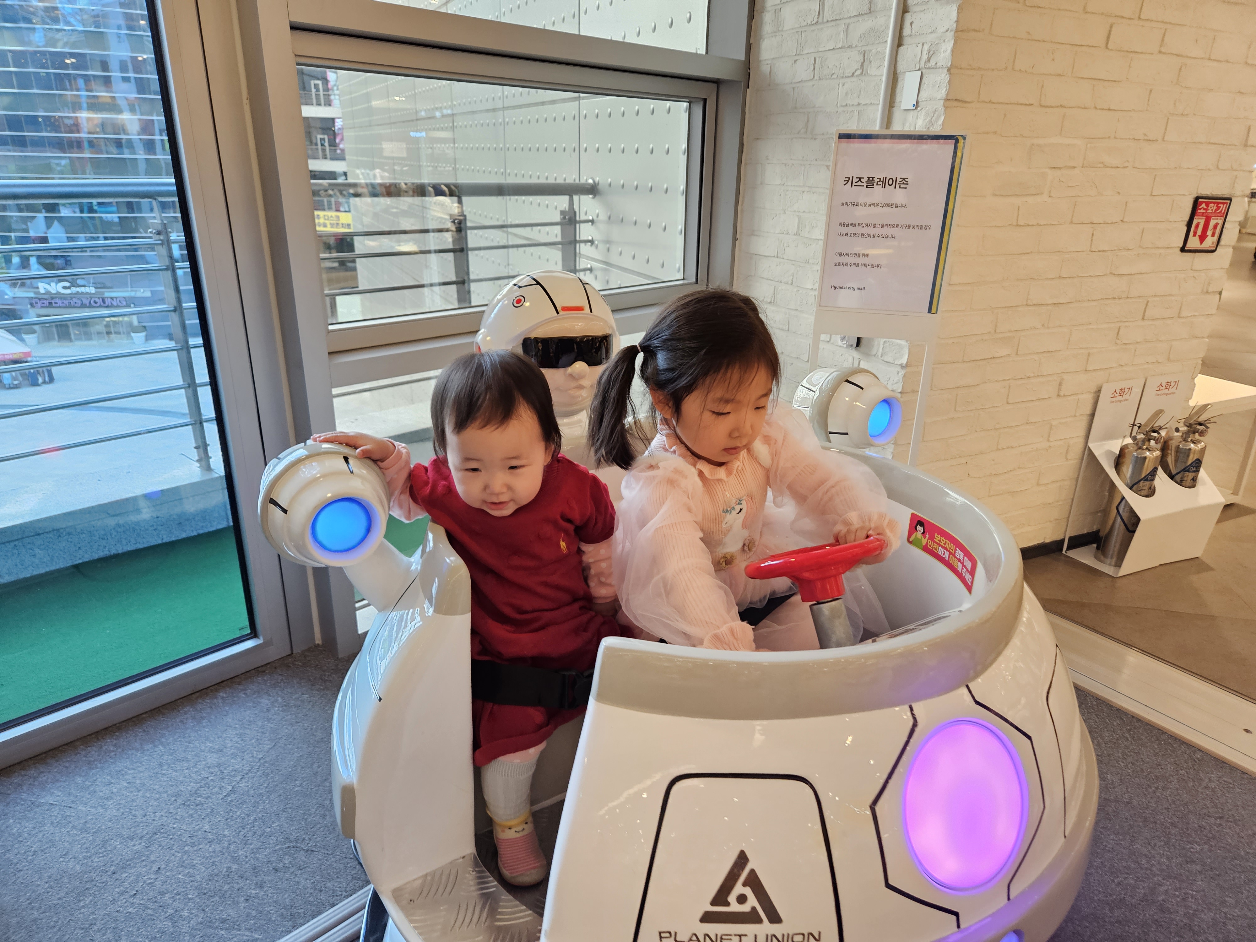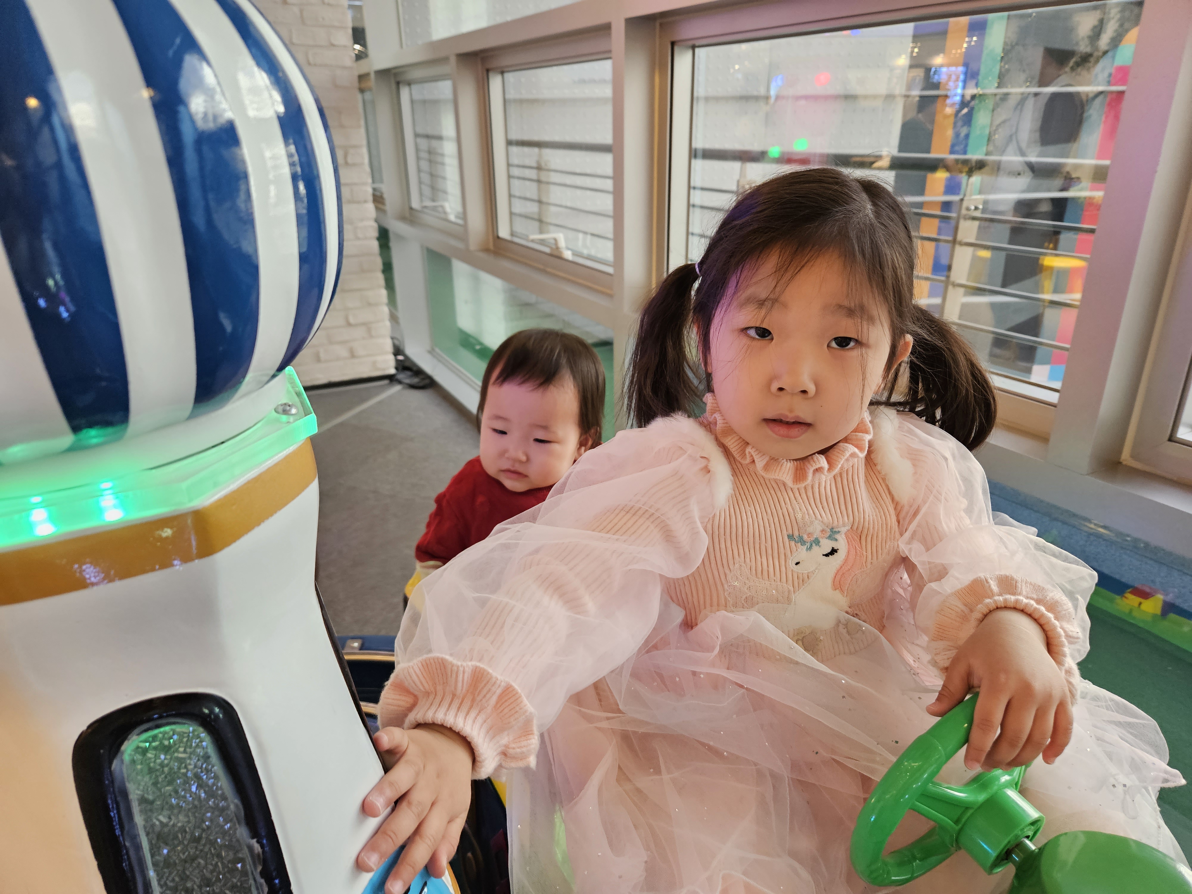 확실히 둘째가, 첫째가 하는 것을 보고 따라하기에 놀이기구 타는 것도 빨랐다.
