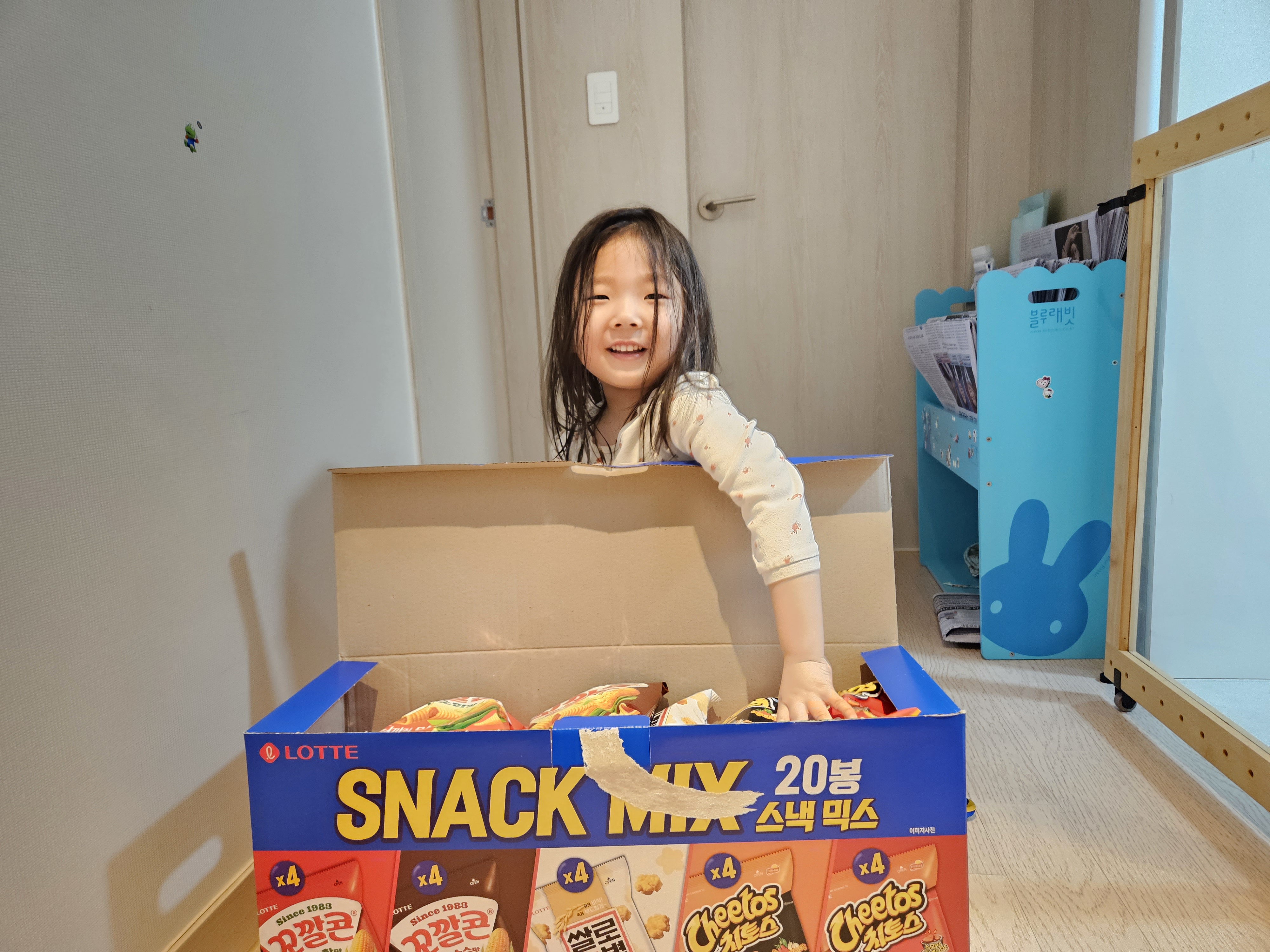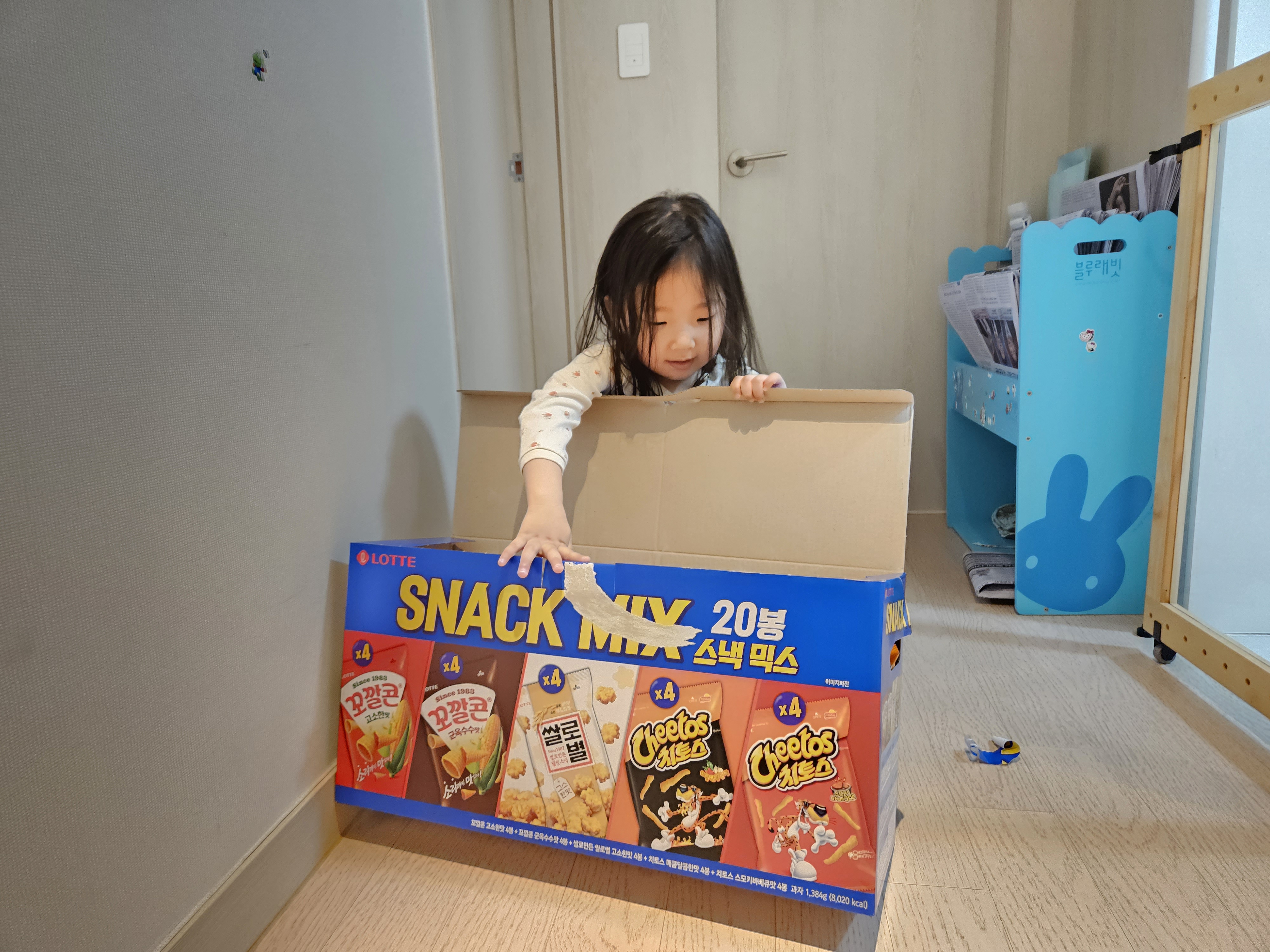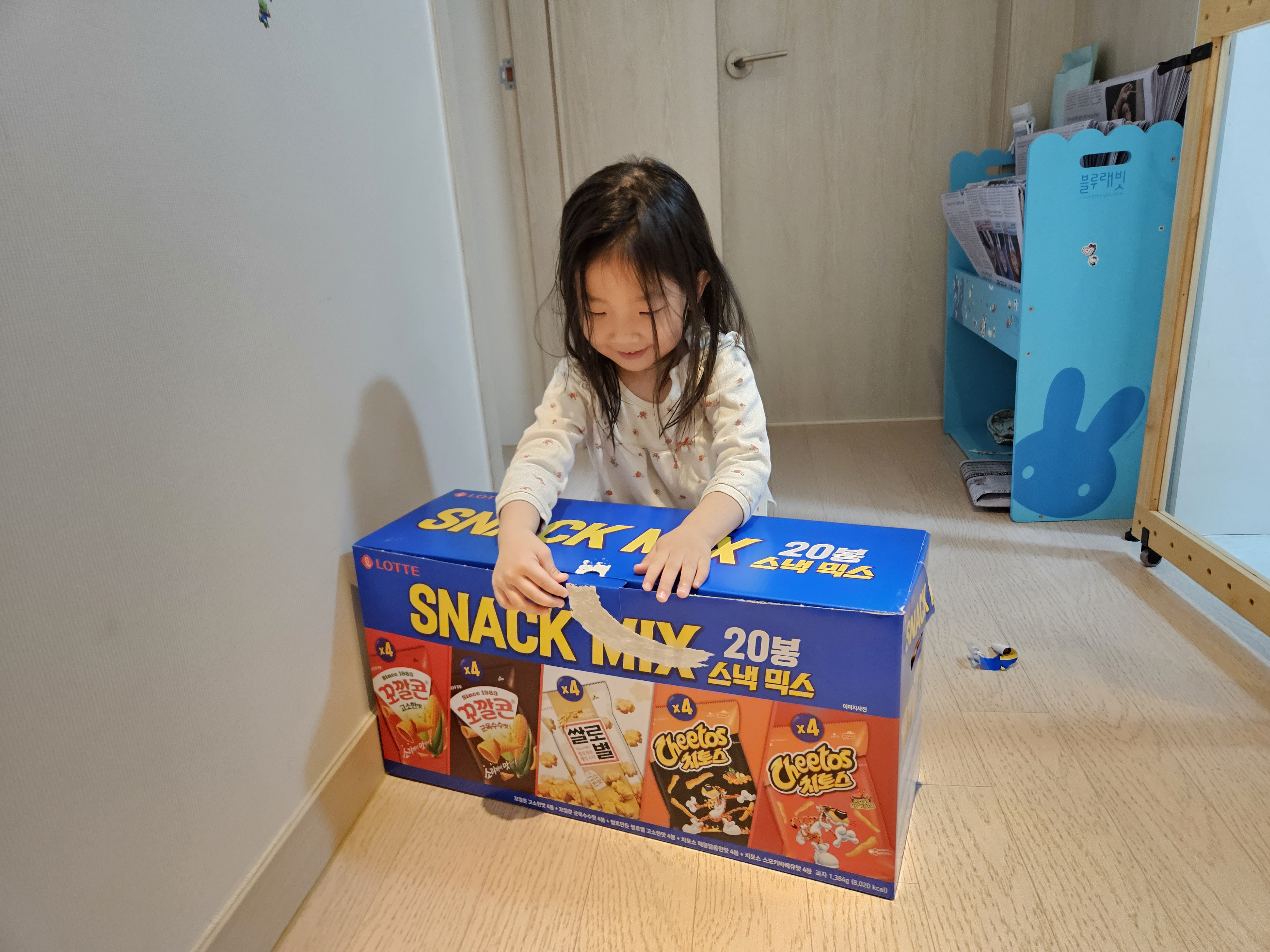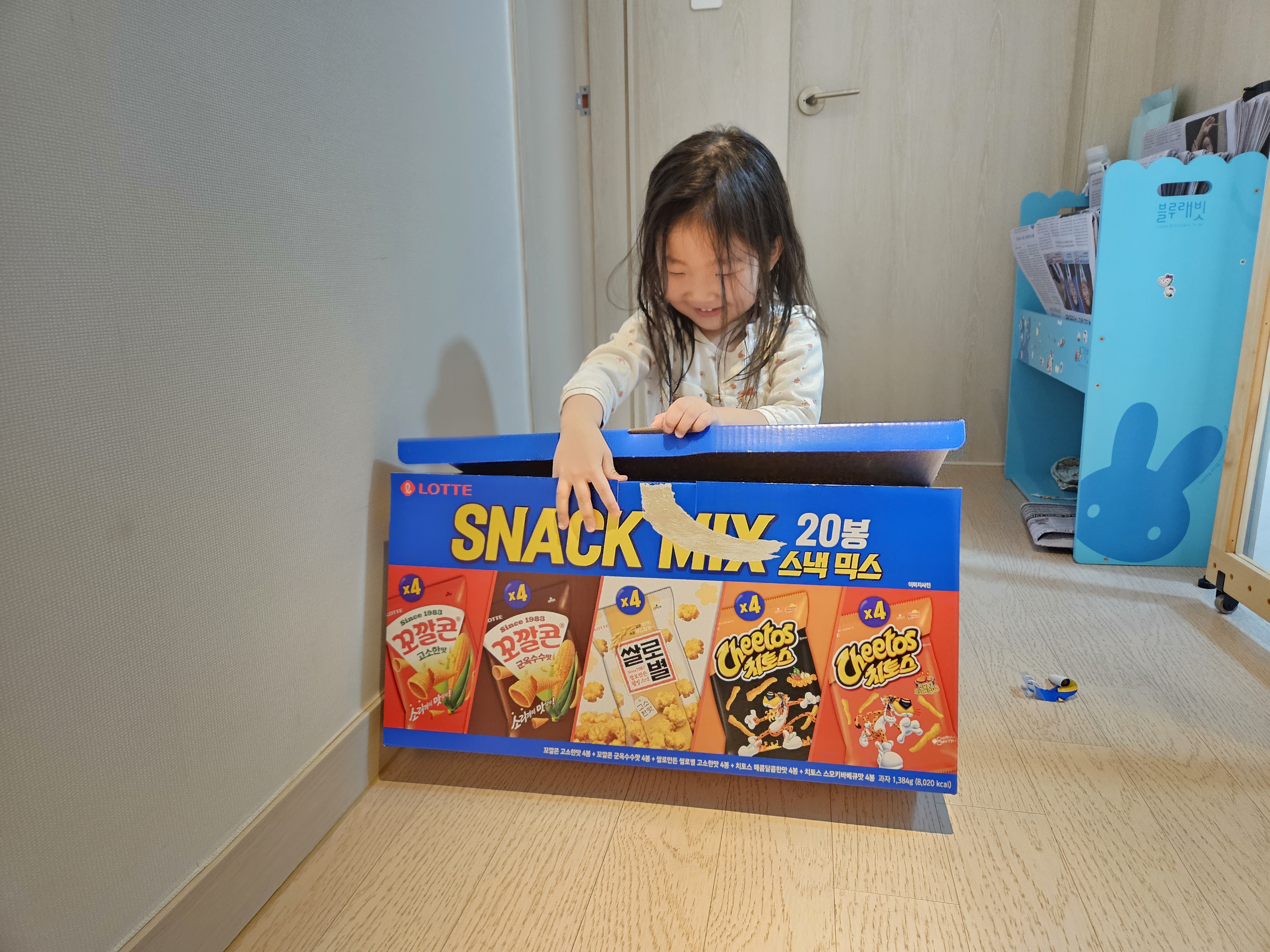 퇴근 후 스낵박스를 도연이한테 주니 생일 인 것 마냥 좋아하더라.. ㅎㅎ