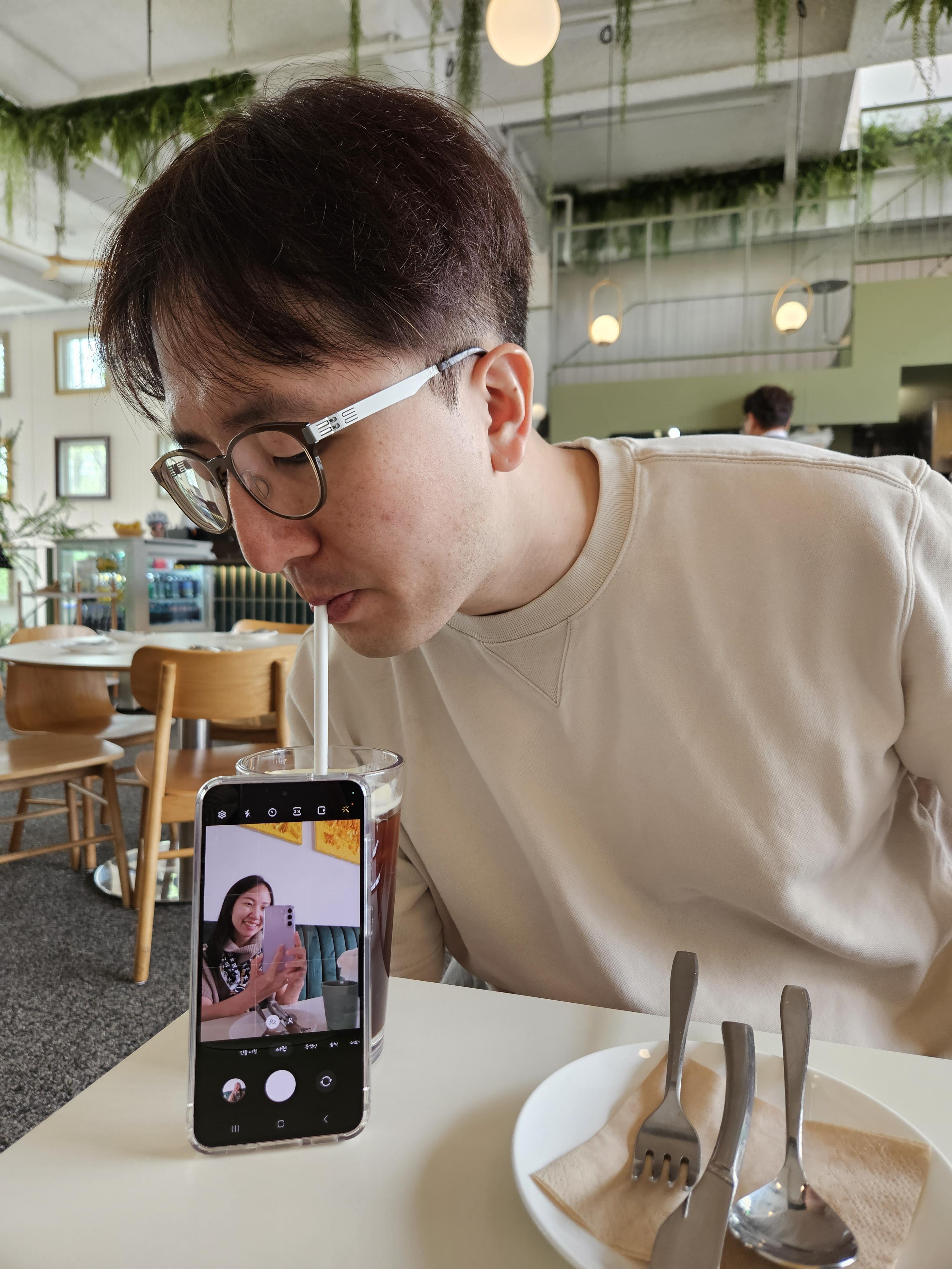 아니 와이프는 왜 내 커피에 저렇게 핸드폰 세워놓고 셀카를 찍는지... 계속 못 먹다 빨대 꽂아서 먹음.............