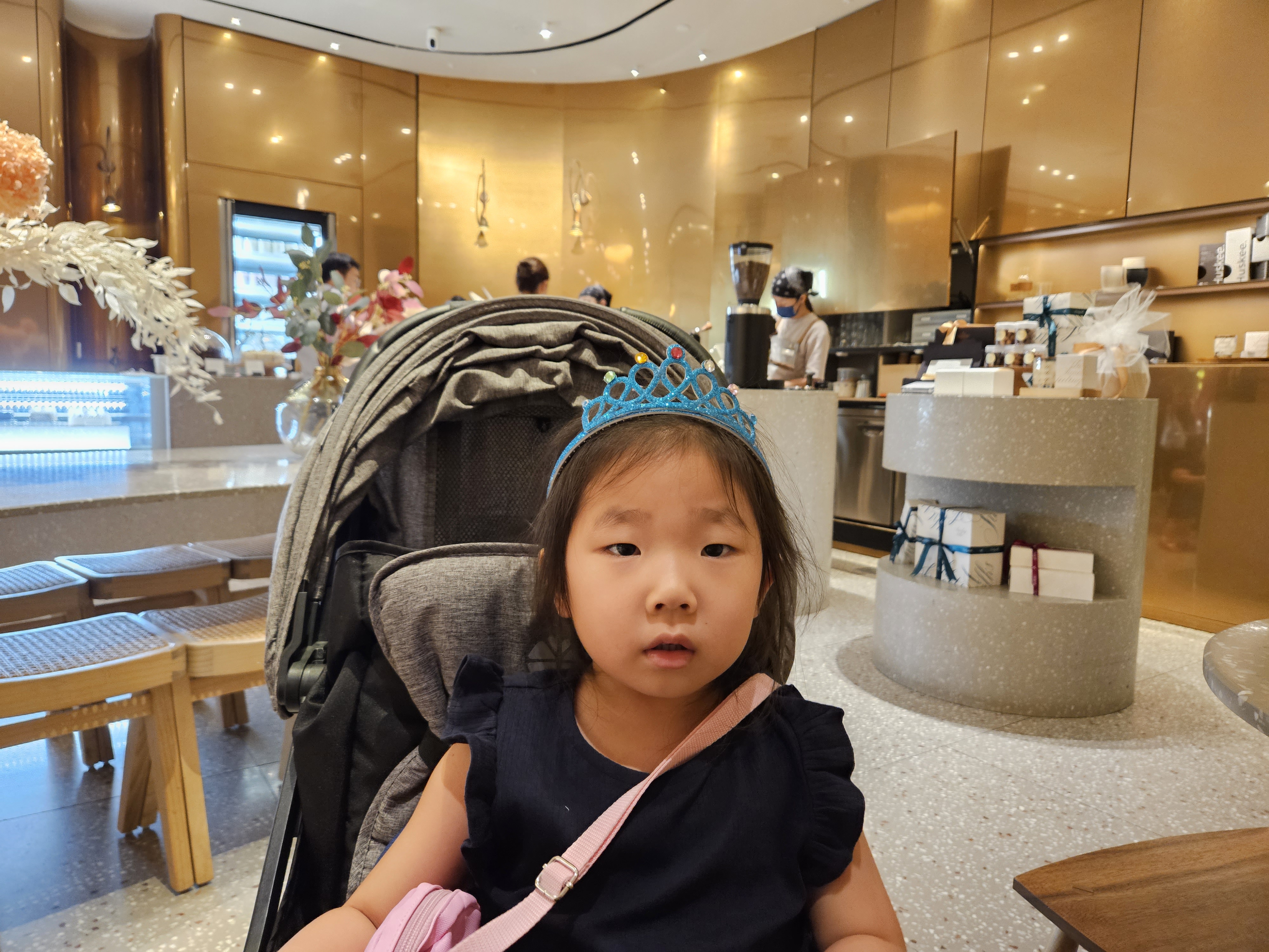 도연이가 힘들다해서 유모차 태워 엄마가 끌고 가고