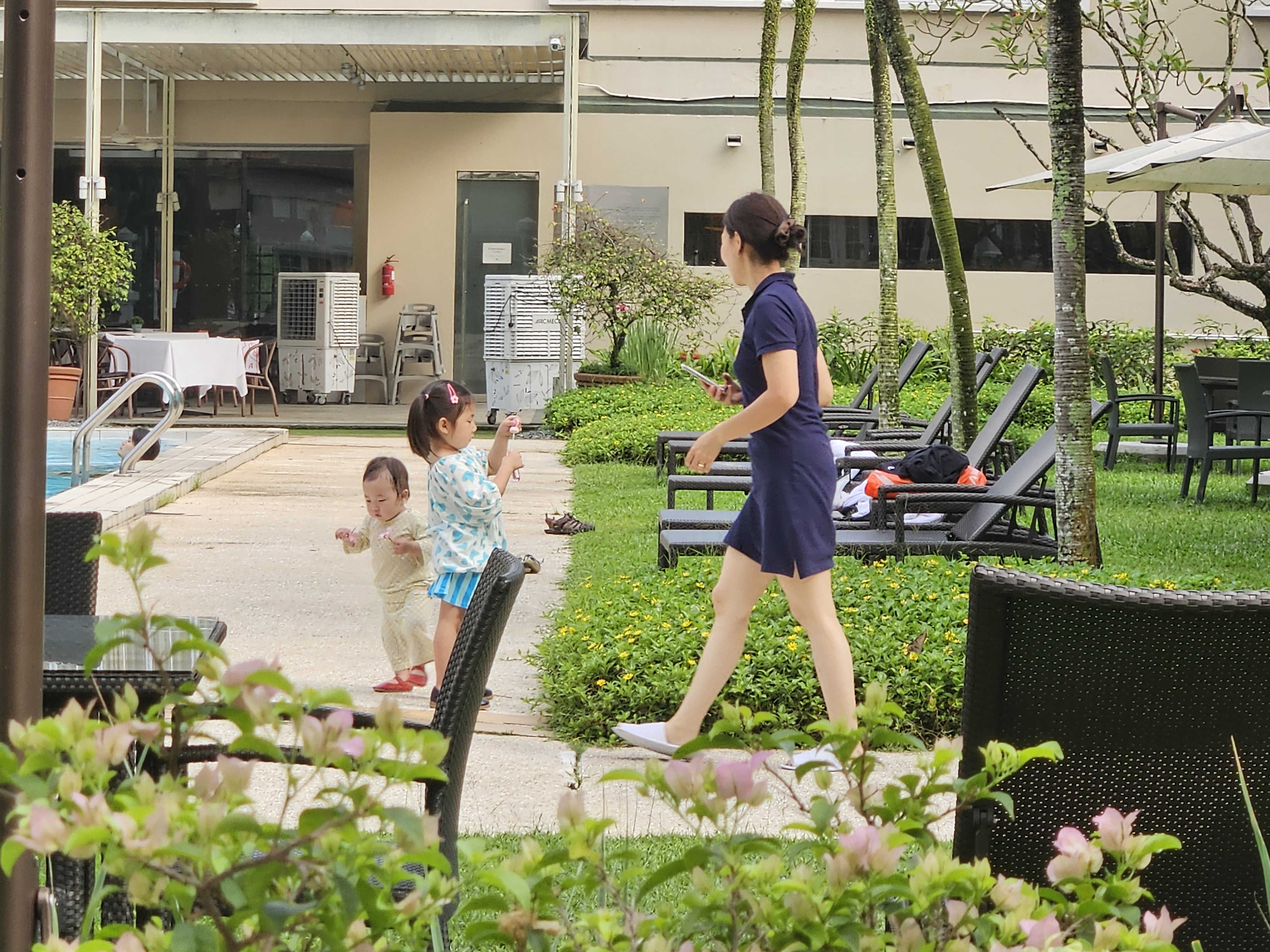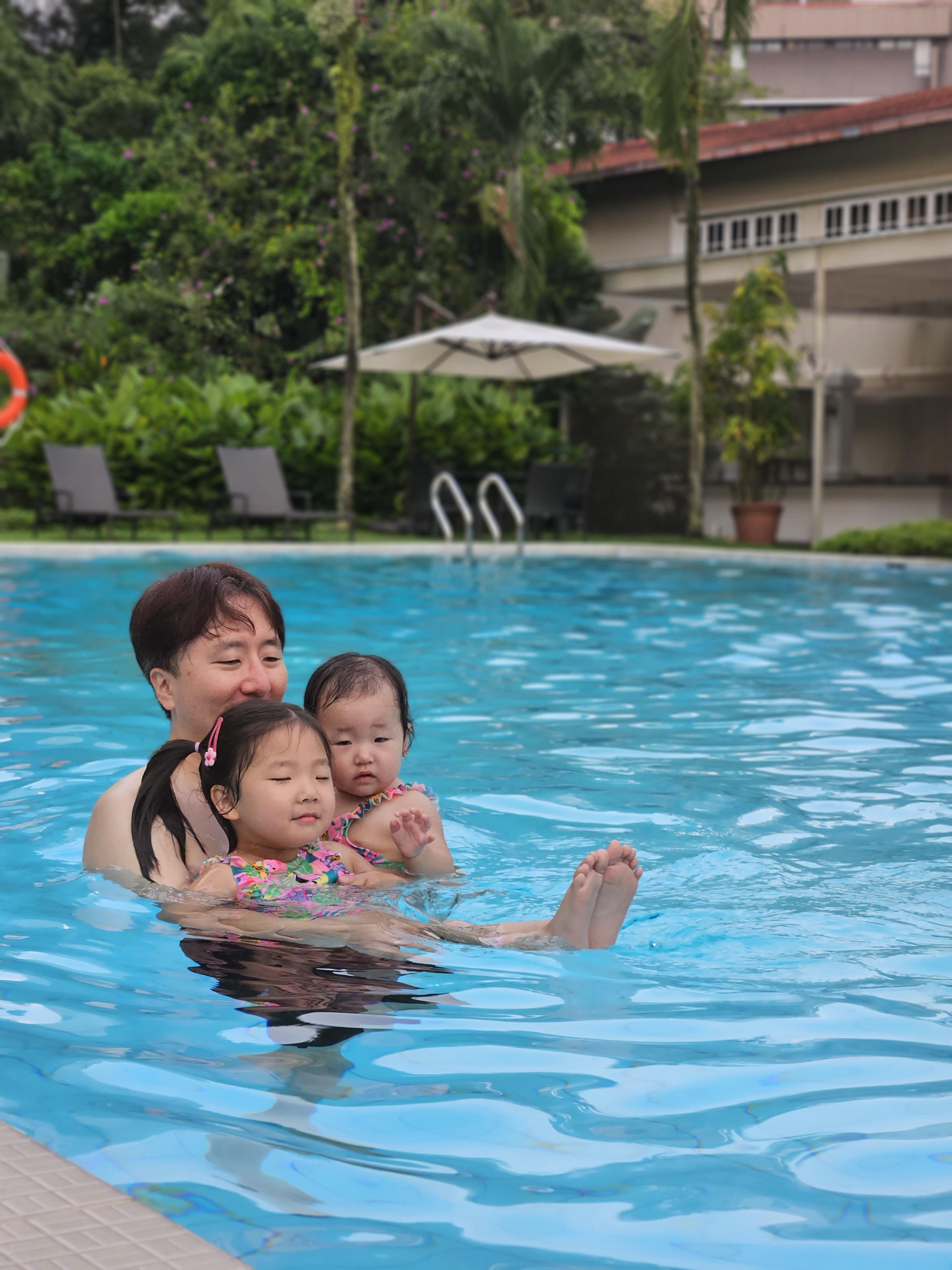 너무 더워서, 떠나는 날이지만 수영장 잠깐 들어가봅니다