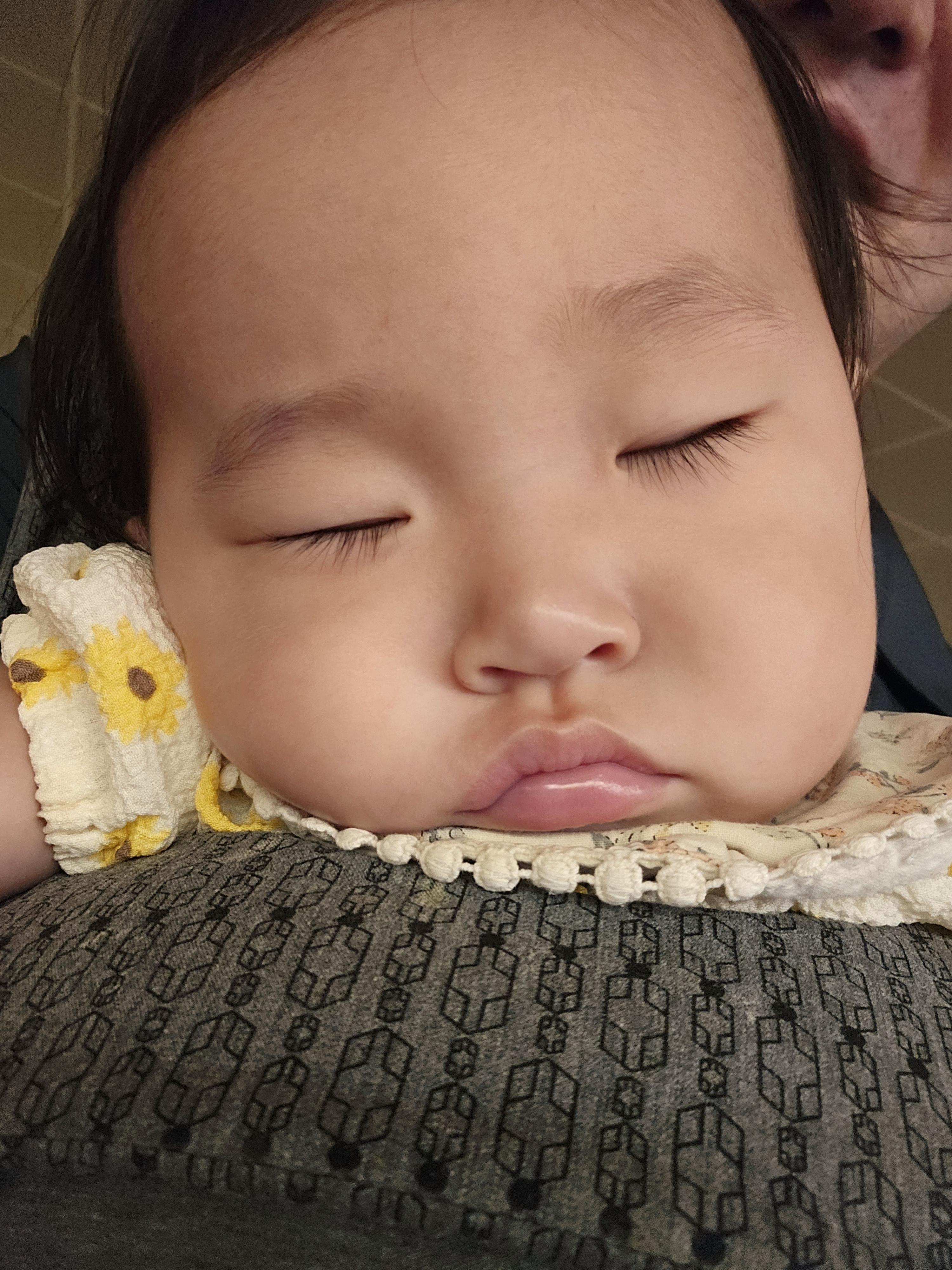 도연이는 피곤해서 이렇게 안겨서 잠이 들어버렸지요