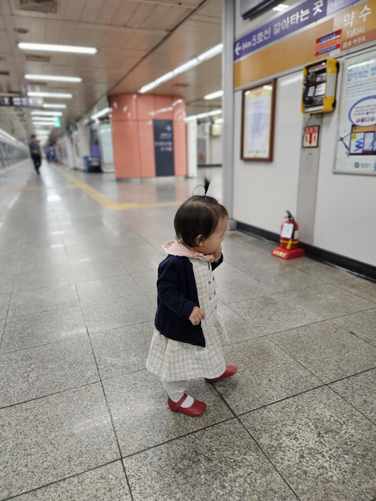 미술관을 가기에 도경이도 단정하게 입고 갑니다.