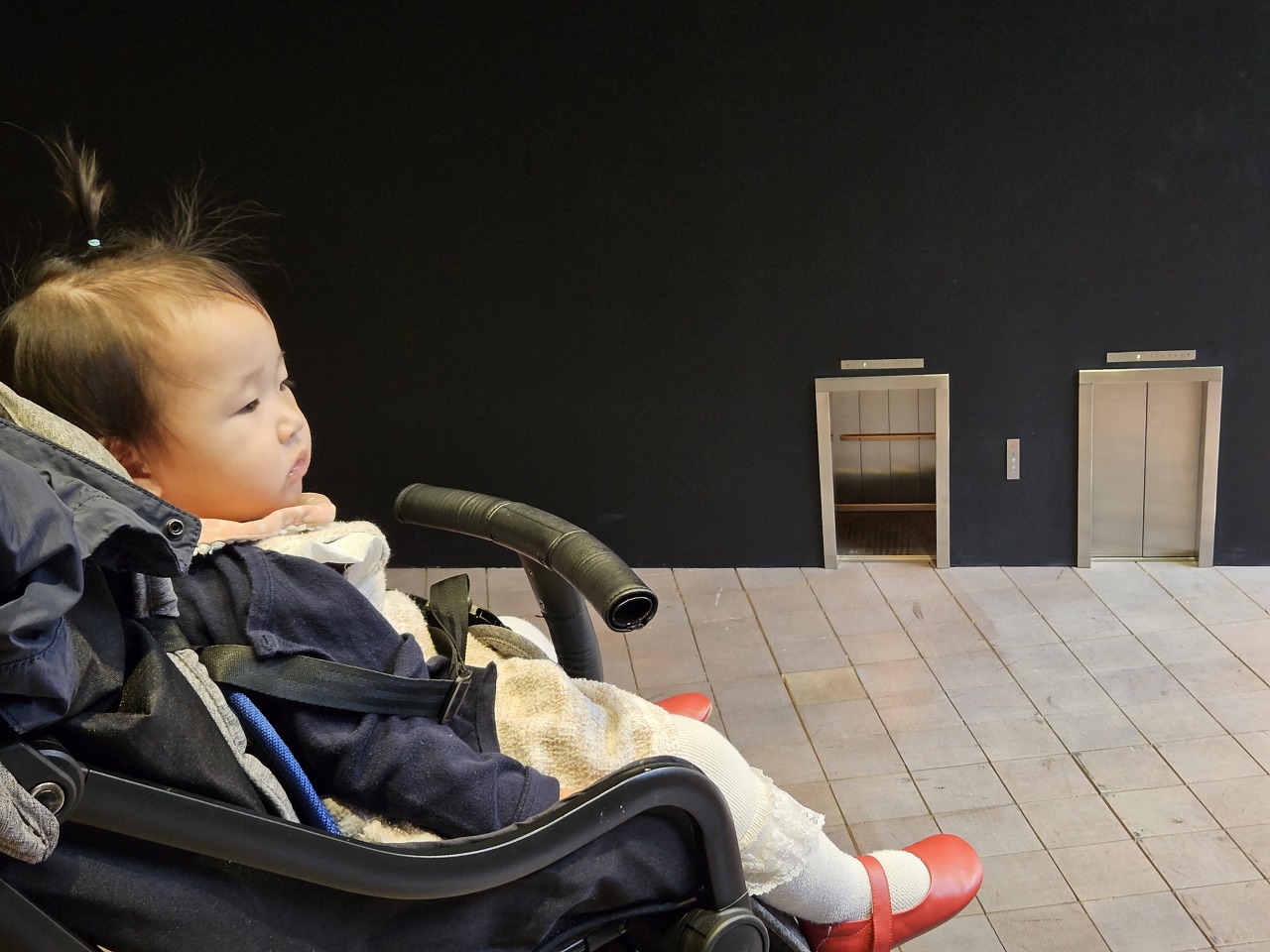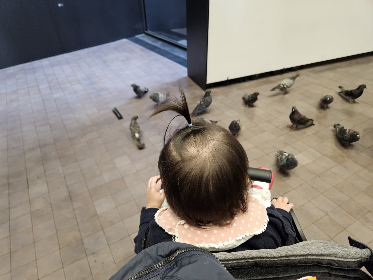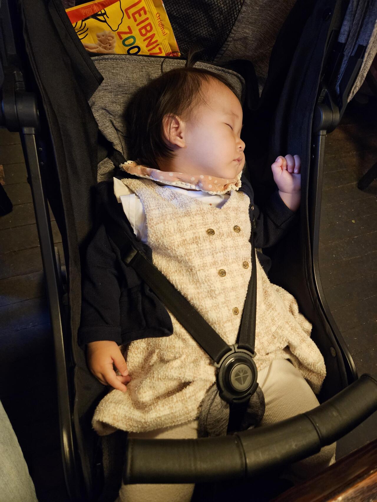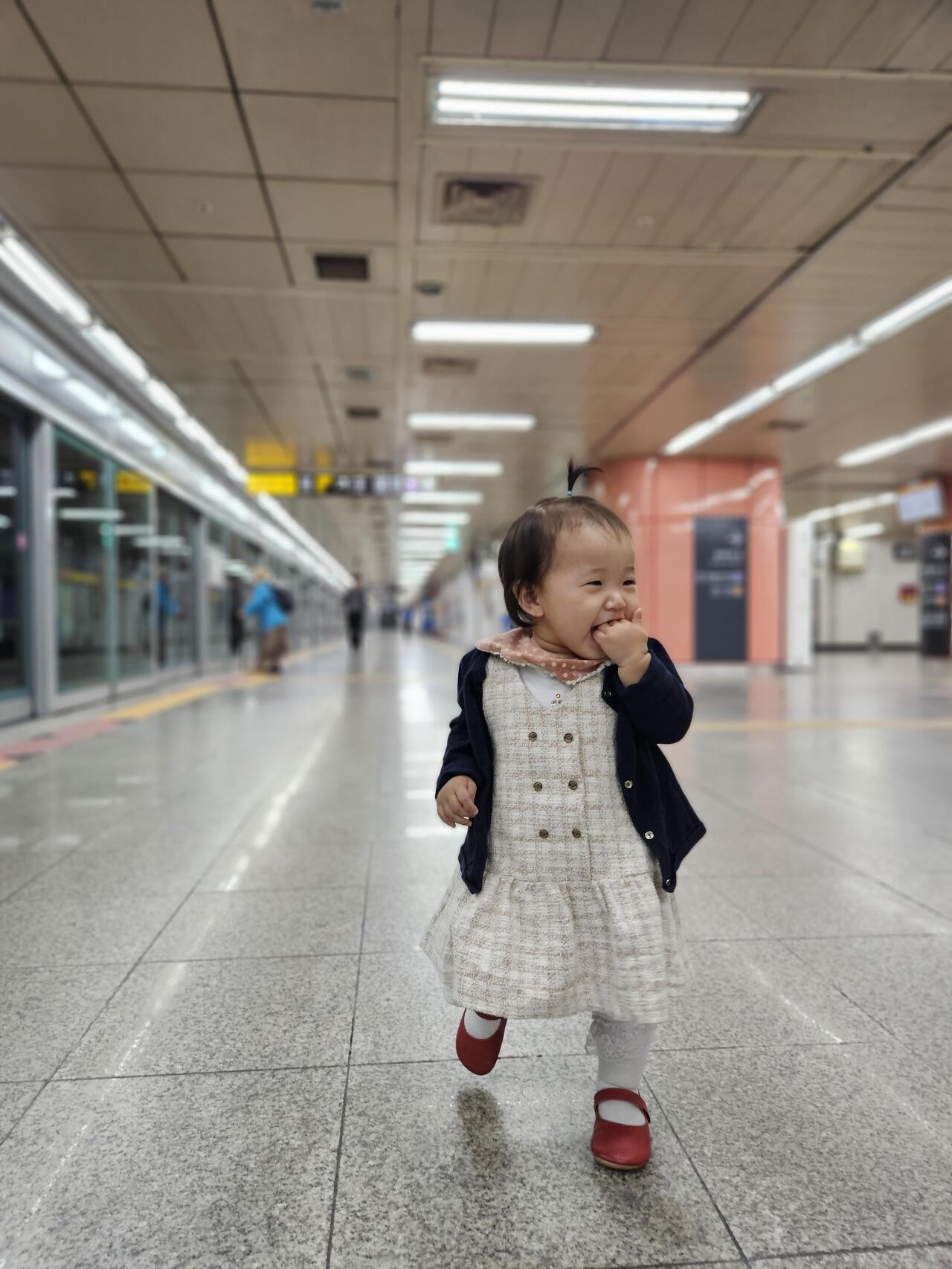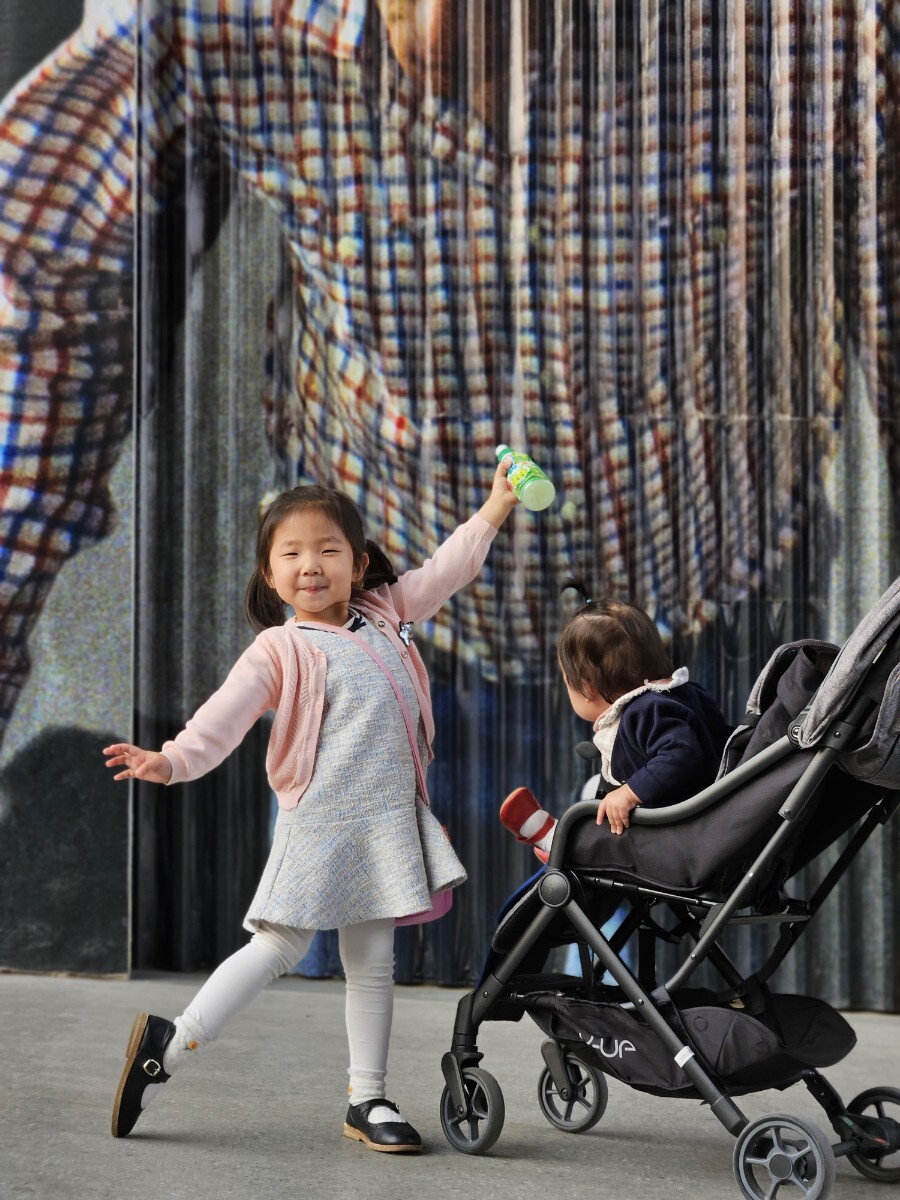 유모차 타는 것보다 두발로 걷는게 좋나봅니다.