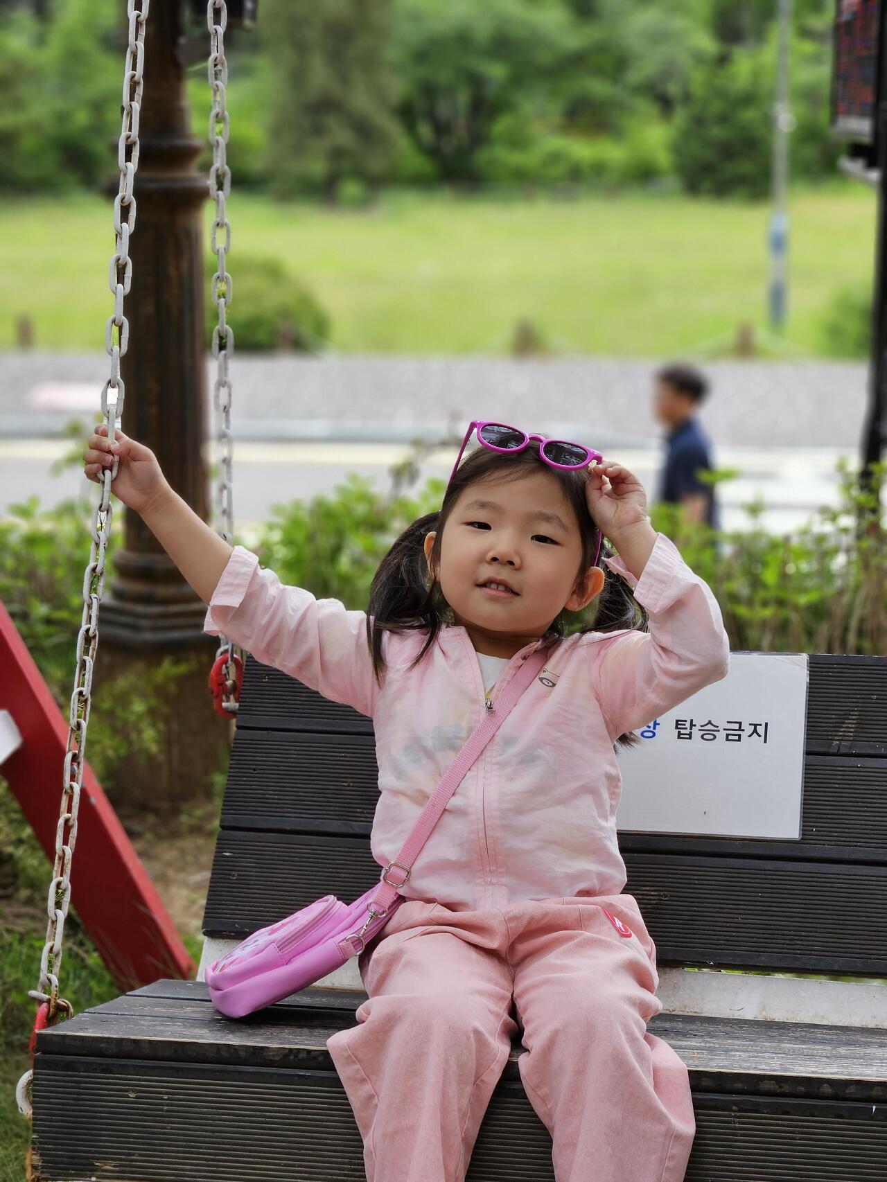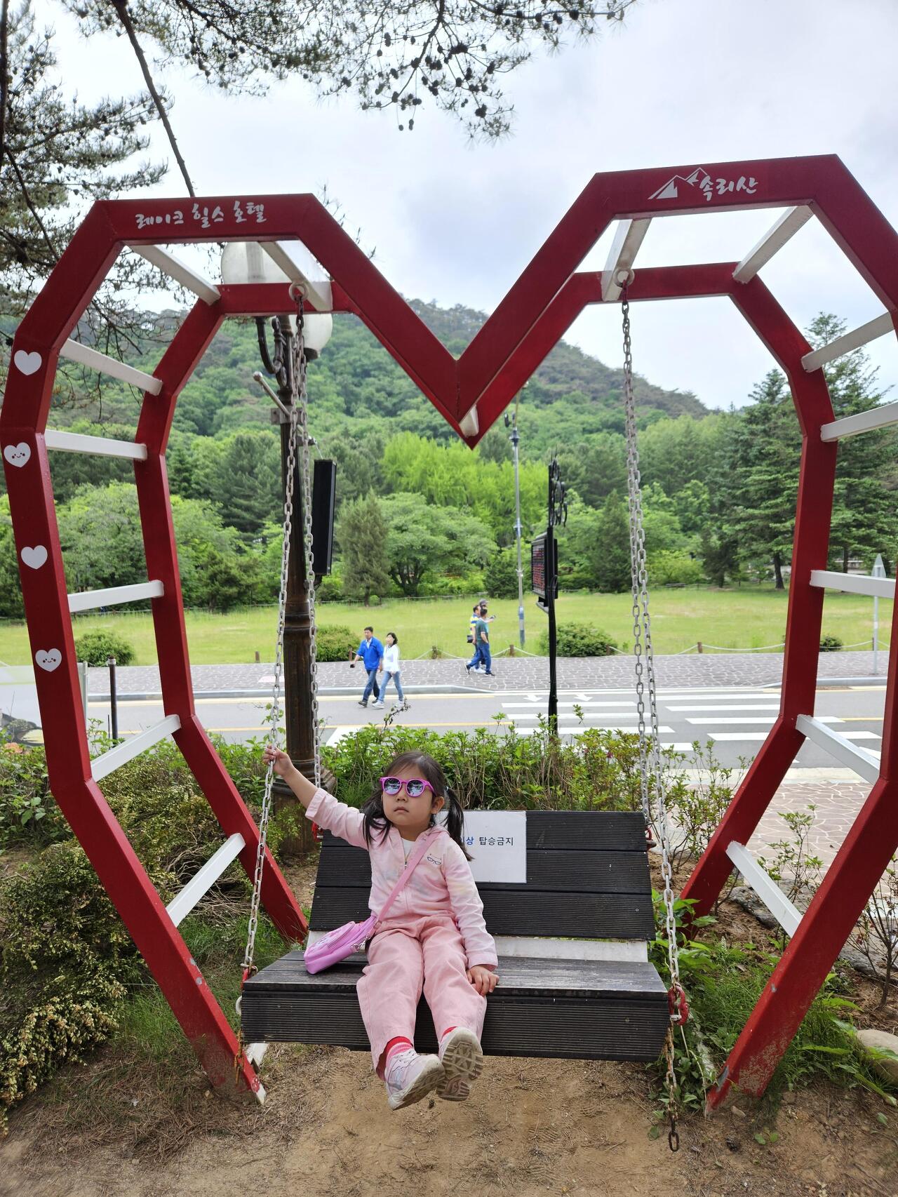 들어가며 본 레이크 힐스 호텔에 하트 모양 그네가 있어 멋쟁이 도연이는 사진을 찍어 봅니다.