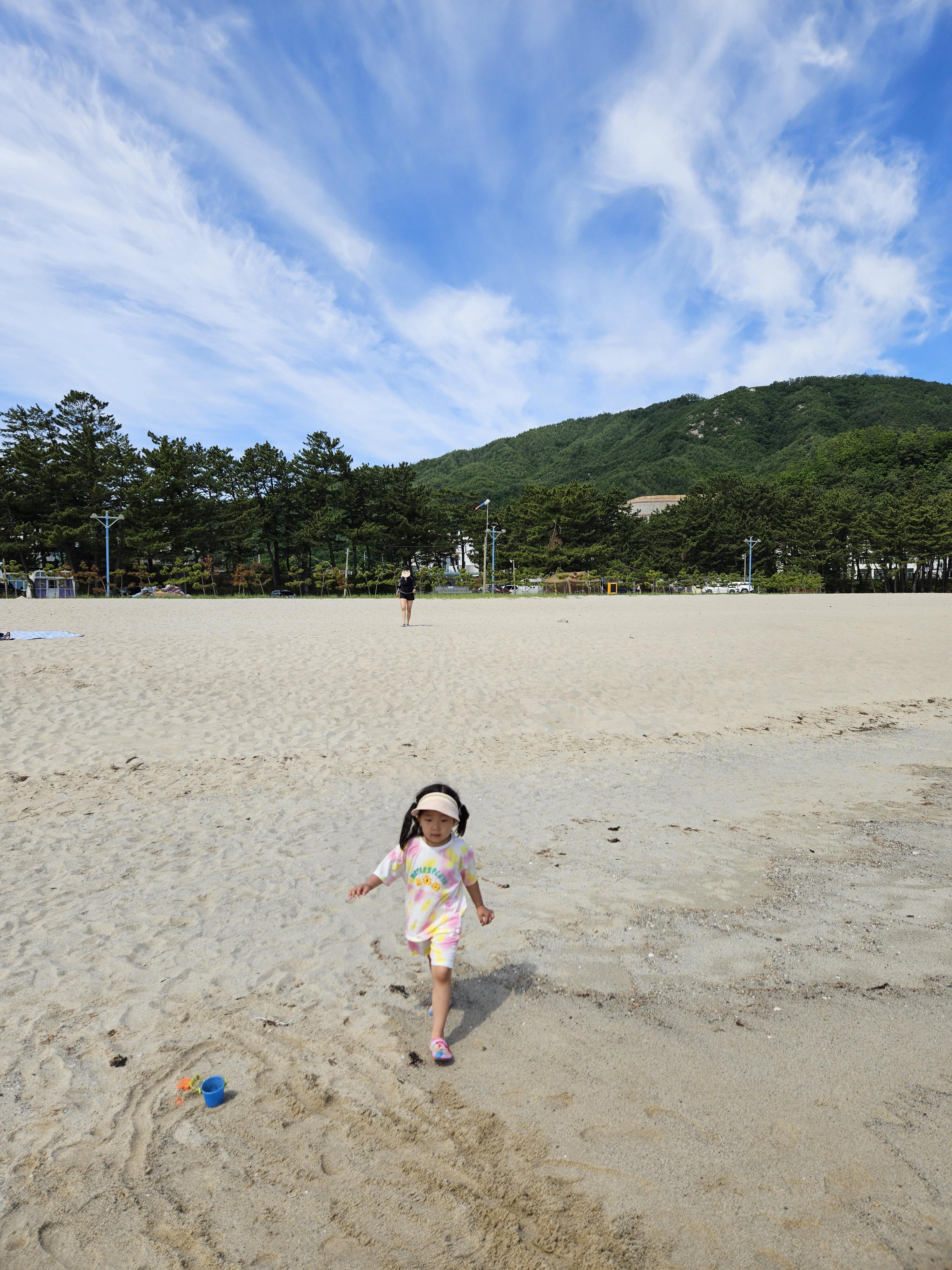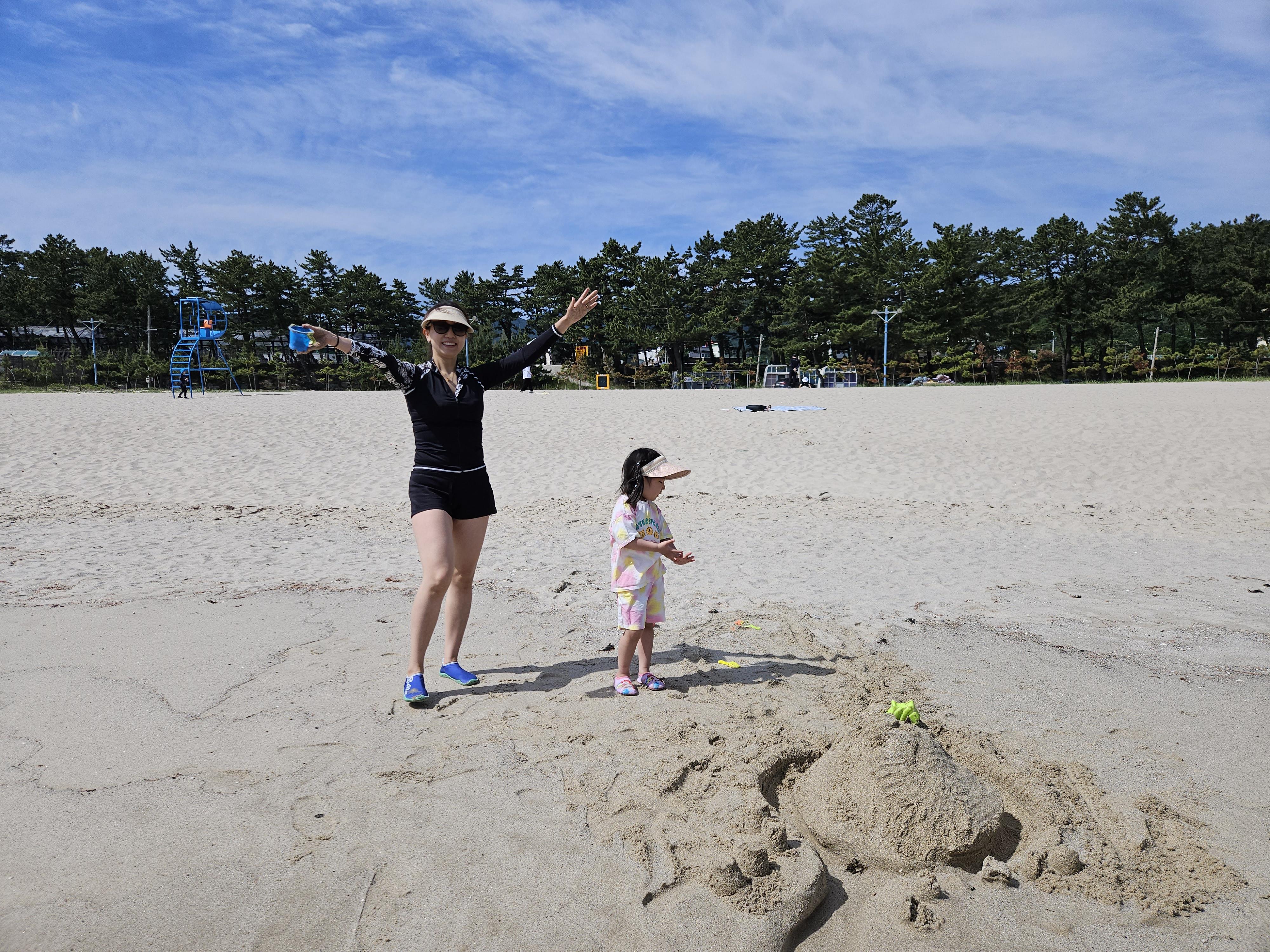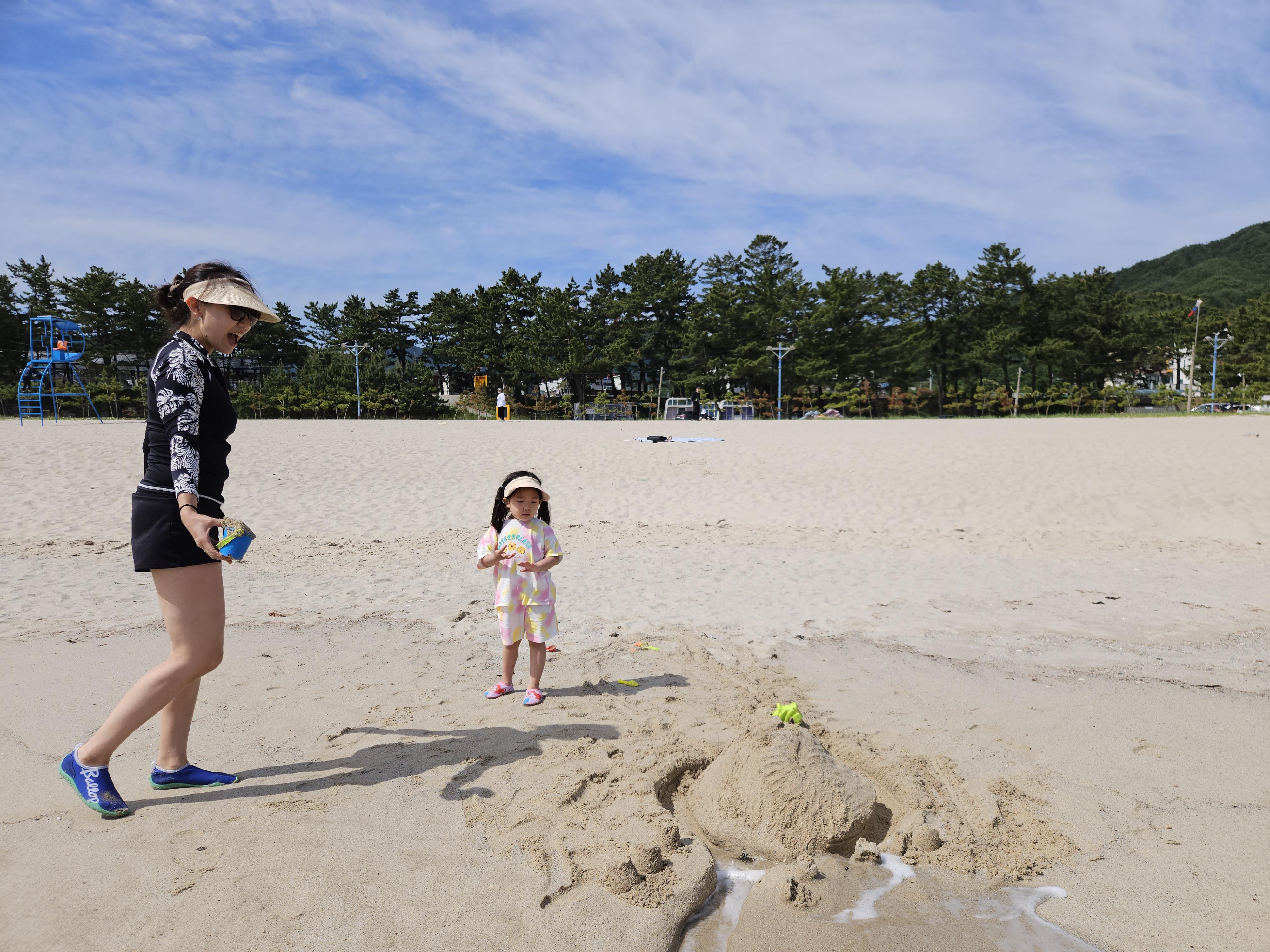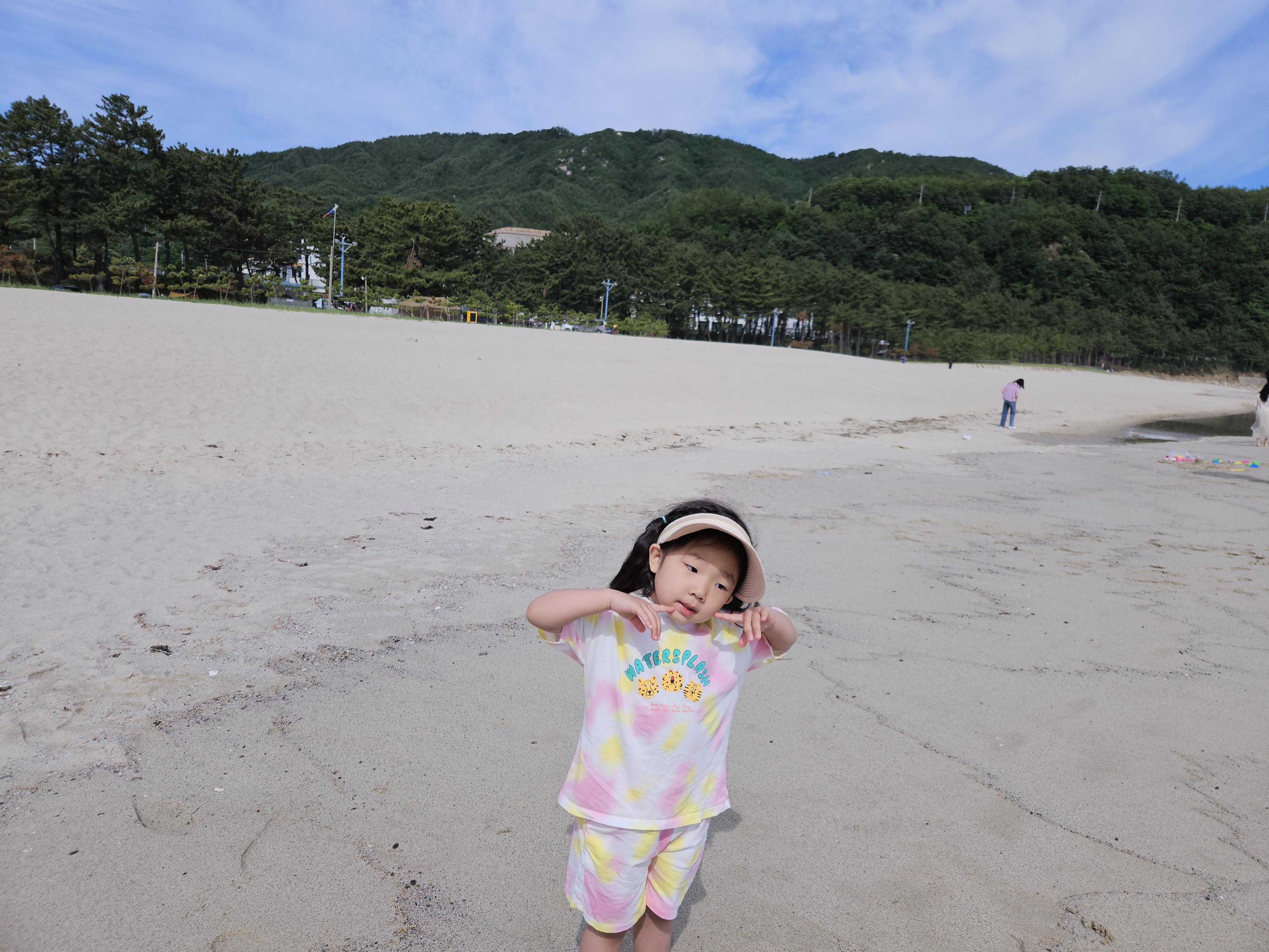 떠나기 전에 아침을 먹고 난 이후 용화해수욕장에서 모래놀이를 잠시 해보도록 가봅니다.