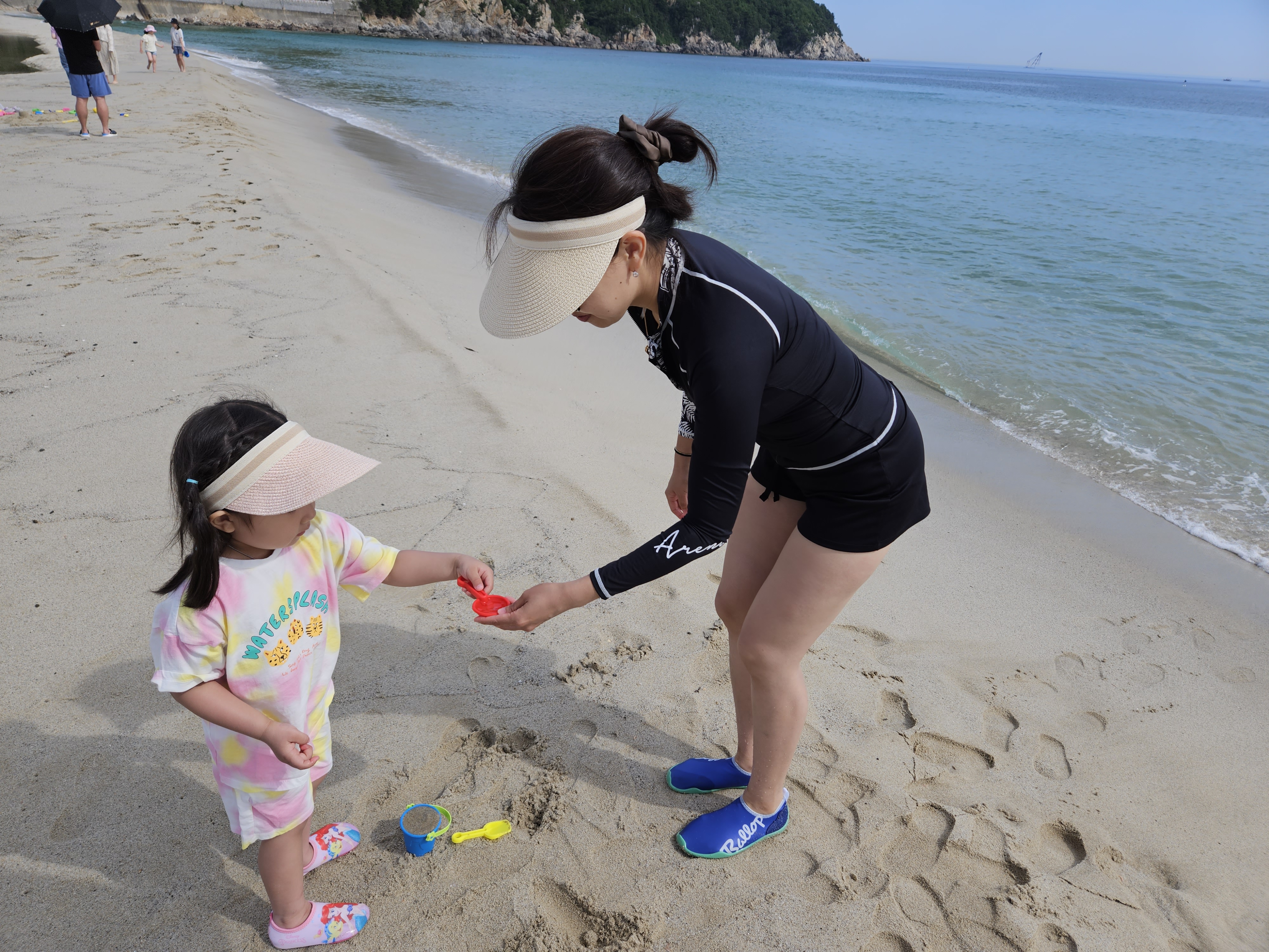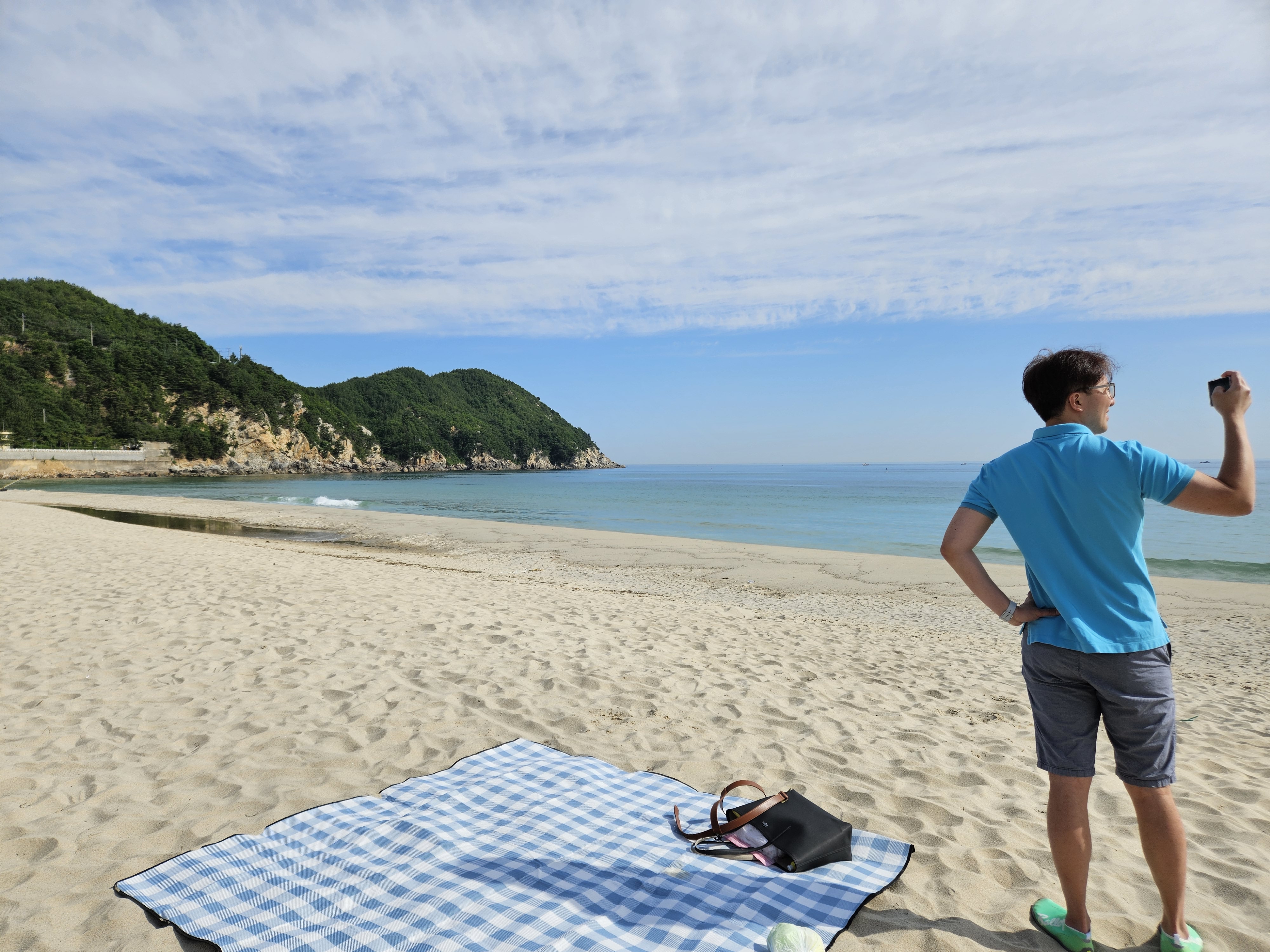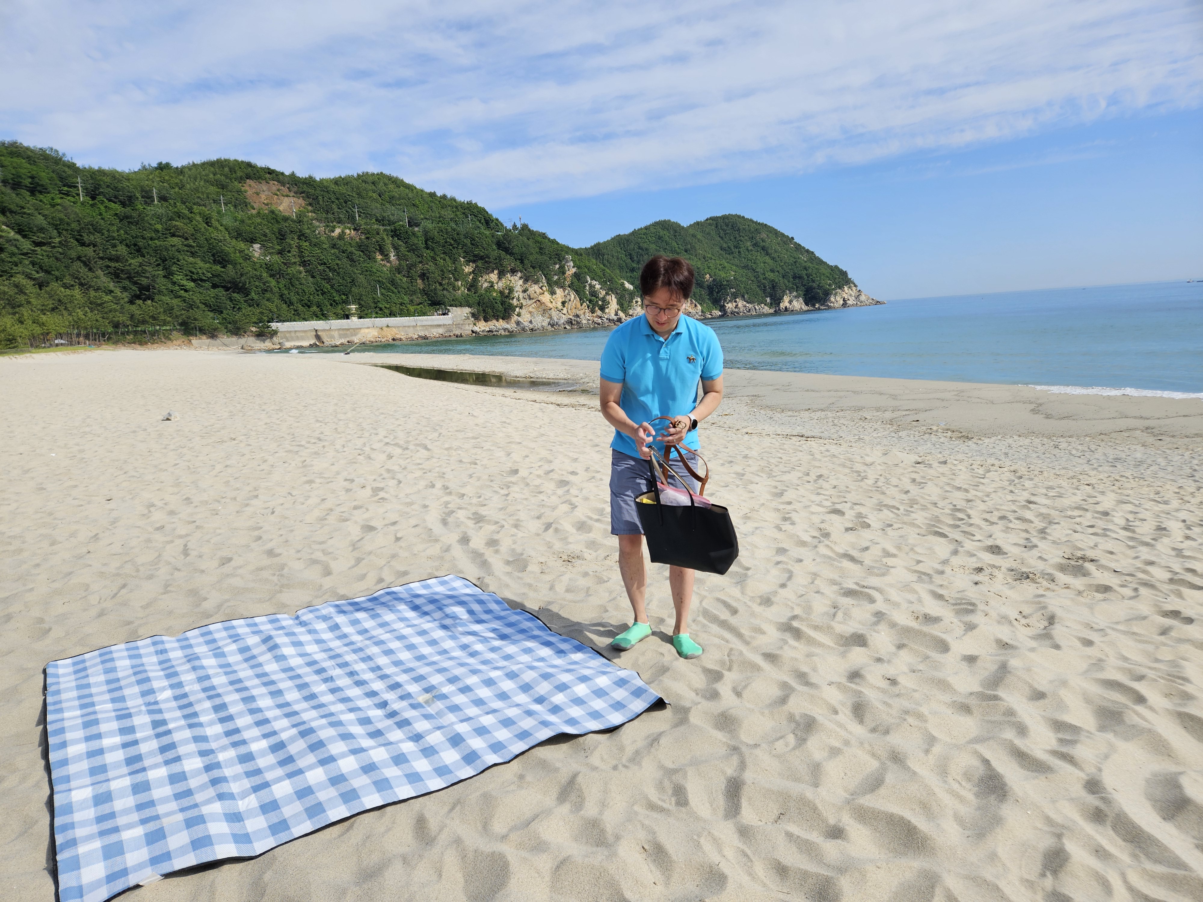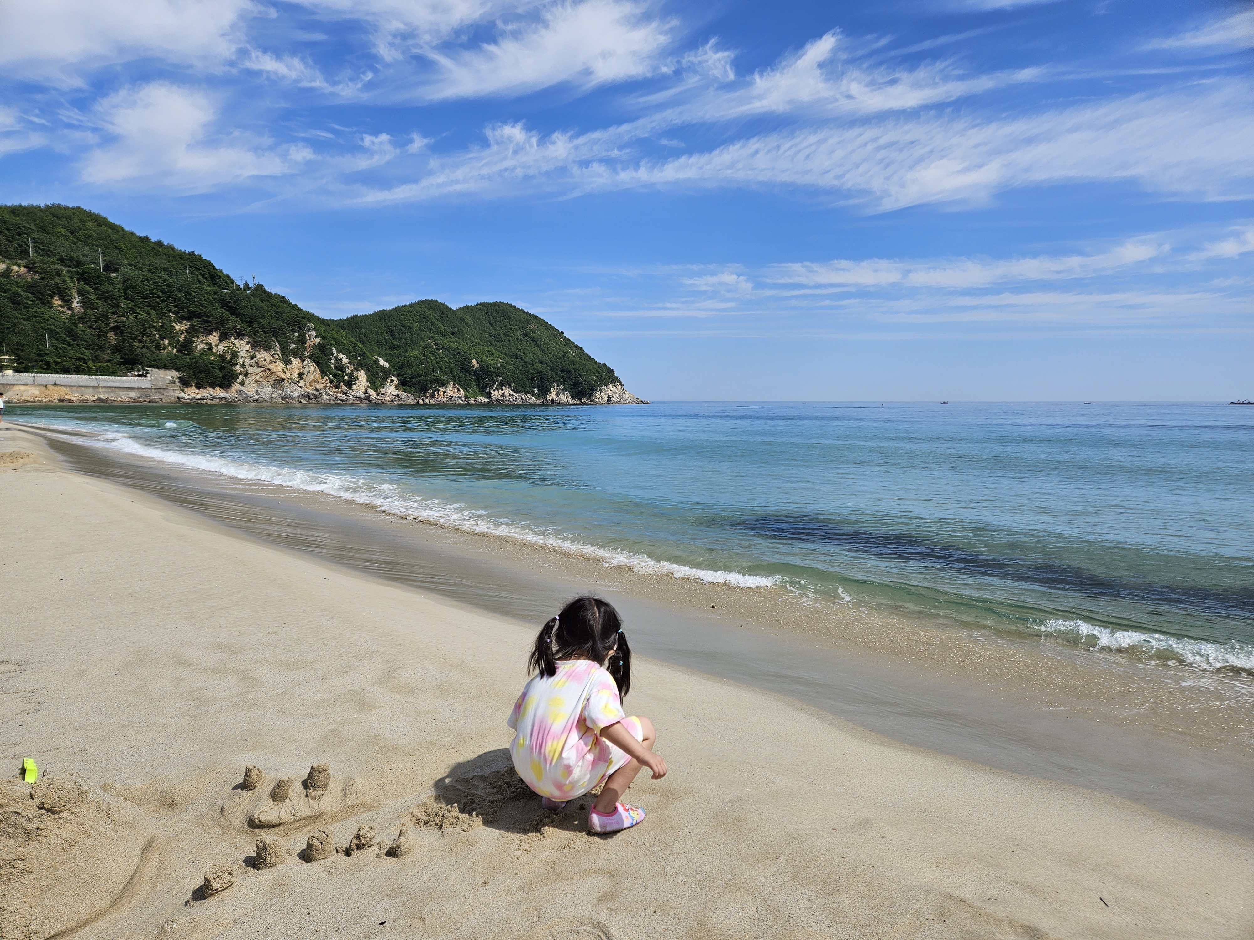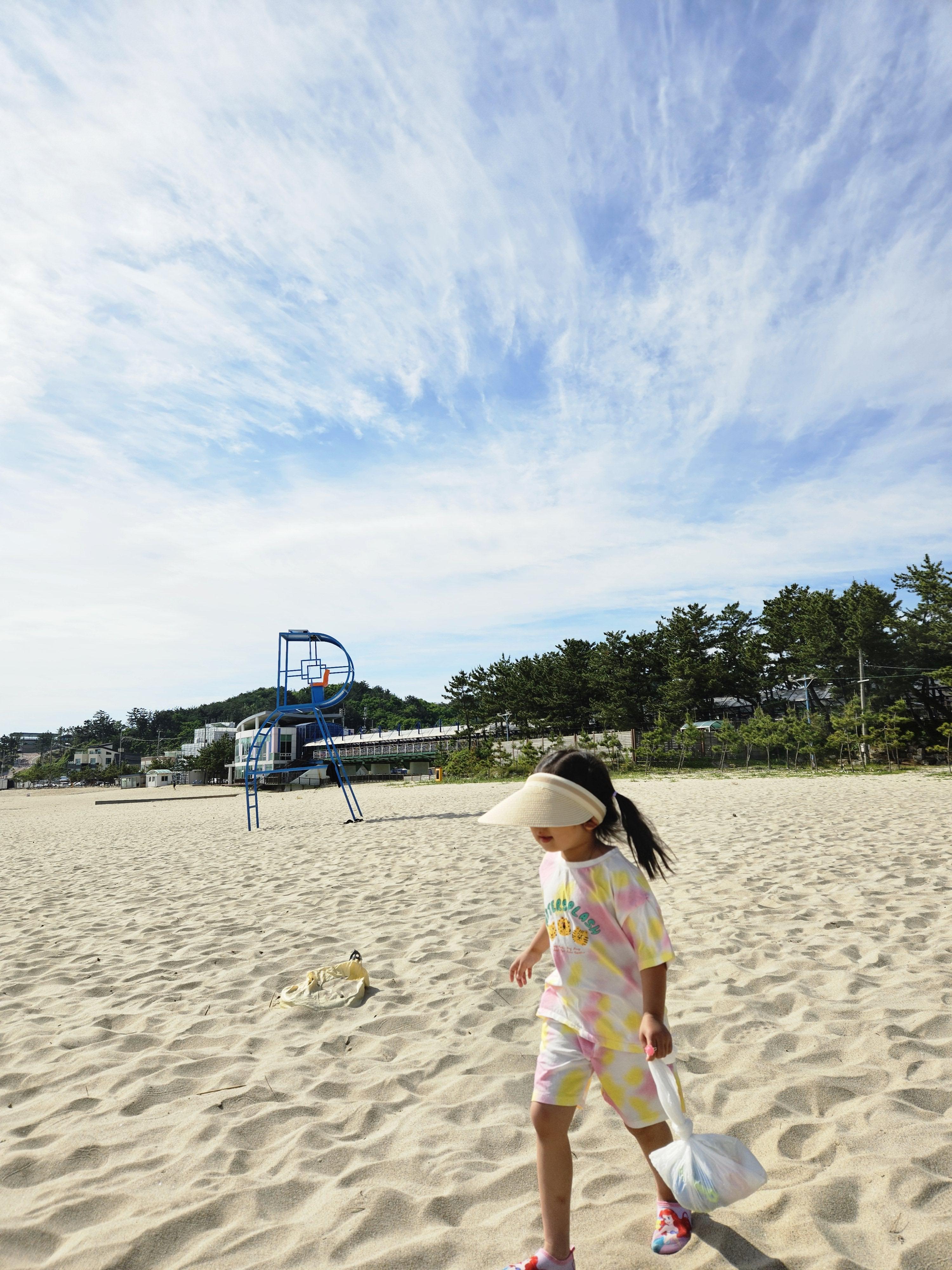 떠나기 전에 아침을 먹고 난 이후 용화해수욕장에서 모래놀이를 잠시 해보도록 가봅니다.