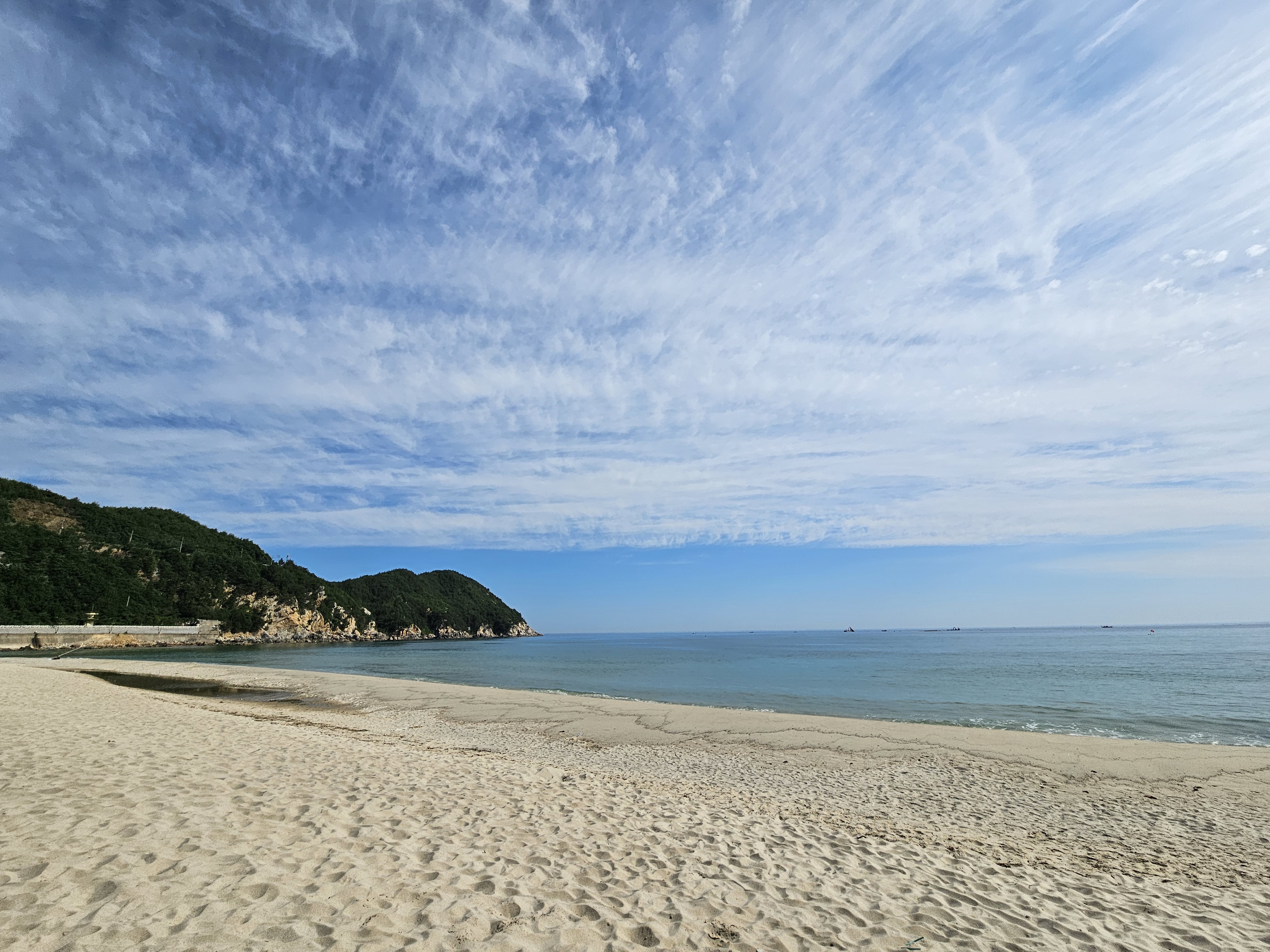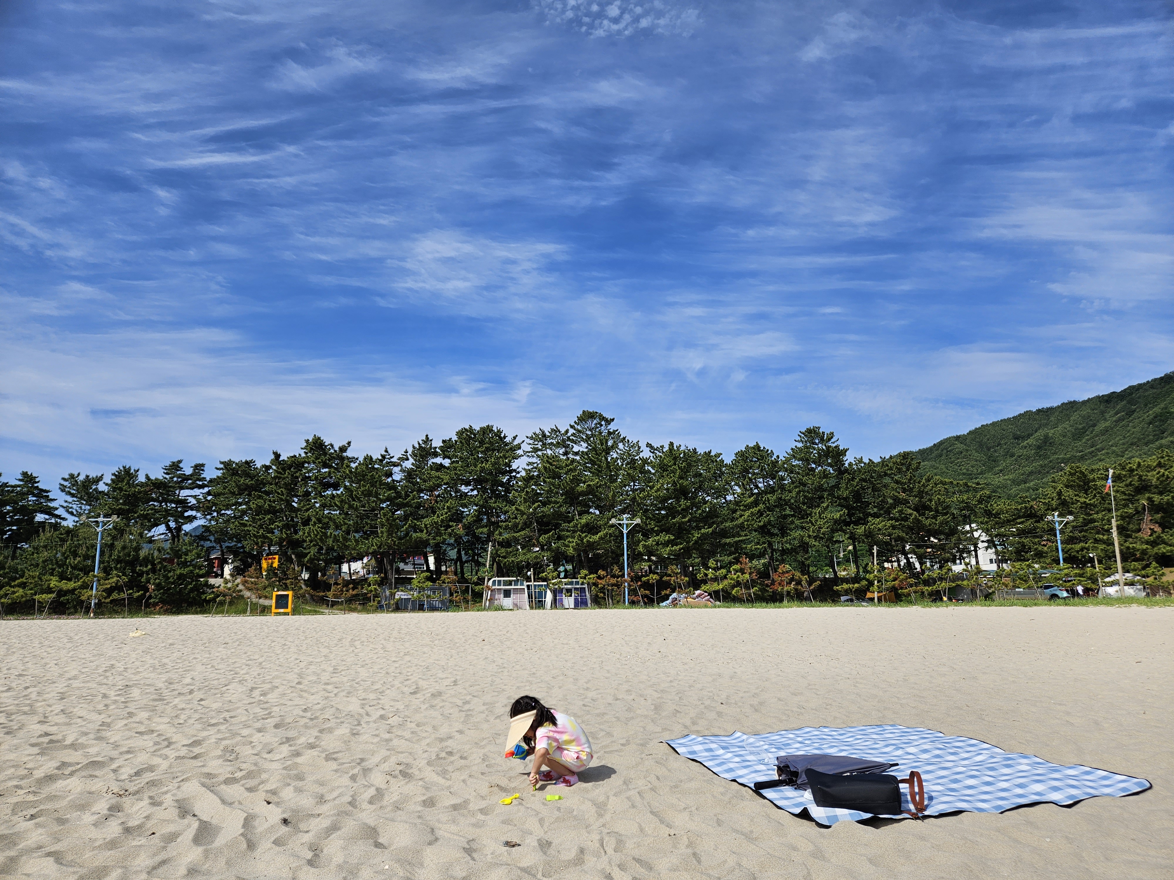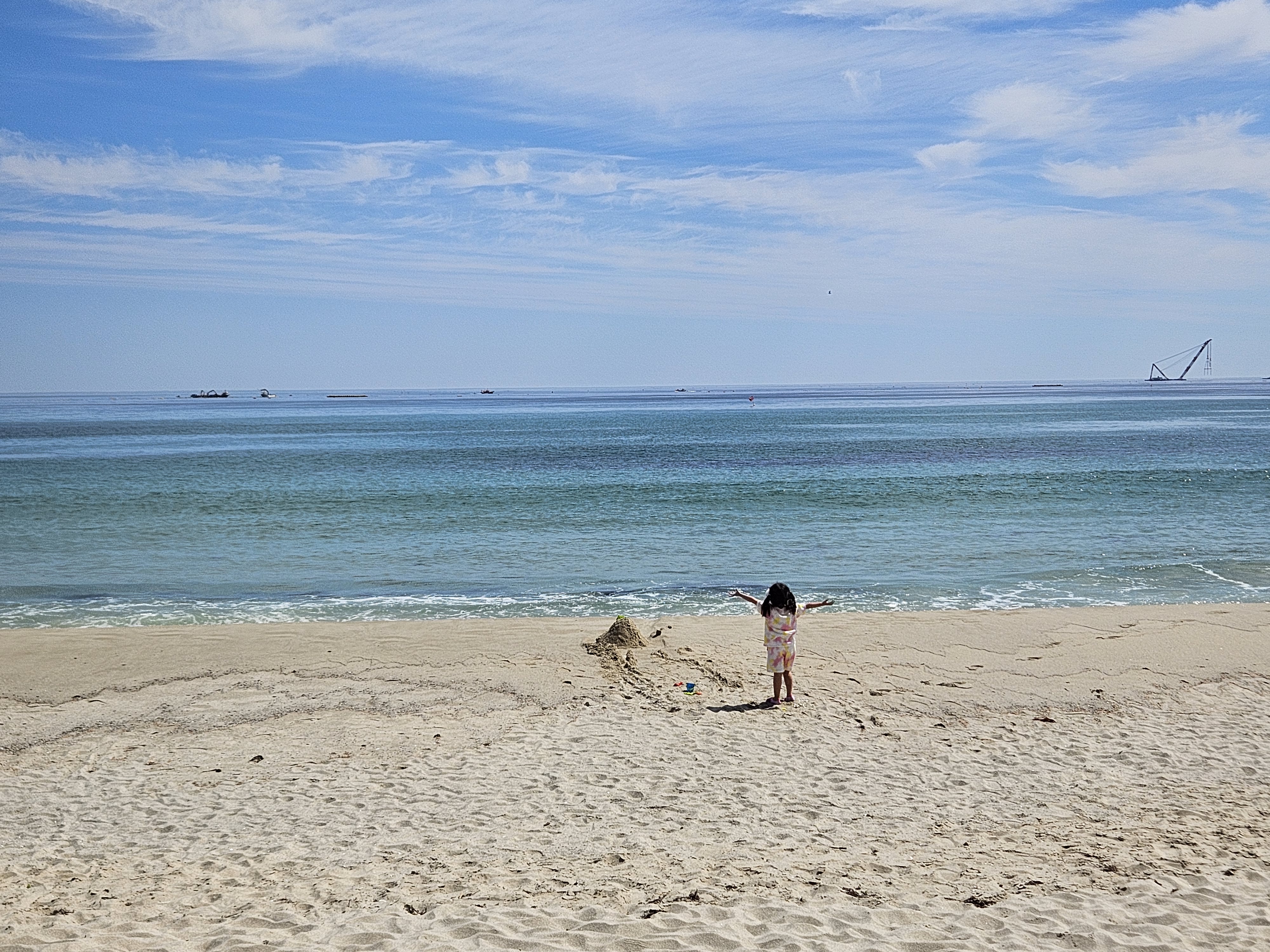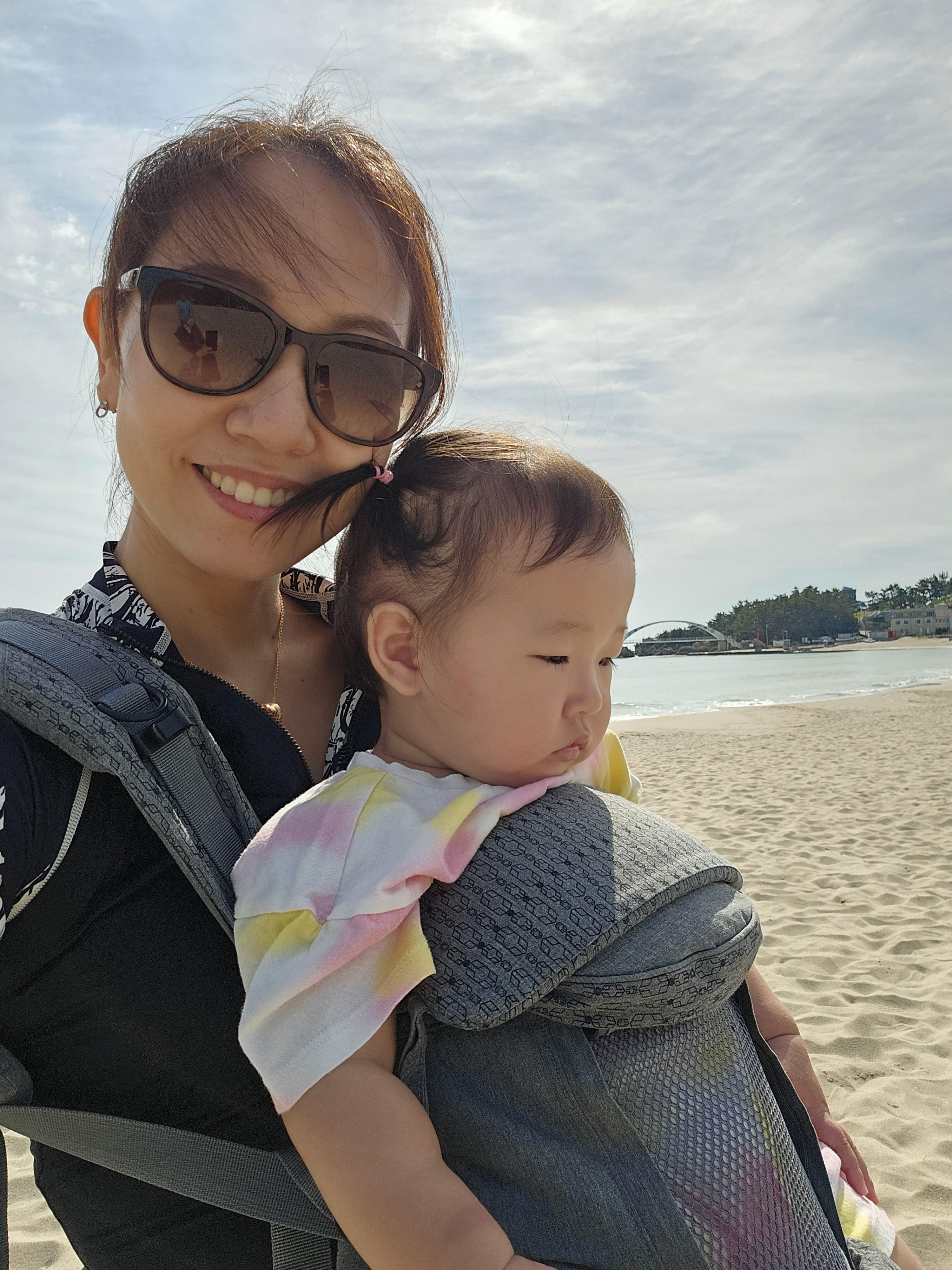 떠나기 전에 아침을 먹고 난 이후 용화해수욕장에서 모래놀이를 잠시 해보도록 가봅니다.