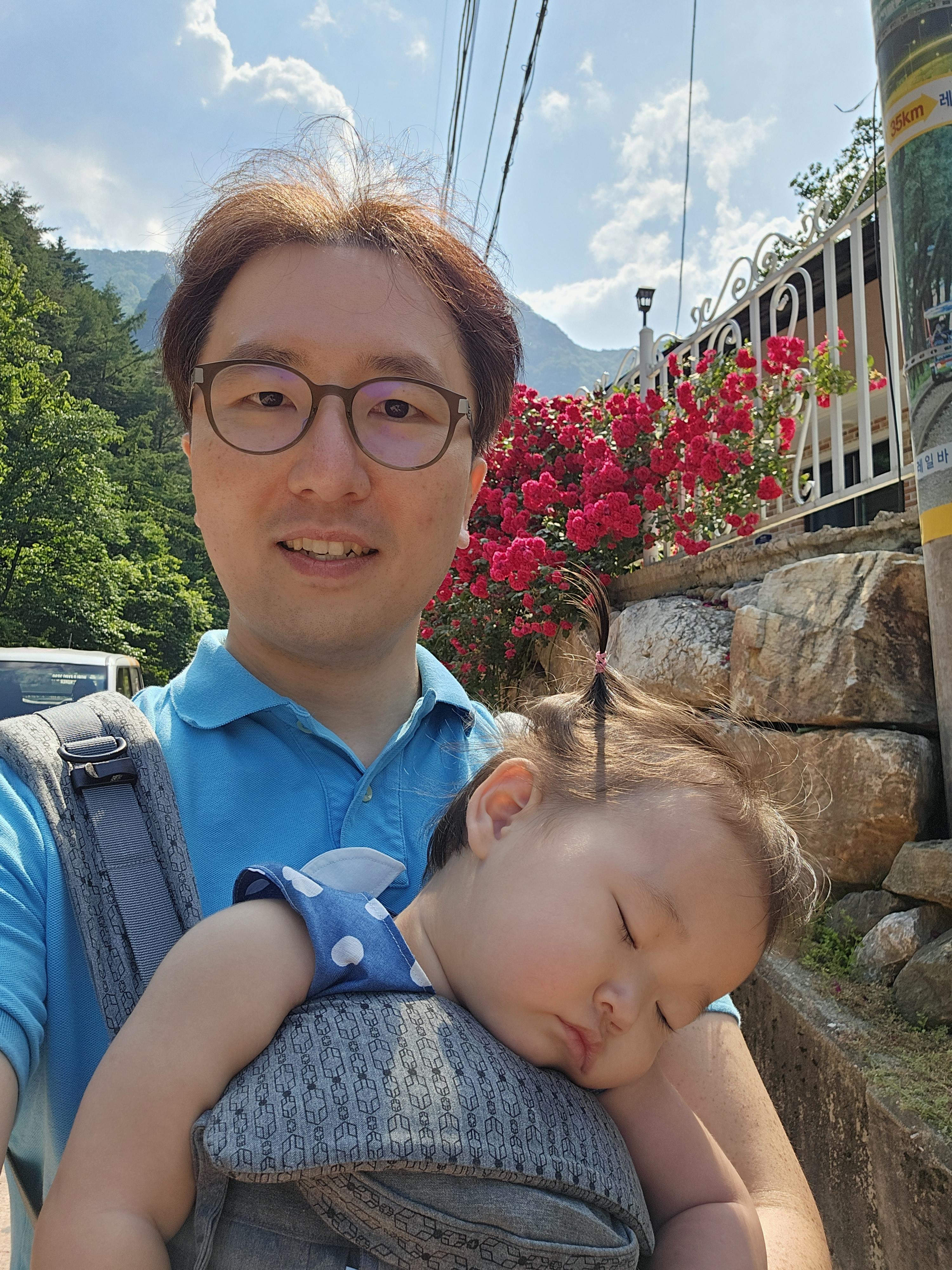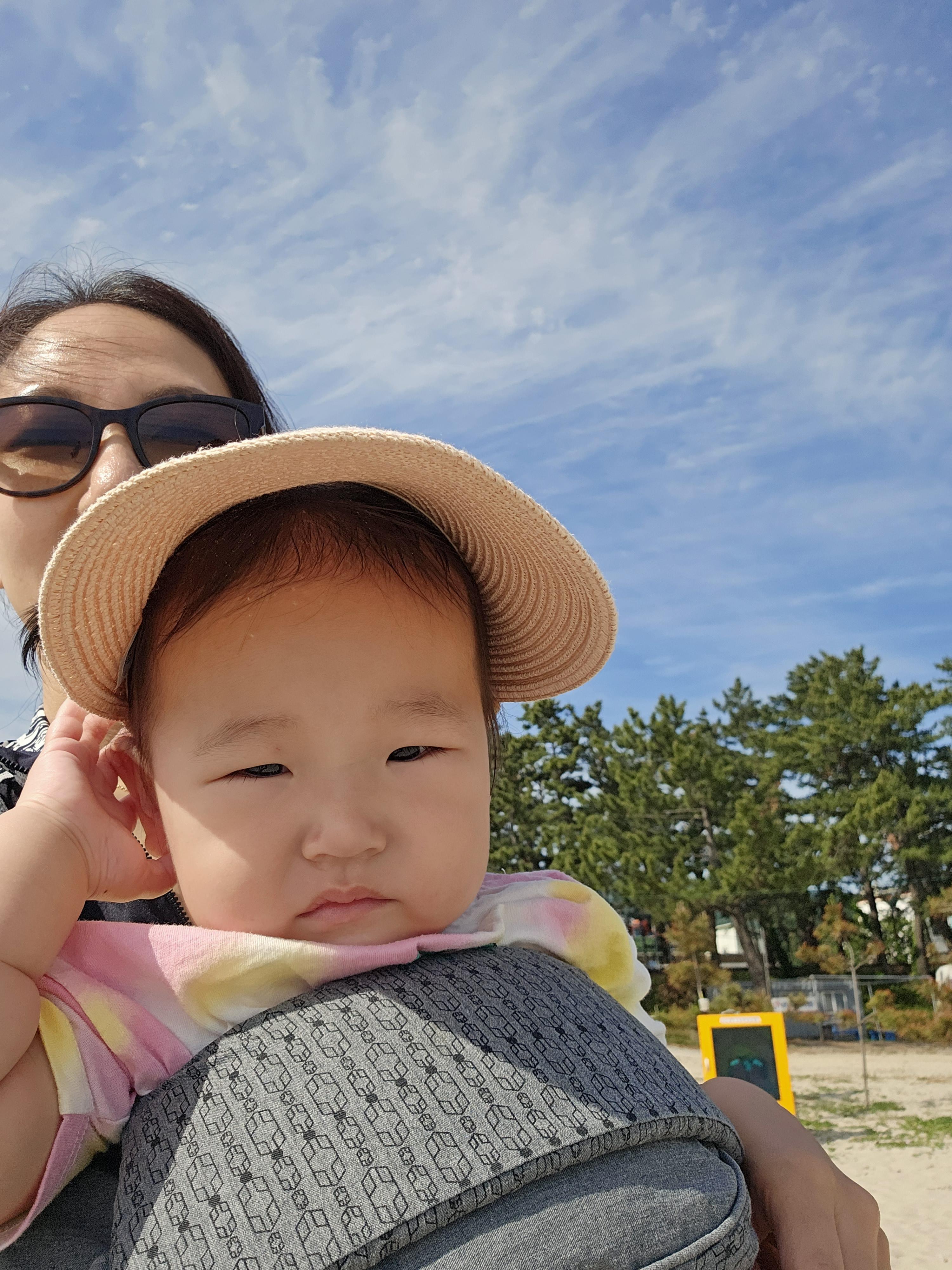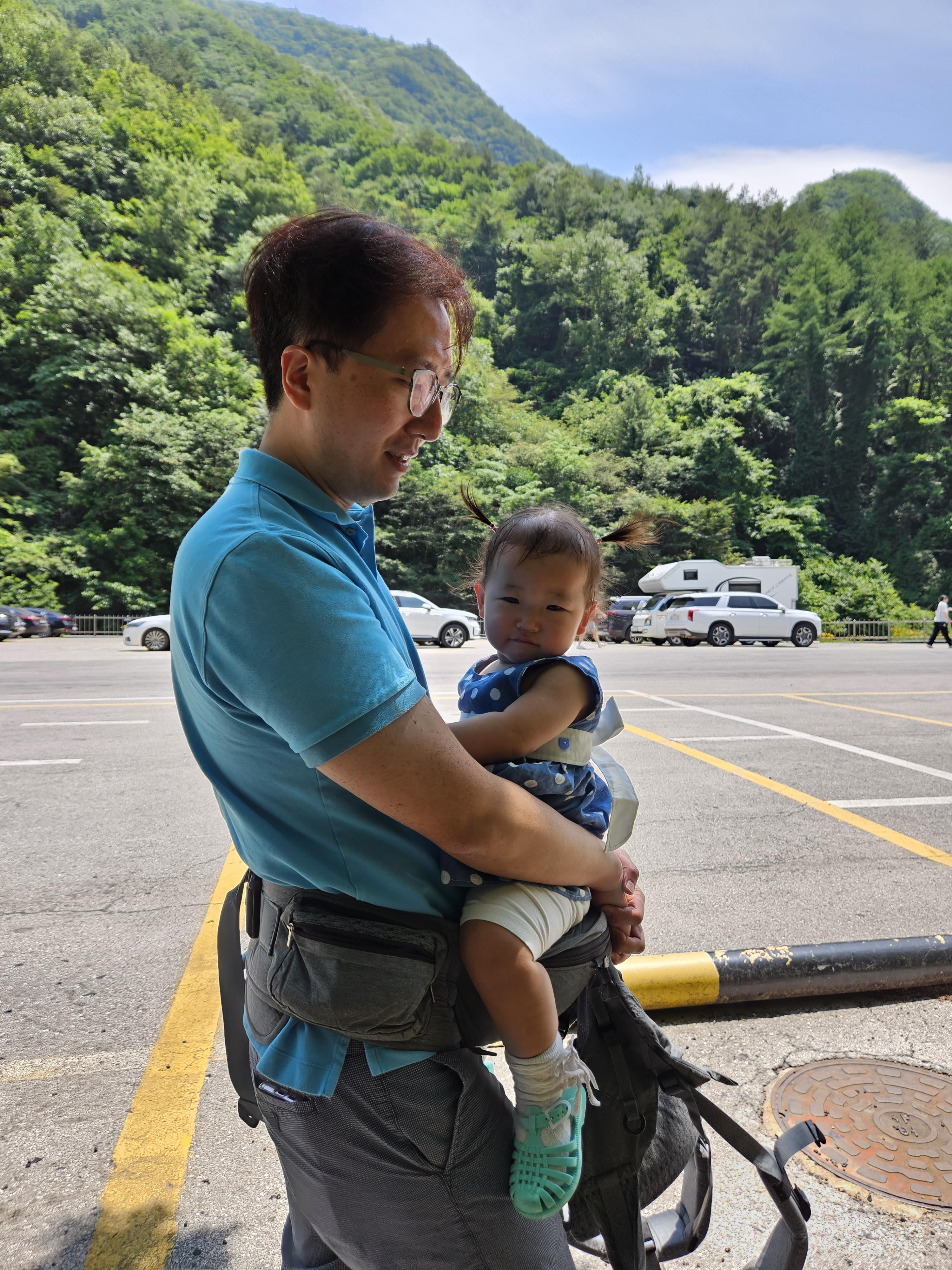 계속 안겨서 가는 도경이도 더워서 힘든가 봅니다.