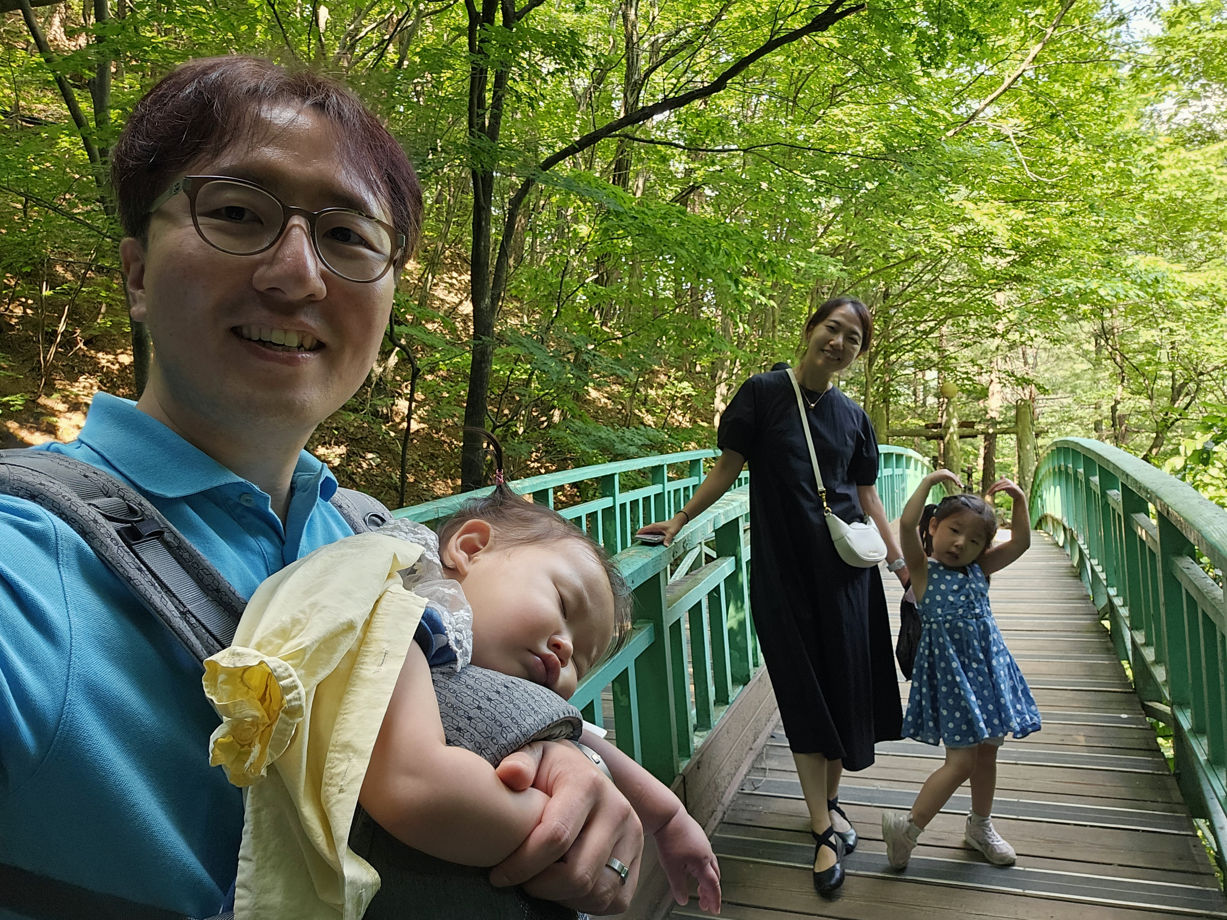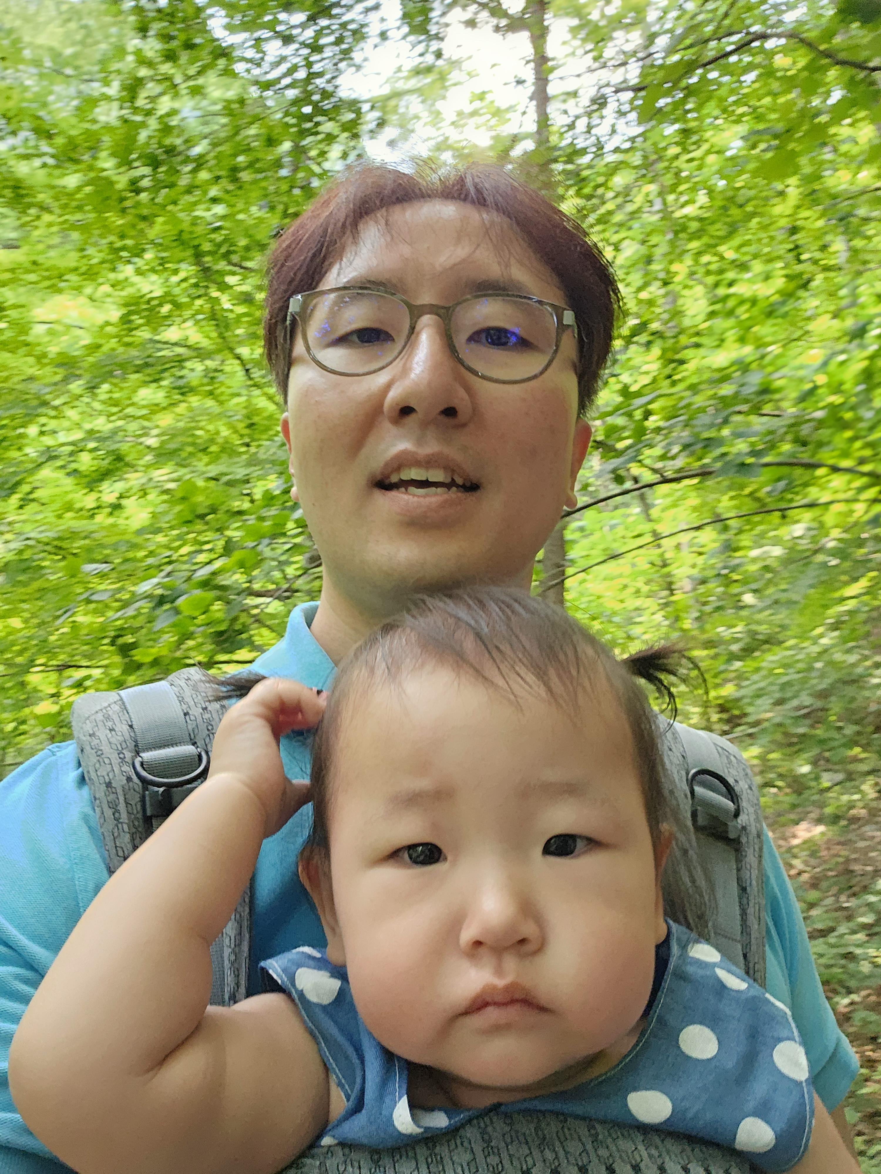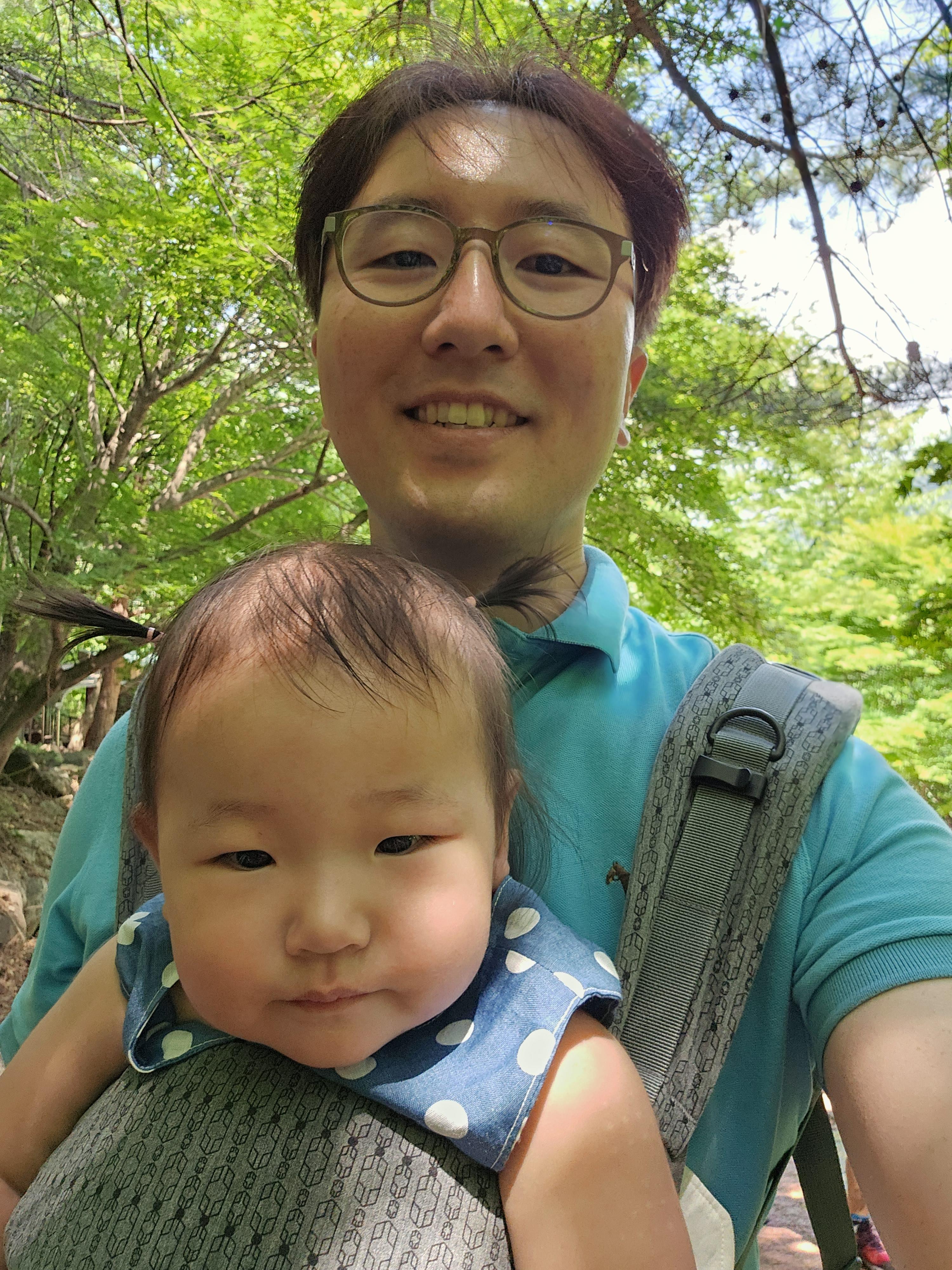 계속 안겨서 가는 도경이도 더워서 힘든가 봅니다.