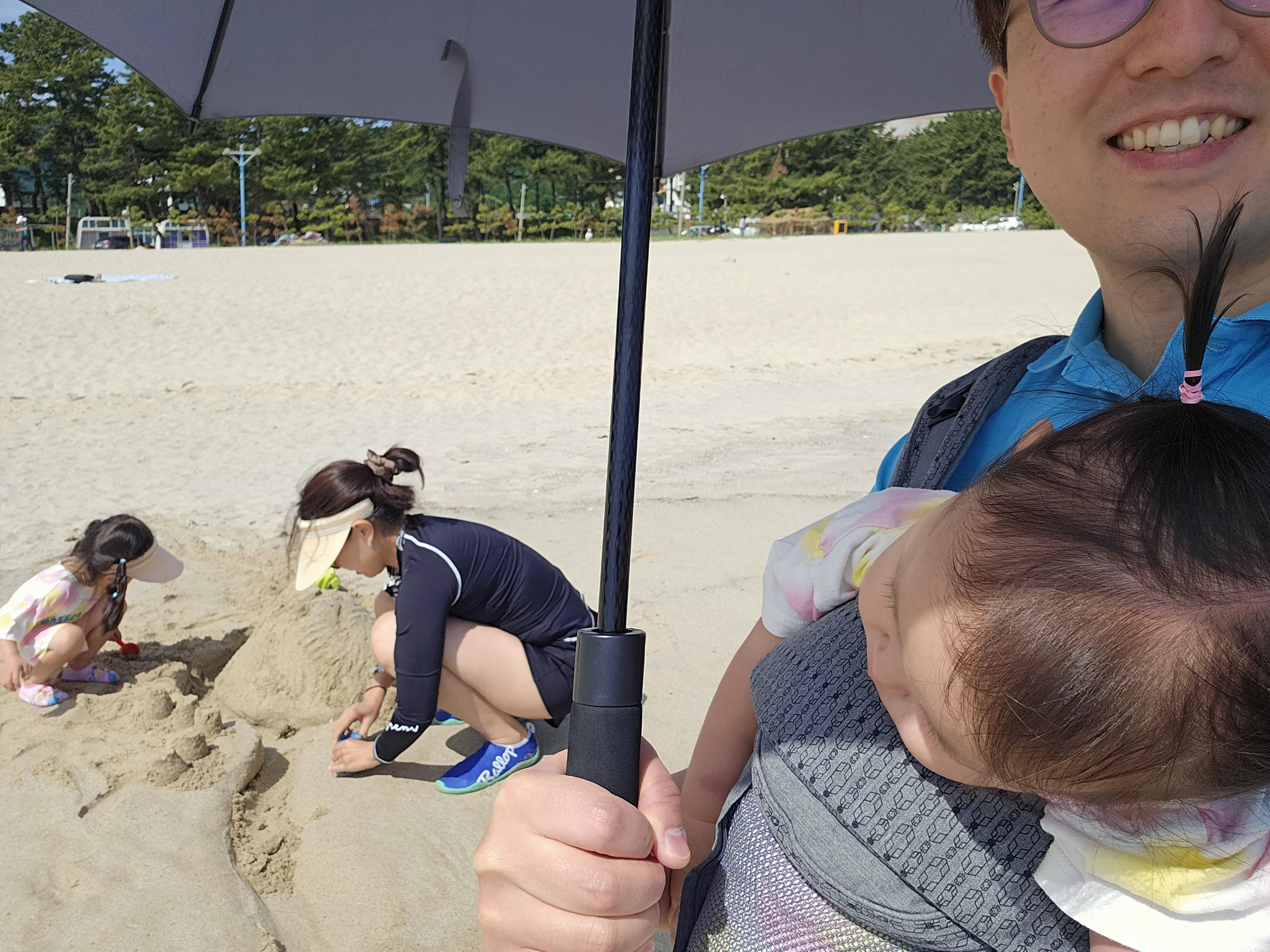 썬크림을 발랐지만, 우산을 펼쳐서 그늘을 만들어줘야죠...ㅎㅎ
