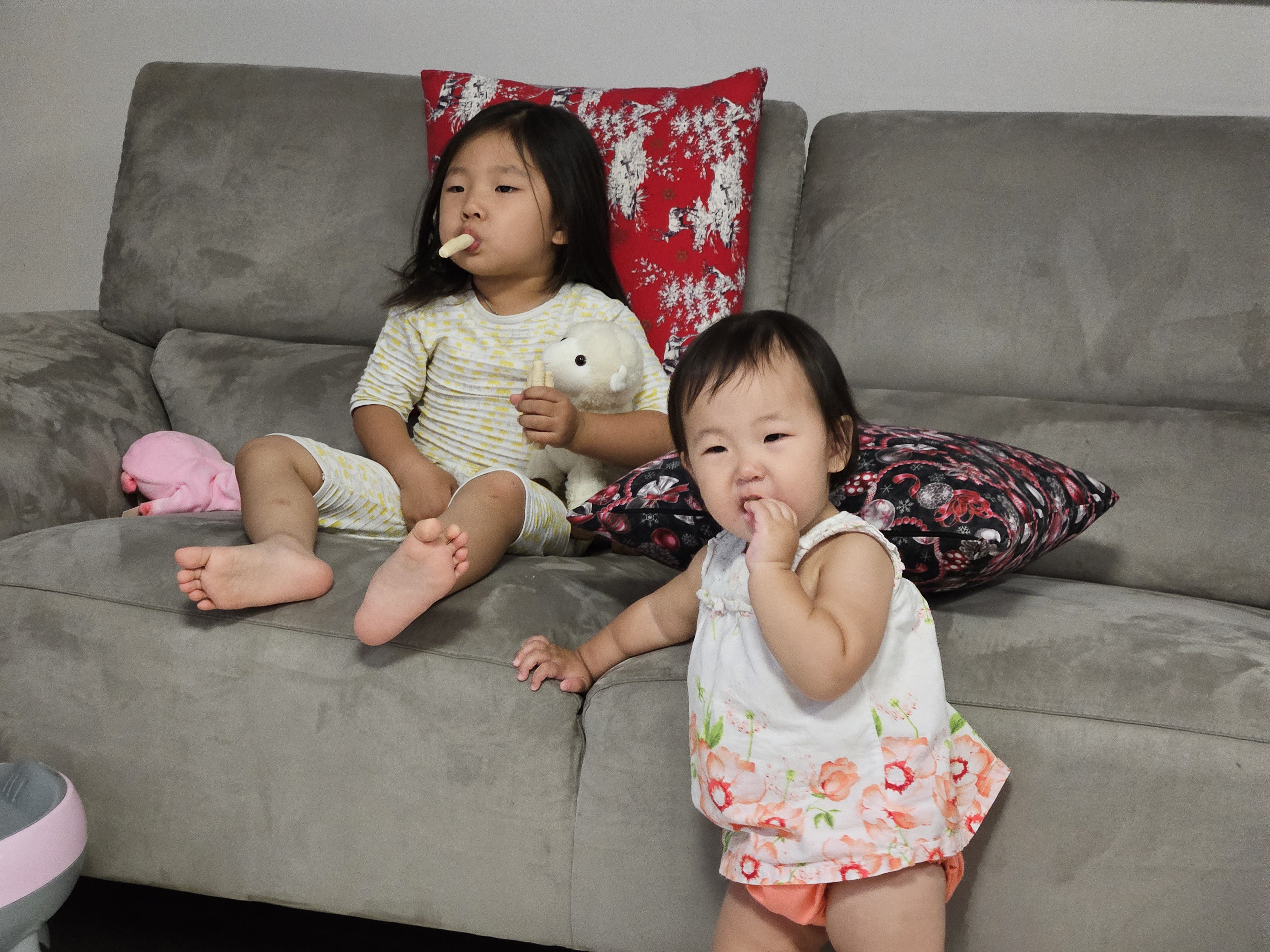 칭얼거리는 도경이는 과자를 하나 주니 기분이 좋아보입니다.