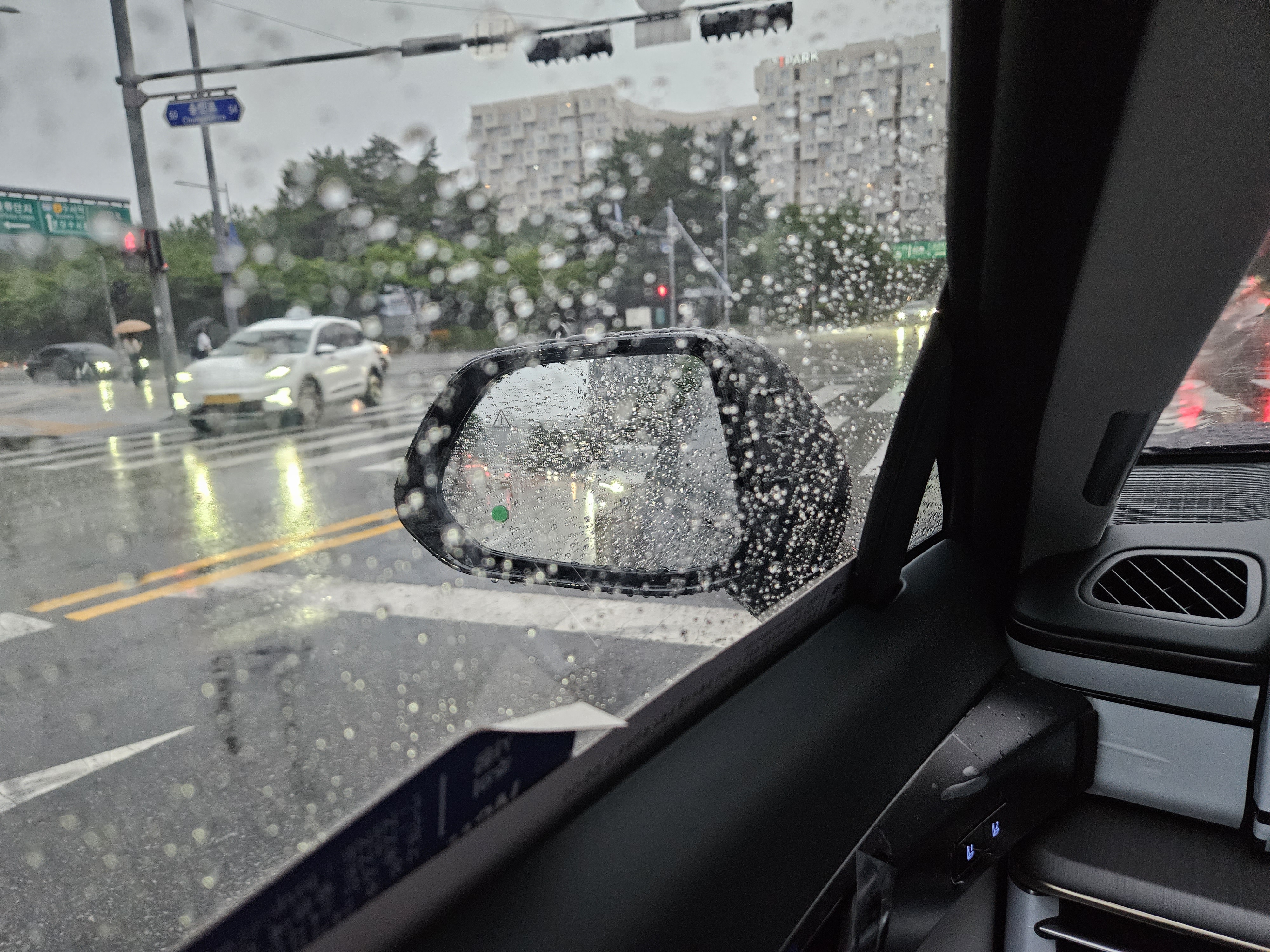 차가 크기도 하고, 디지털 사이드 미러에 적응한지라 사이드 미러가 빗물 때문에 잘 안보여........