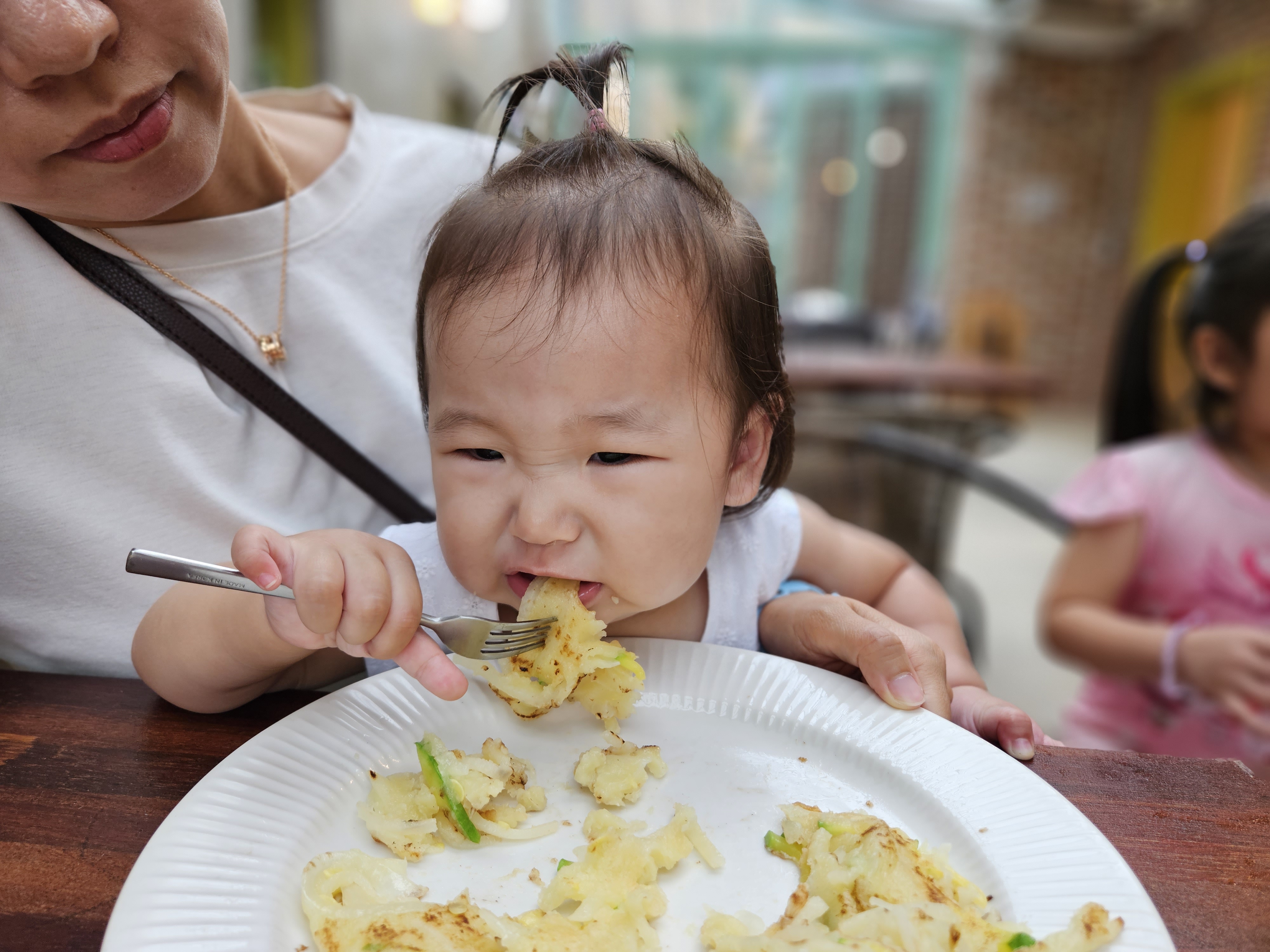 애들 노는 것을 이렇게 식사 중에도 볼 수 있어 좋다.