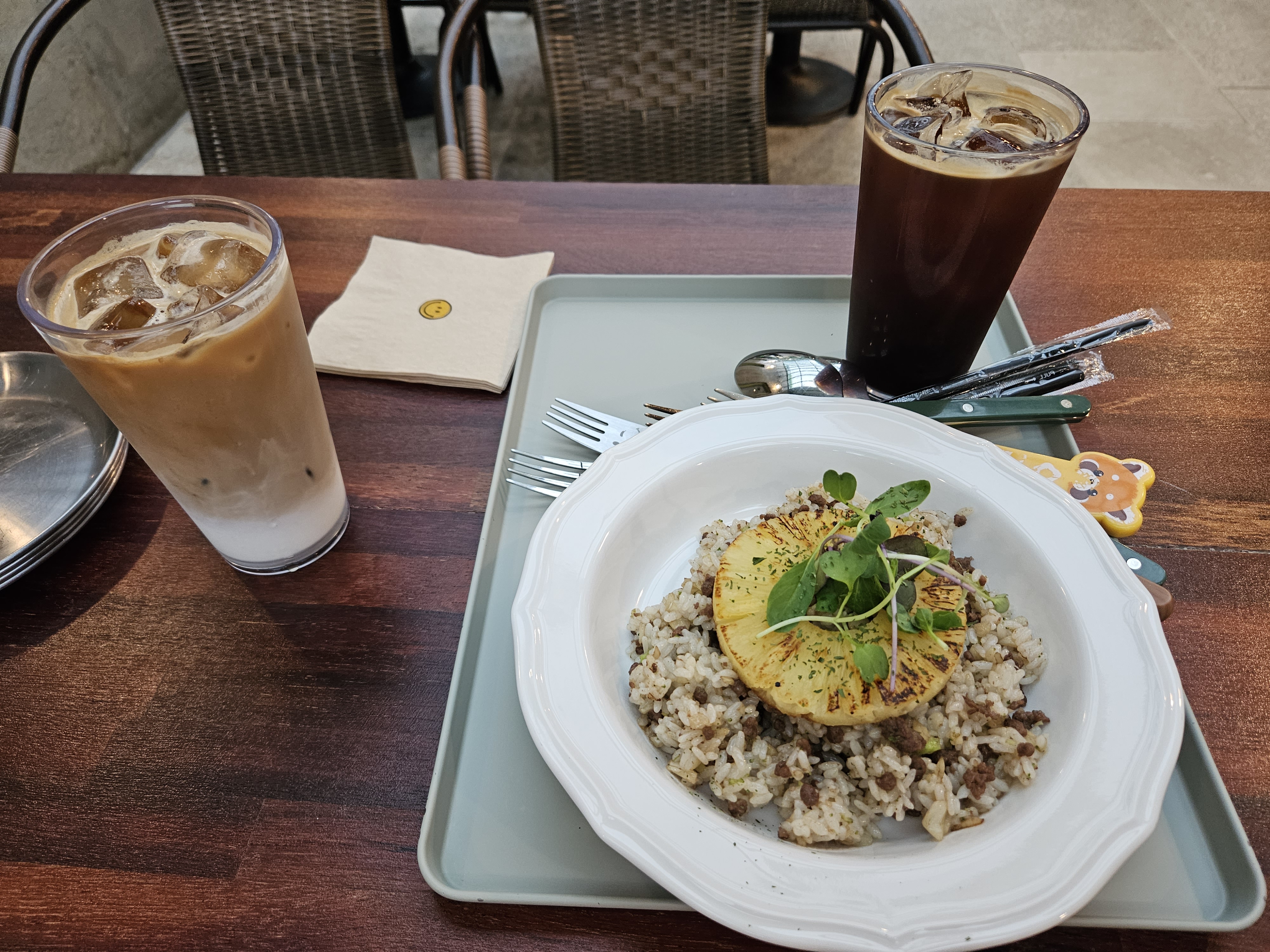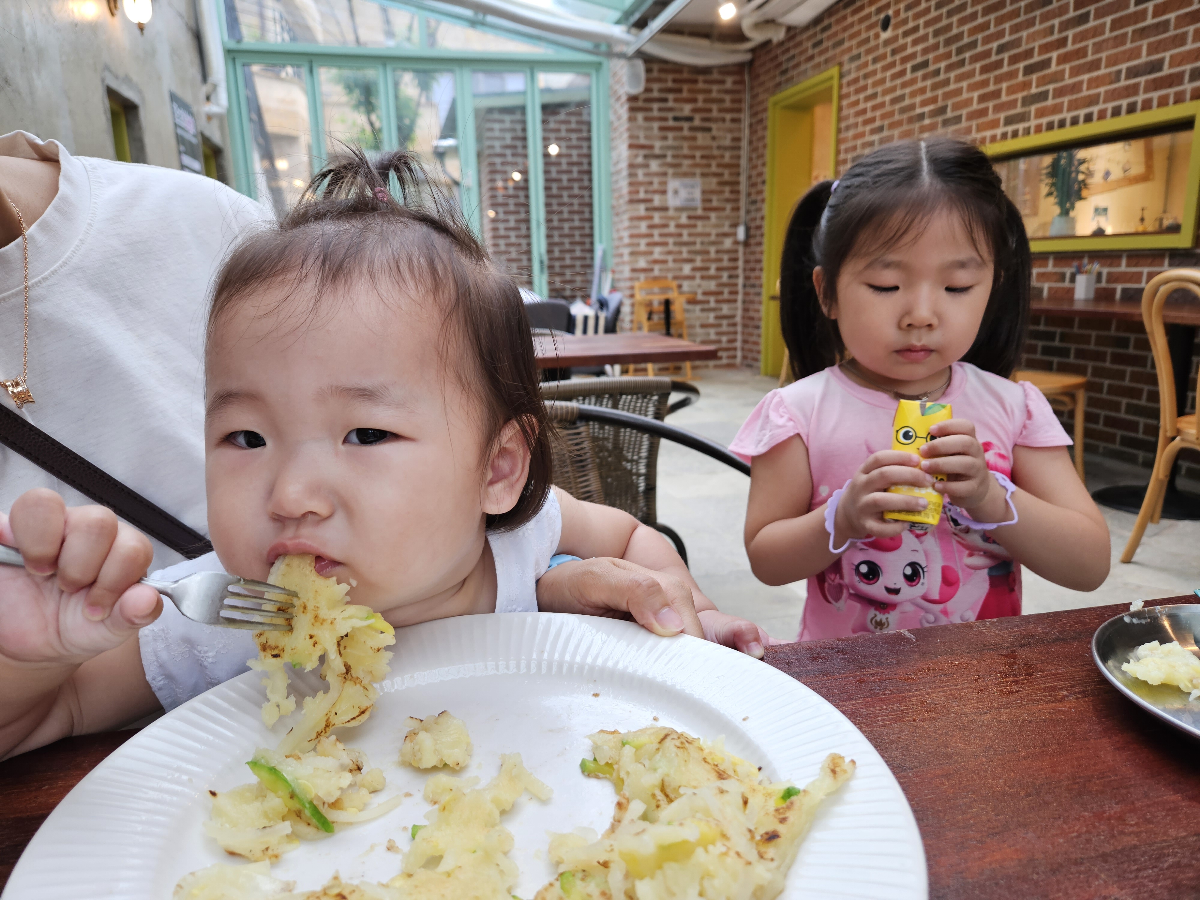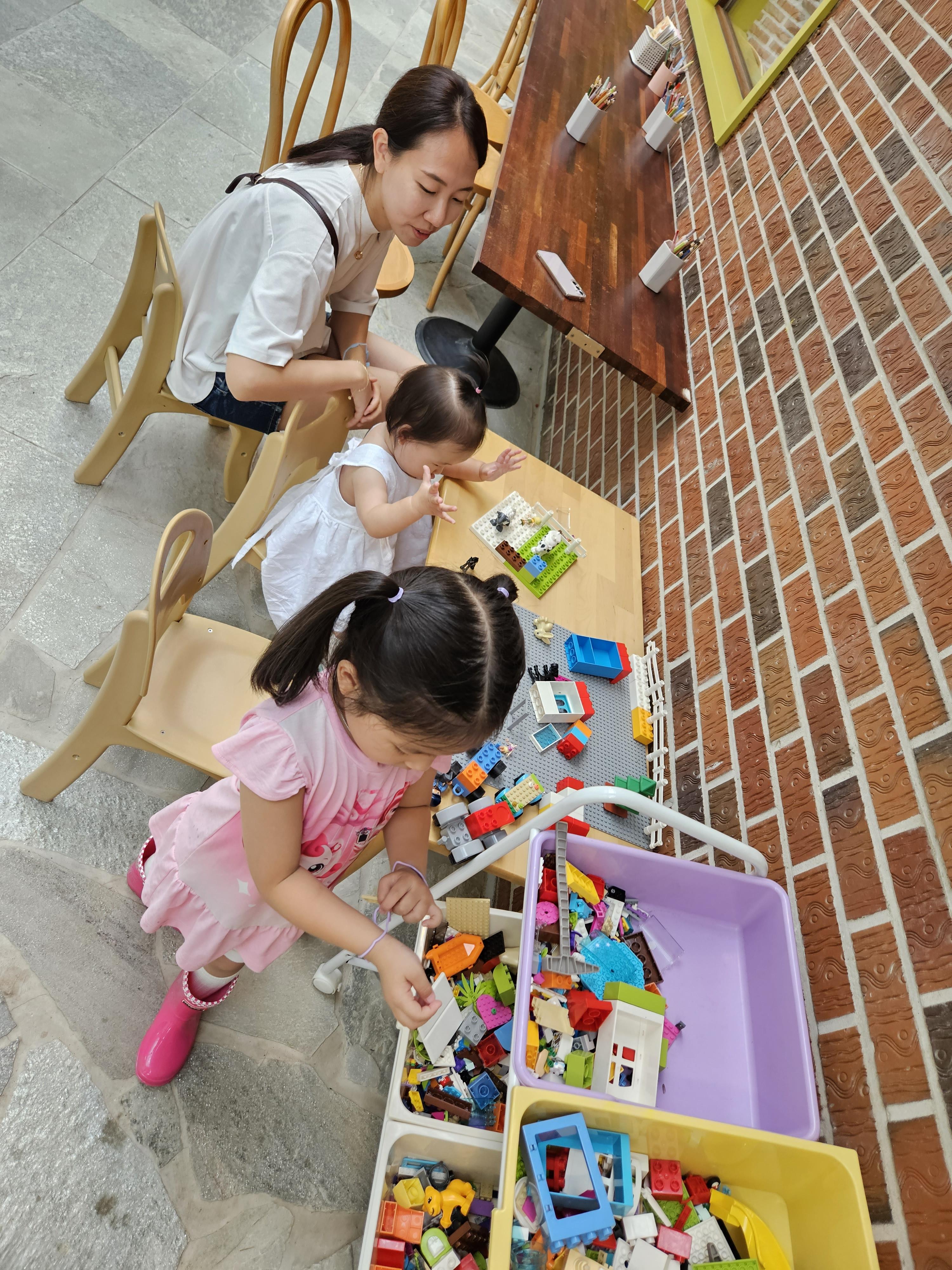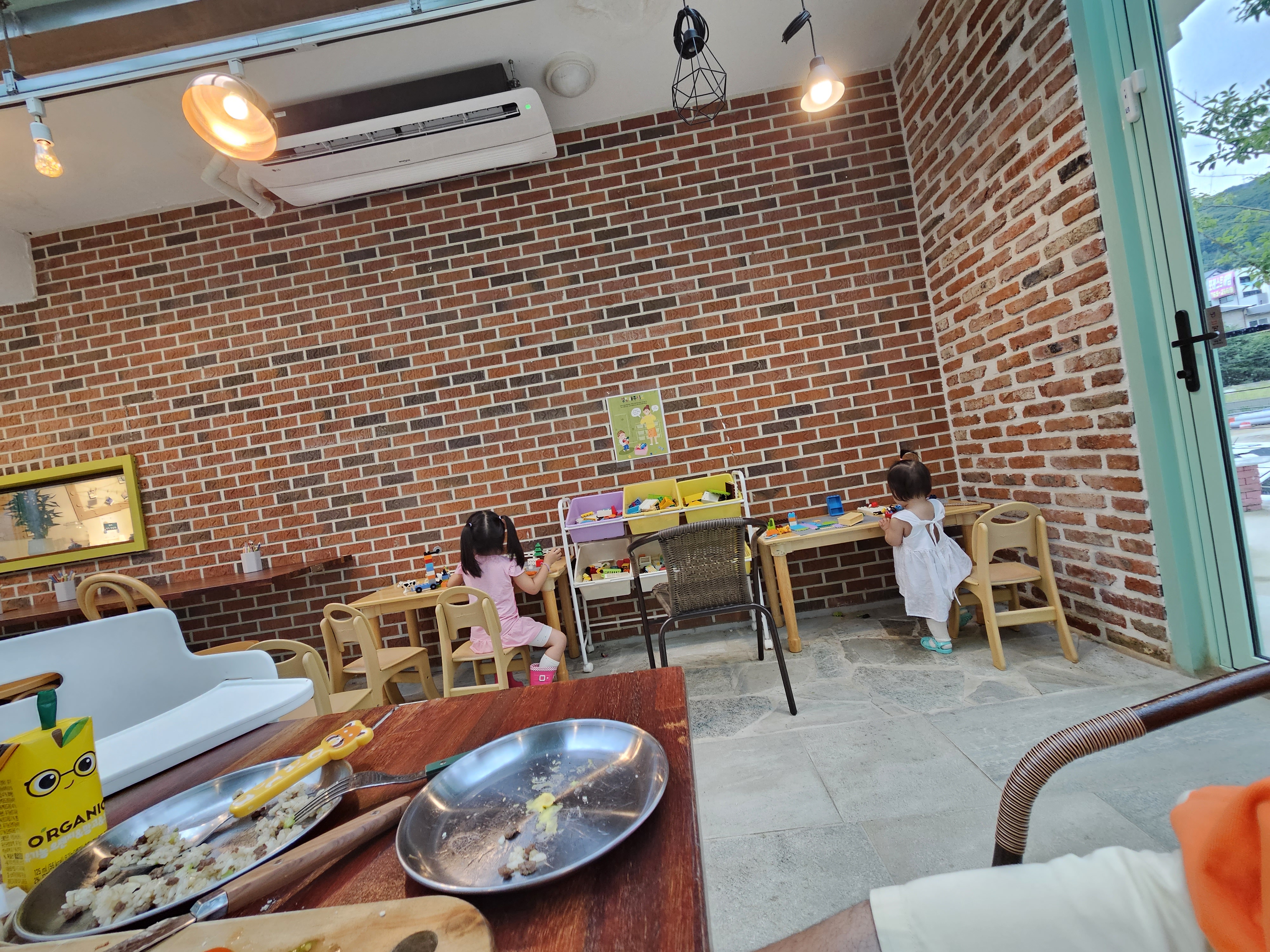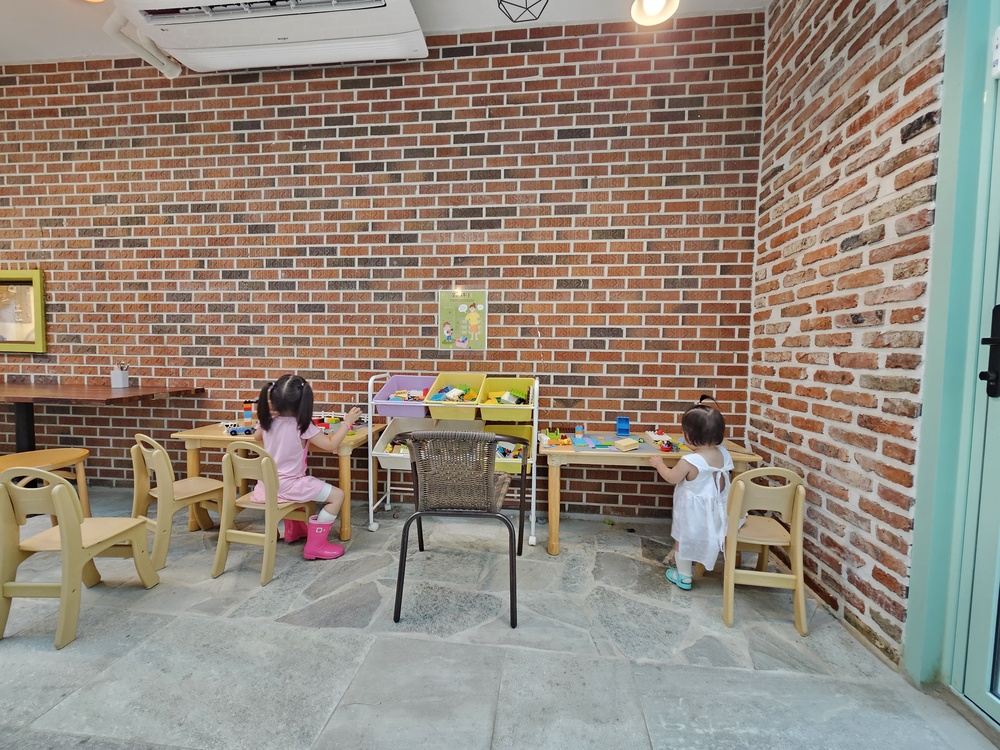 이 카페가 좋은 게, 식사 자리 바로 옆에 레고를 가지고 놀수 있는 곳이 있어서 애들도 먹다가 놀고, 어른들 시야에서 아이들이 벗어나지 않아서 좋았다.