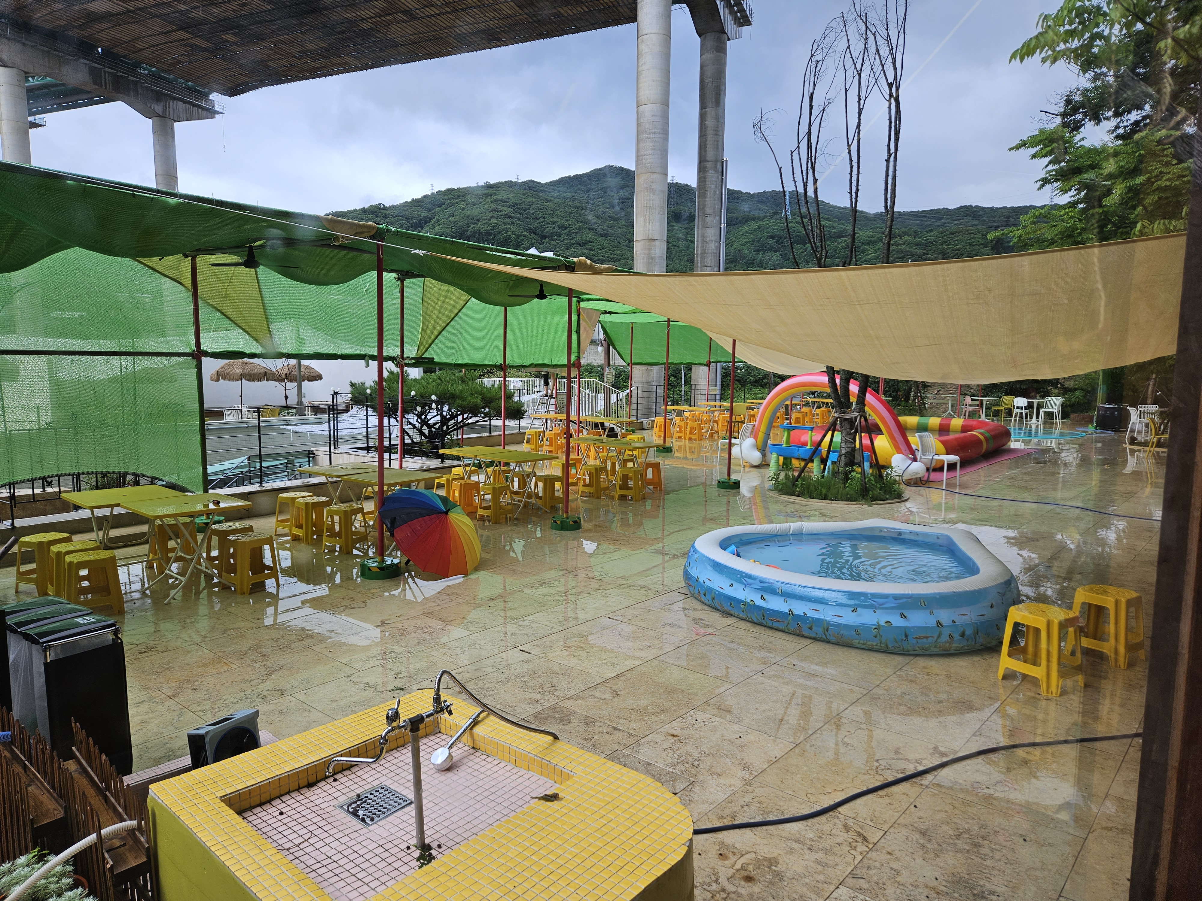 날씨만 좋았으면 저 의자에 어른들이 앉아있고, 애들이 뛰어노는 곳...ㅎㅎ