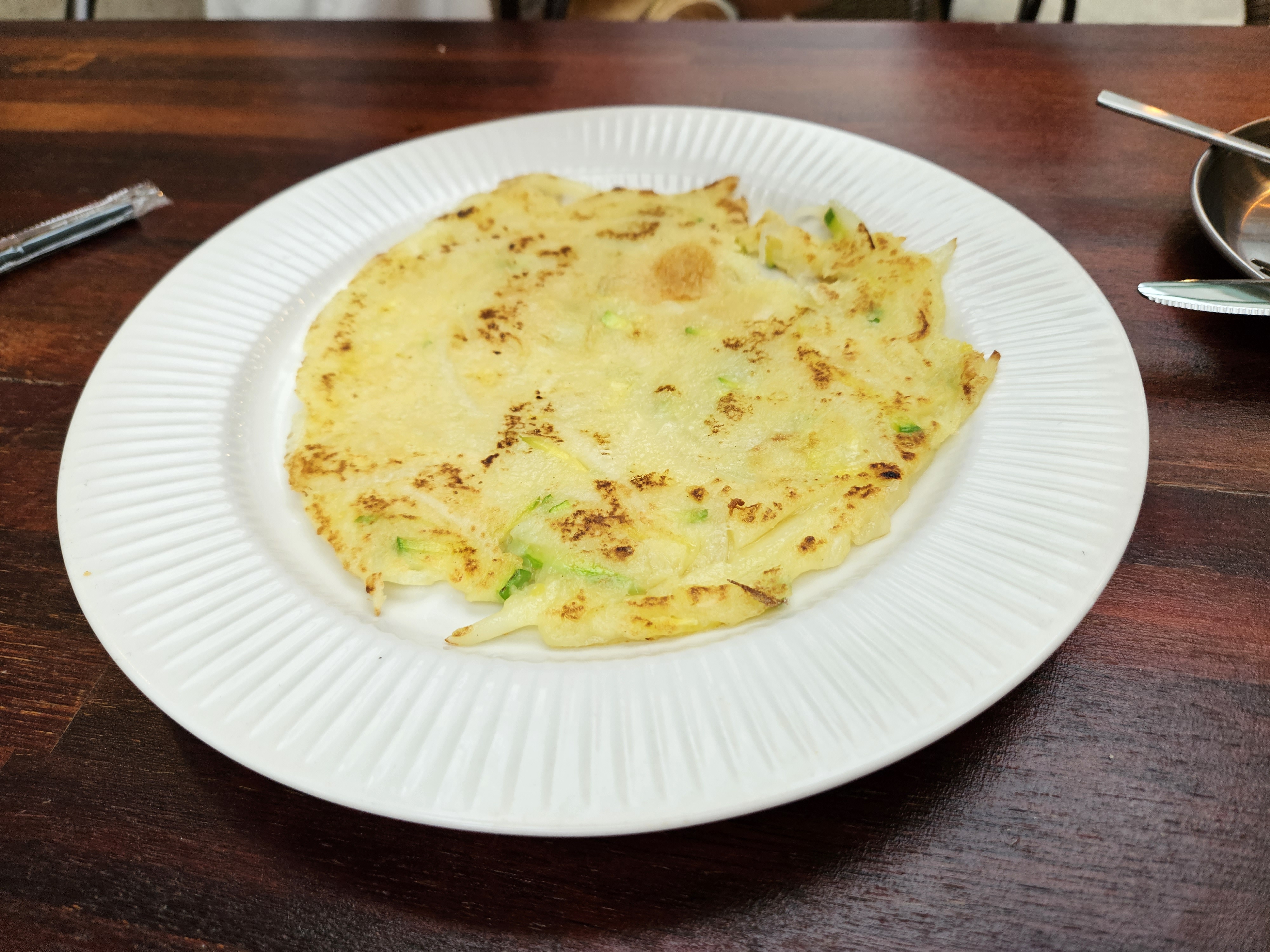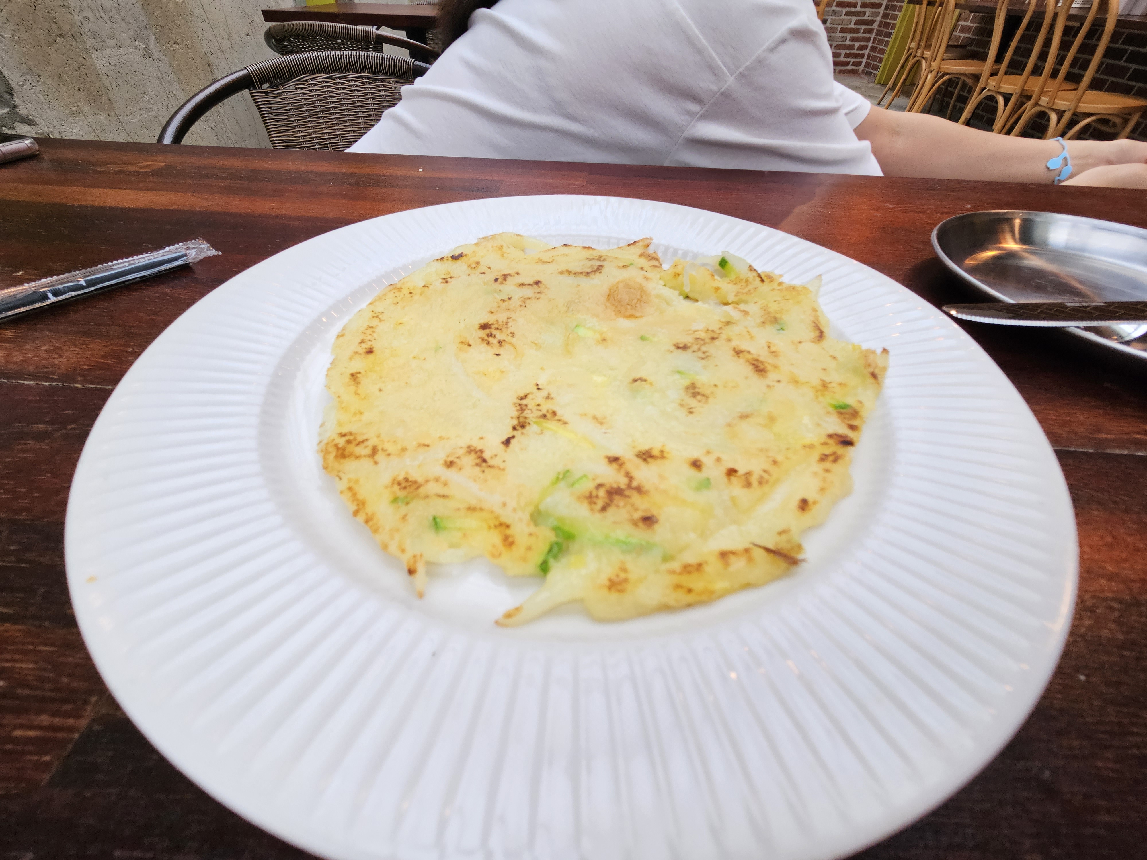 식사 다 하고 놀고 있는데, 비 온다고 감자전을 구워서 서비스로 주시는..