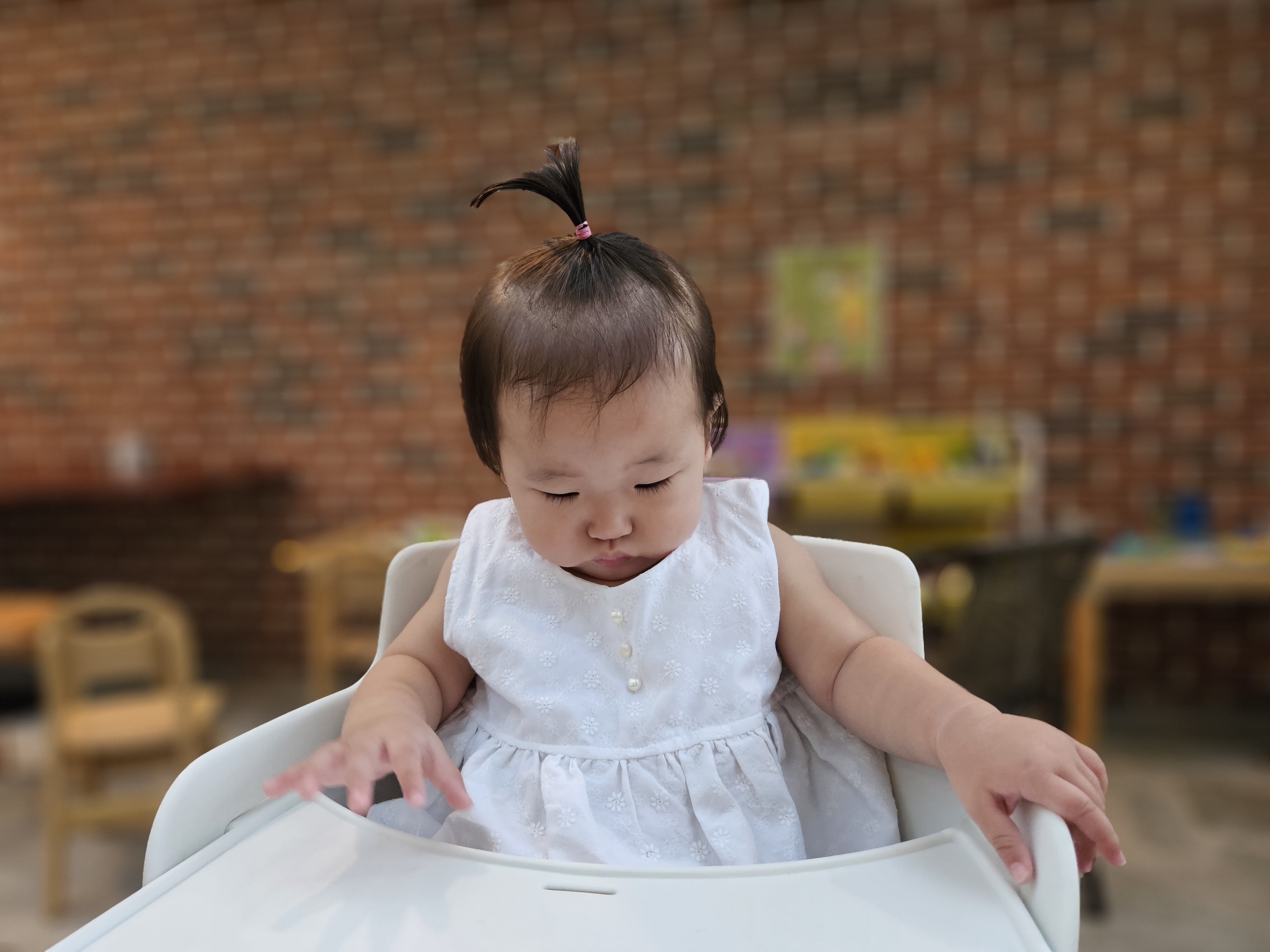 하이체어에 앉혀 놓은 도경이..