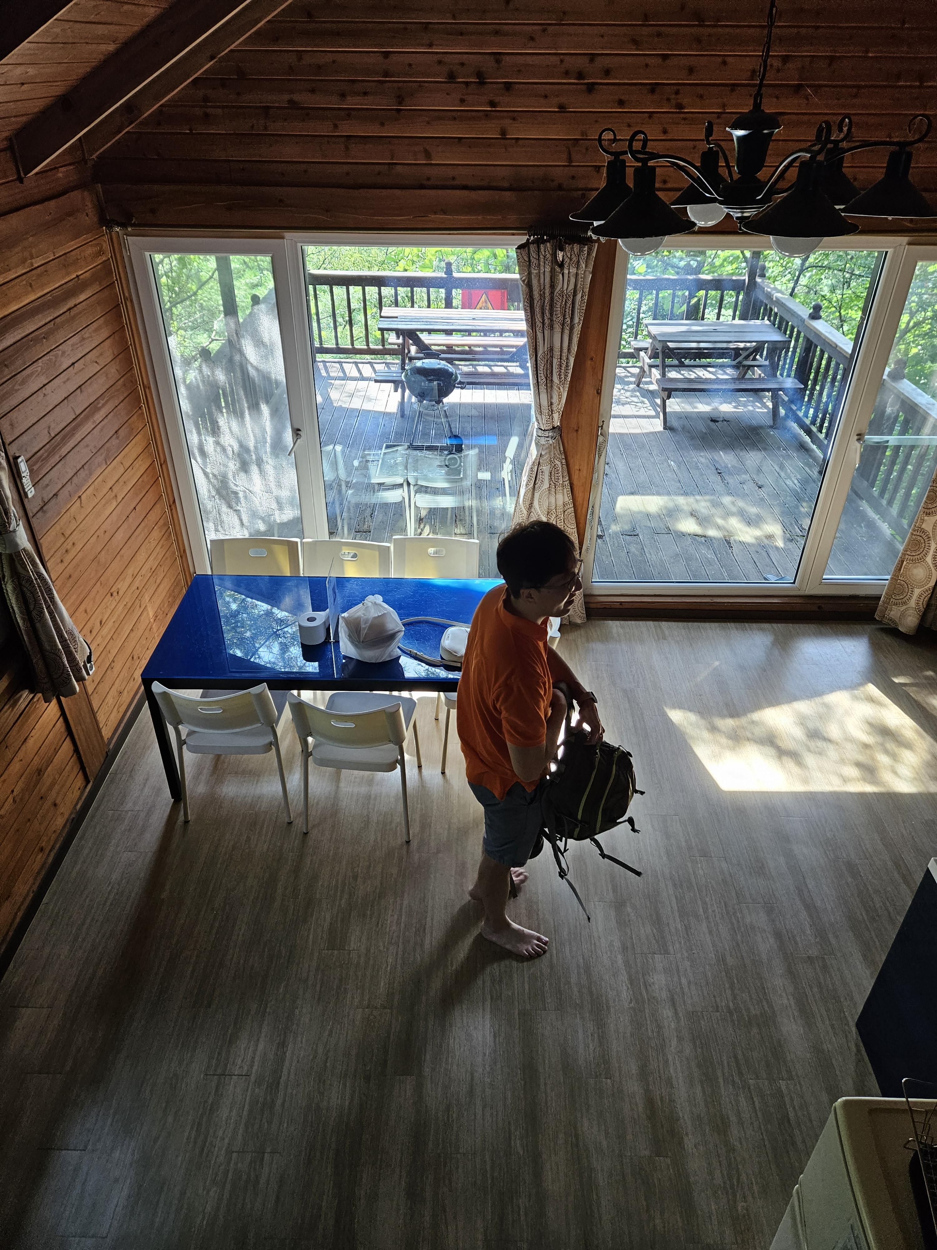 2층 다락방이 있는 곳이고 시설은 큰편이고, 가장 좋은 것은 야외 데크가 있는데 천장까지 있어 비올 때도 숯불 바베큐 가능!