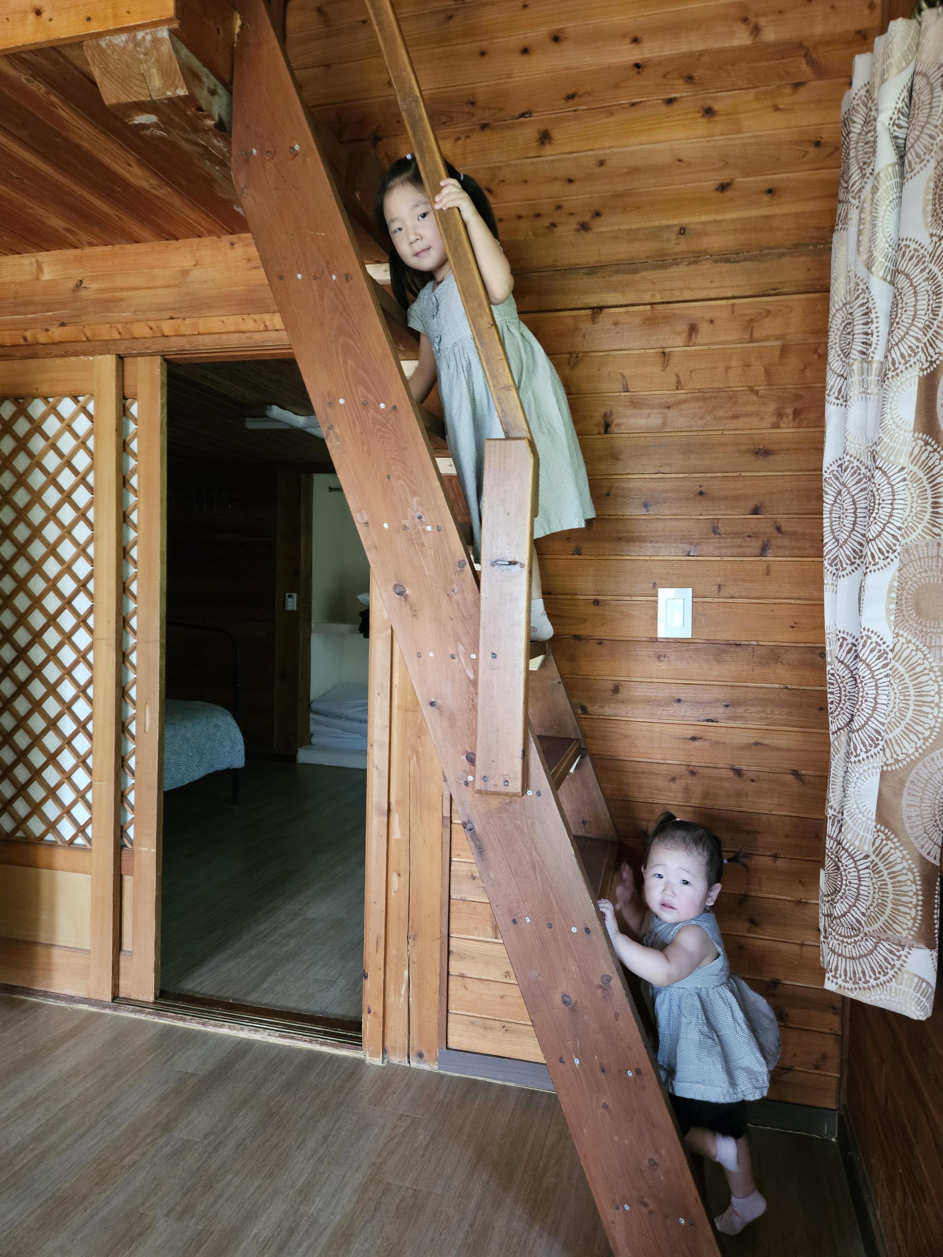 올라가서 신나하는 도도 자매