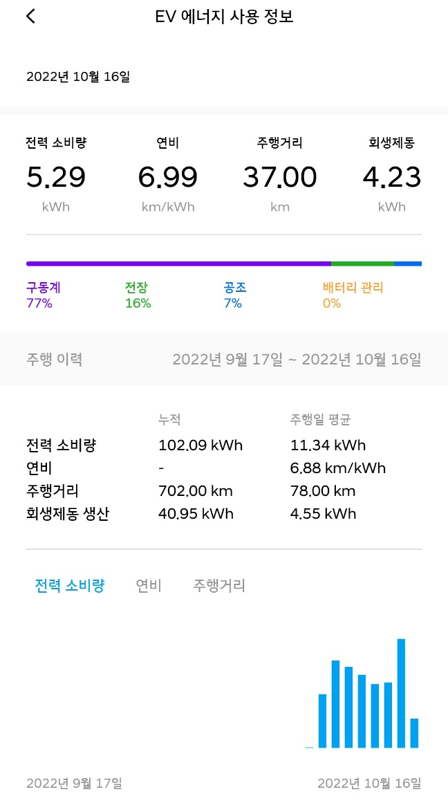 근데 오늘부터 기온이 떨어져..전비가 점점떨어지는 것 같은 것은 기분 탓이려나..